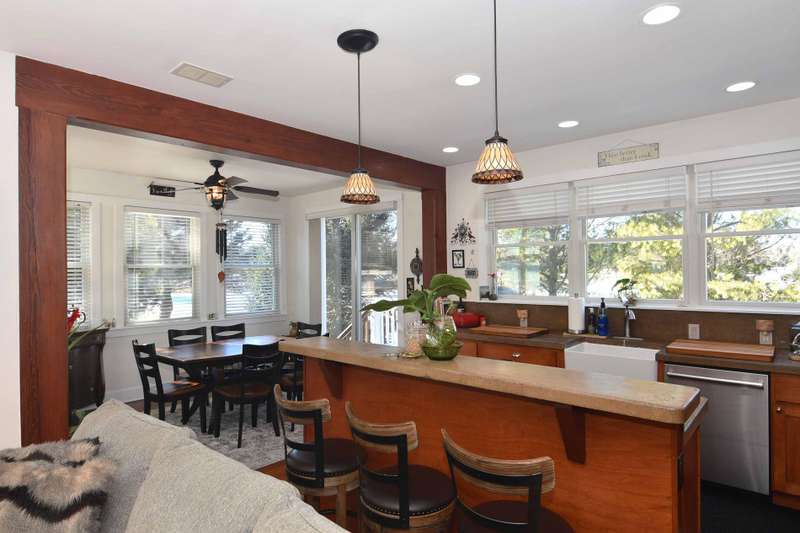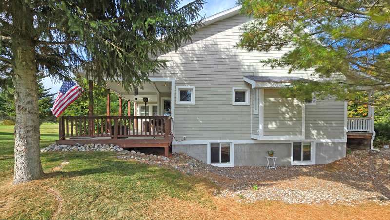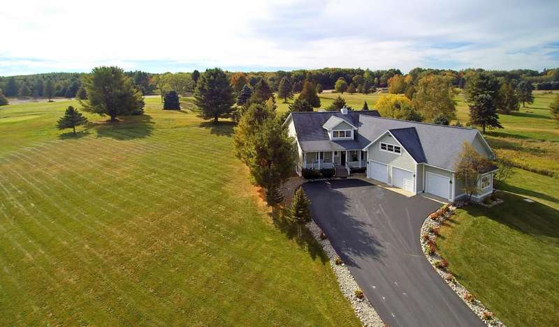 This unique Craftsman-style home offers 1 and a half stories and is nestled on around 2 acres in Northeastern Michigan. The structure features a walkout daylight basement and first floor made with insulated poured concrete walls. Enjoy the warmth of hot water radiant heat flooring and an energy-efficient roof with engineered panels and 10 inches of high R factor foam. Equipped with Anderson windows and doors, this home enhances efficiency throughout. As you step through the 7-foot custom entry door, you'll notice impressive ceilings, stylish stamped concrete flooring, solid wood interior doors, and ample recessed lighting with dimmers. The kitchen showcases stainless steel Samsung appliances, a walk-in pantry, and expansive windows for light-filled culinary experiences. The primary suite offers convenient outdoor porch access, an expansive walk-in closet, and a lavish shower with multiple heads. The walkout basement is highly efficient and partially finished, awaiting your personal touches. The three-car garage includes hot and cold water hookups and additional storage. With Lake Huron just a short walk away and stunning views of the golf course, this home is truly special, showcasing exceptional craftsmanship and luxurious living. A complete sale includes four parcel numbers and offers an opportunity to experience the beauty in every direction.