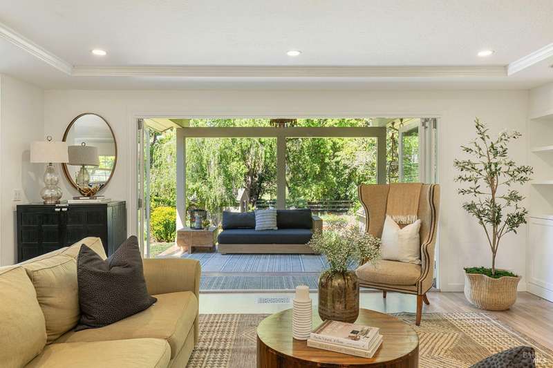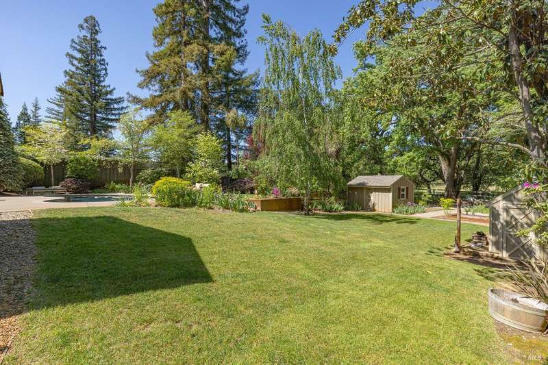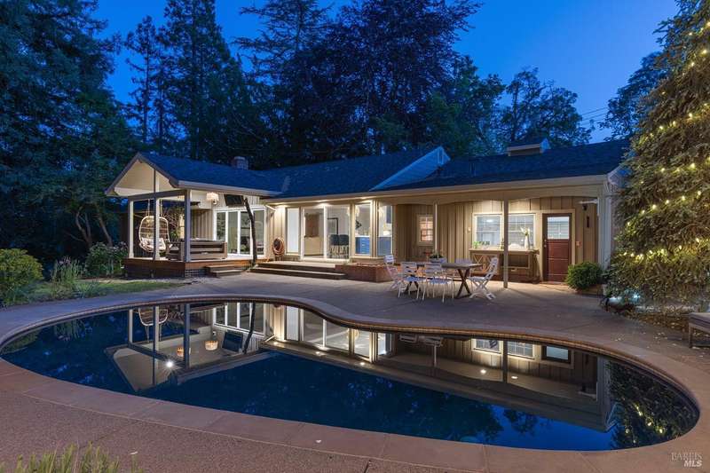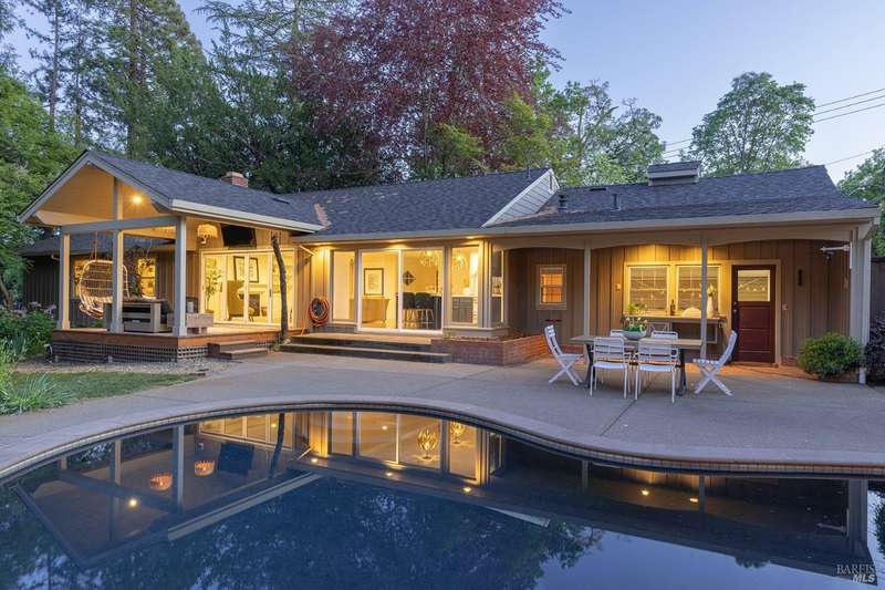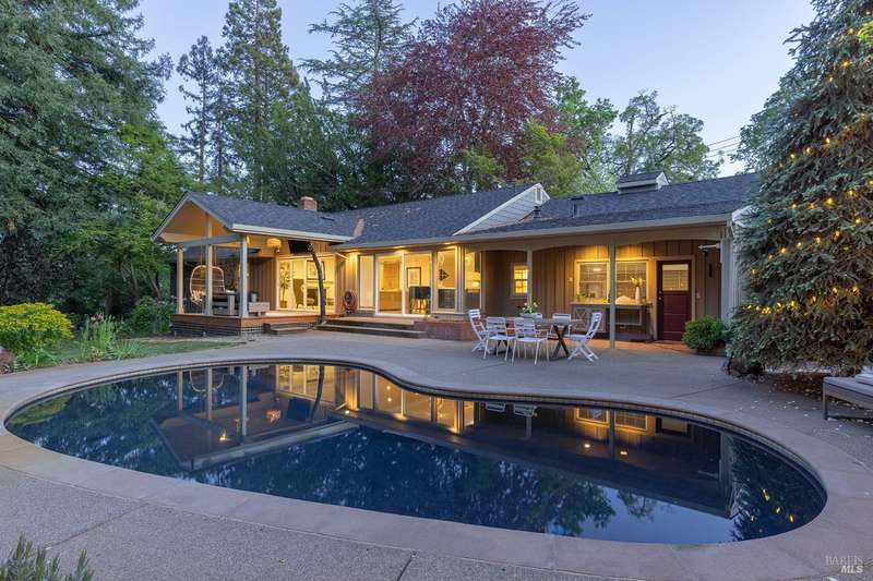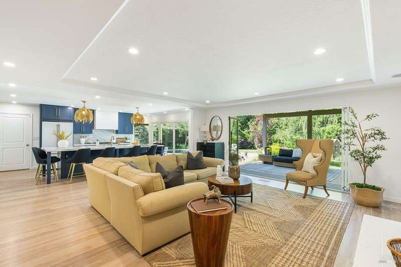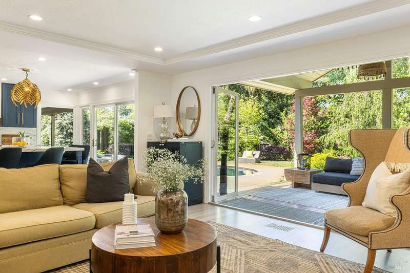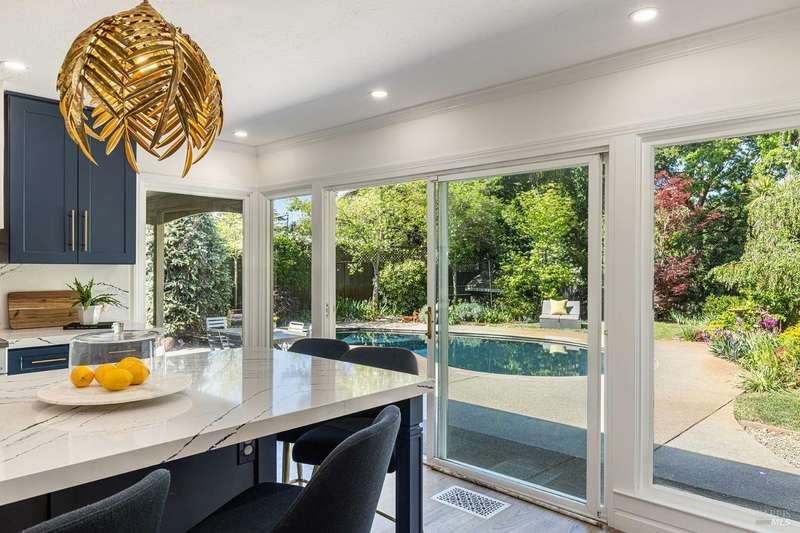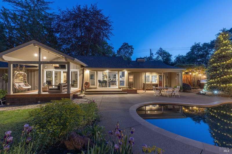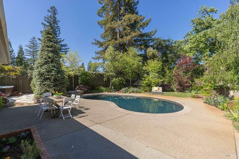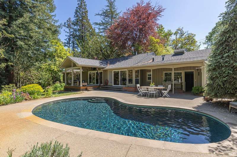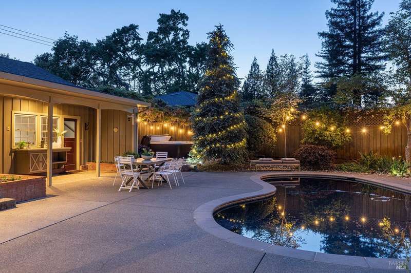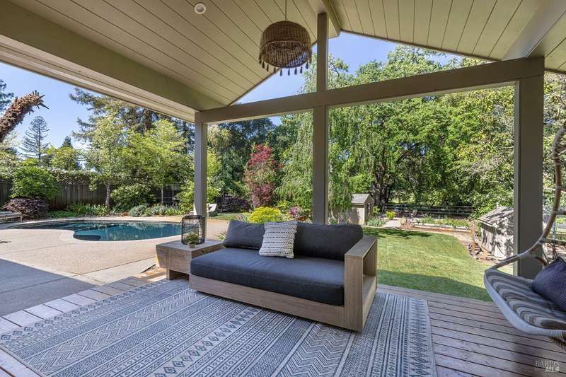 This coveted East Napa retreat boasts a beautifully finished brand new kitchen in the open, airy great room. The space features cantina doors that lead out to a grand outdoor pavilion, complete with a sparkling swimming pool, relaxing hot tub, sport court for active play, cozy fire pit for evening gatherings, and garden beds for those with a green thumb. The property is surrounded by beautiful lawn and trees, creating a tranquil oasis just minutes away from downtown Napa, Silverado Country Club, and Napa Valley Country Club. Whether you're looking for a peaceful escape or a place to entertain friends and family, this retreat has it all.