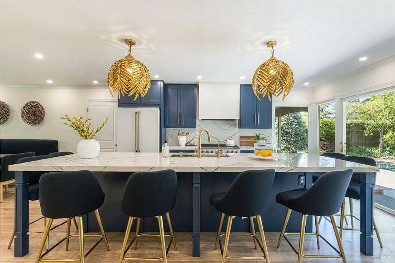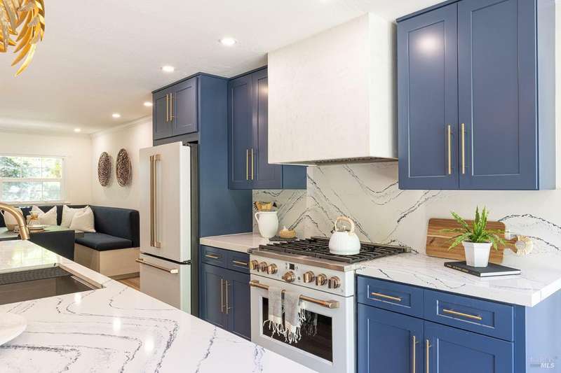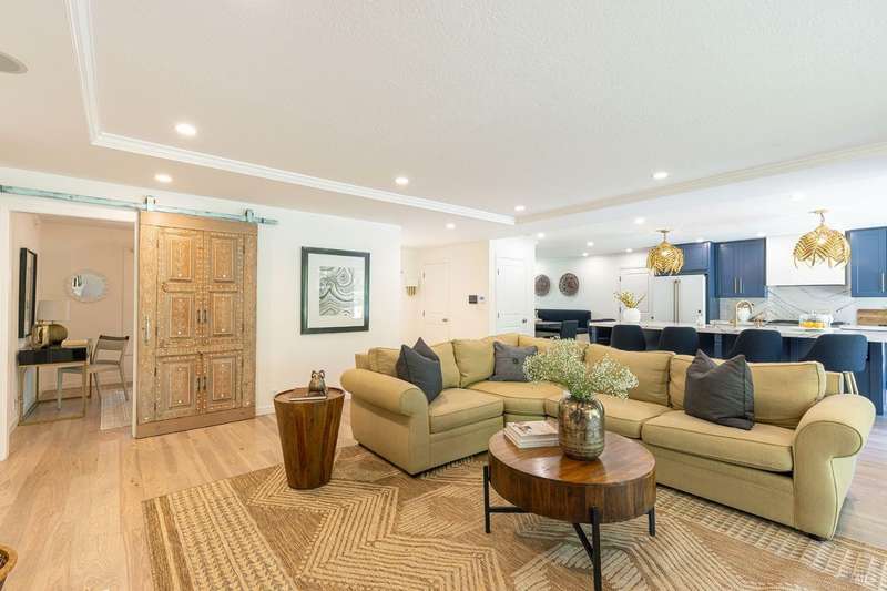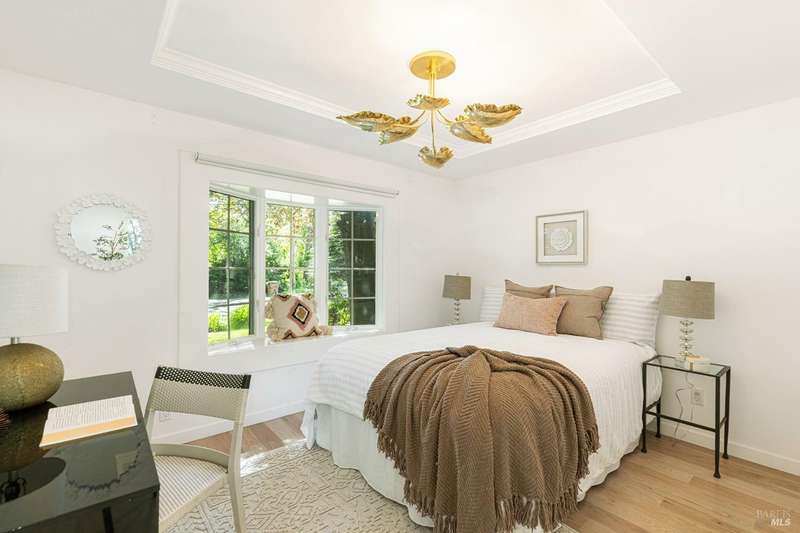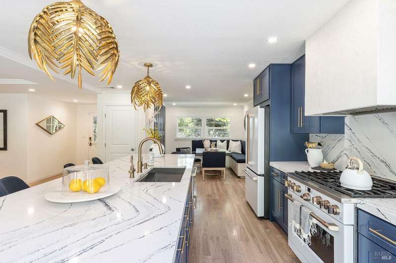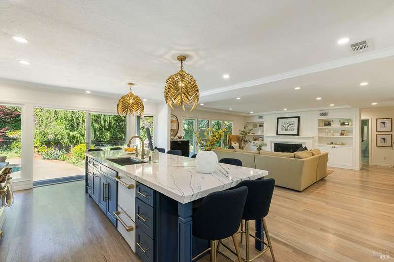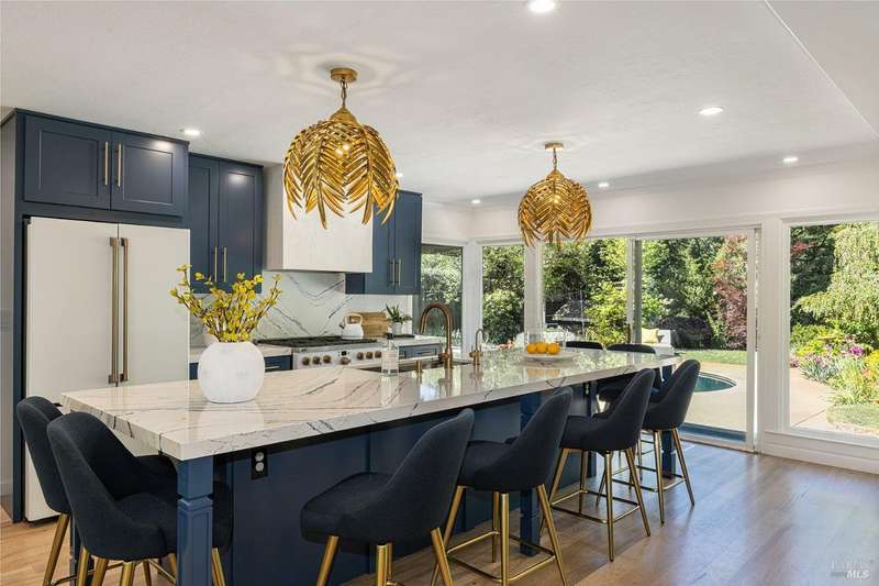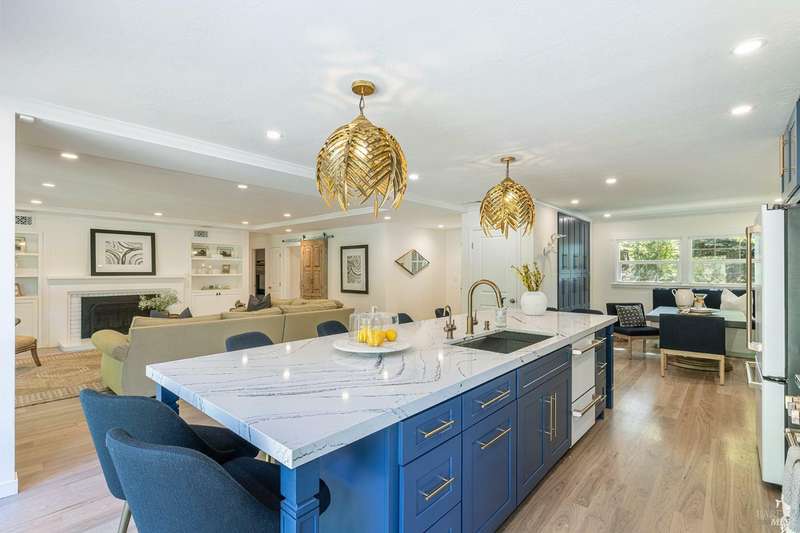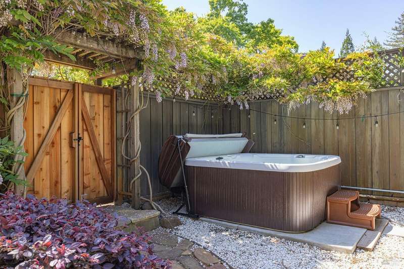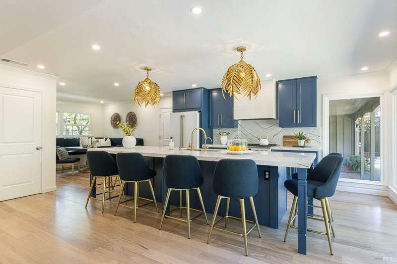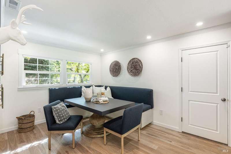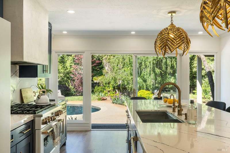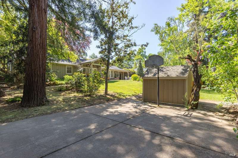 This coveted East Napa retreat boasts a beautifully finished brand new kitchen in the open, airy great room. The space features cantina doors that lead out to a grand outdoor pavilion, complete with a sparkling swimming pool, relaxing hot tub, sport court for active play, cozy fire pit for evening gatherings, and garden beds for those with a green thumb. The property is surrounded by beautiful lawn and trees, creating a tranquil oasis just minutes away from downtown Napa, Silverado Country Club, and Napa Valley Country Club. Whether you're looking for a peaceful escape or a place to entertain friends and family, this retreat has it all.