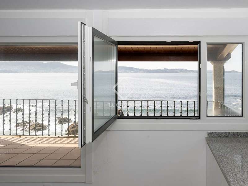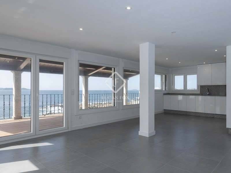 On the Galician Coastline between the city of Pontevedra and Sanxenxo, we find this outstanding renovated penthouse with breathtaking views. This property in a privileged location is a recently renovated attic. It is part of a three-storey building that, due to the difference in levels, can be accessed from street level. It has 126 m² of built surface area and sits on a shared plot measuring 517 m². The beach of Areas, with its white sand and blue-green waters, can be directly accessed from the shared garden area. The property has a convenient layout, with the day area towards the front facade facing the ocean and the night area towards the back of the house. A superb terrace overlooks the "Playa de Areas", the Estuary and the Atlantic Ocean. We access the property from the main road that connects the coastal areas and park the car outside. We step onto an ample porch and enter the home. An entrance hall and a long corridor connect the bedrooms with the day area. To the right of the hall is the main bedroom, with an ample walk-in wardrobe. To the left of it, we find a shared bathroom and two additional bedrooms. All the bedrooms in this house are spacious, have a very clean and classic finish and face the rear and sides of the home, receiving abundant sunlight. Towards the front of the property, we enter a very large living and dining room area with an open-plan kitchen that is fully and elegantly equipped. This ample space has wide windows and sliding glass doors connecting to the terrace, and it is heated by a beautiful stone fireplace. The views from these indoor and outdoor areas are breathtaking. This property is well suited for a couple or family with children, as well as investors looking for a rental property in one of the region's prime Summer resorts. Do not hesitate to call our office for further details.