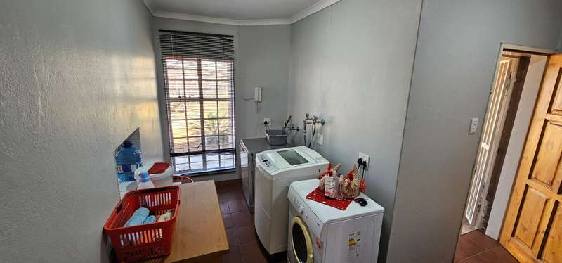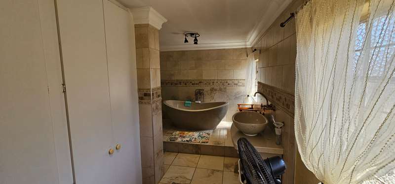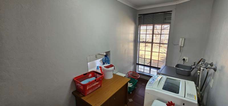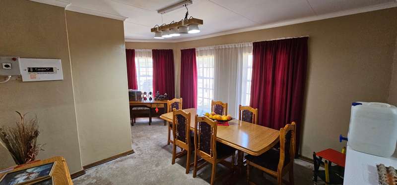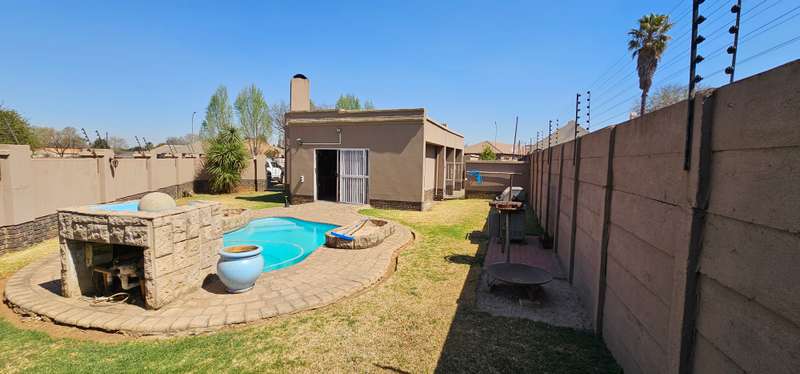What a beautiful 4 bedroom House in Delmas Extension 4, This well maintained house has the follow to offer to its new Owners!! 4 Bedrooms - 2 Bathrooms 1 on suite - Beautiful Kitchen - Laundry room - Dining Room - Living room - Entertainment room - Double Garage - Carport - Swimming Pool - Generator - Alarm System Beams all around house - Electric Fence - 2 JoJo tanks 2700 Liters each, but not equipped - Tool Shed - Build in Braai and Bar. This house is a buyers dream house, Almost no TLC needed on the house, garage motors needs TLC, 1 bathroom, shower glass doors need to be fitted and Dining Room needs new tiles, currently only concrete owner will lay tiles with time, but if sold soon the floor will be as is. Lovely spaces big Garden well looked after. The generator is connected directly to the house and it will stay. Municipality electricity and water. No words can describes this beautiful 4 Bedroom House in Delmas, with this Price Listed it is worth the Money.