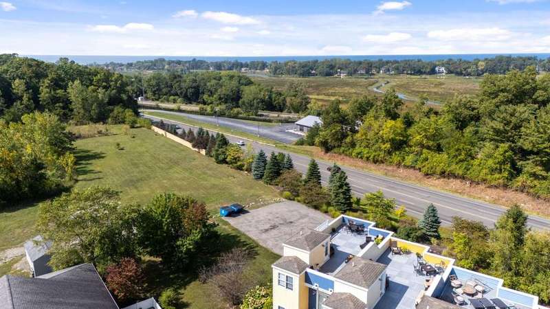 Carefree Coastal Living in New Buffalo! Experience easy, maintenance-free living at one of New Buffalo's premier condominium communities. Enjoy year-round amenities including an indoor swimming pool and spa, a fully equipped fitness center, and a spacious gathering room with a full kitchen-perfect for entertaining family and friends. This beautifully renovated end-unit condo offers approx 2,000 sq. ft. of living space across three levels, bright and airy with ample natural light with windows at every turn and featuring 3 bedrooms and 3 full baths. The open-concept main floor includes an inviting living area with a gas fireplace, hardwood floors, and a modern kitchen with granite countertops and stainless-steel appliances. Two ensuite bedrooms feature walk-in showers and private balconies. The expansive rooftop deck showcases panoramic views of Lake Michigan-ideal for sunset watching or summer fireworks. Conveniently located near downtown New Buffalo's shops, restaurants, schools, beaches and the Amtrak Station. This home is perfect for a getaway retreat or full time residence.