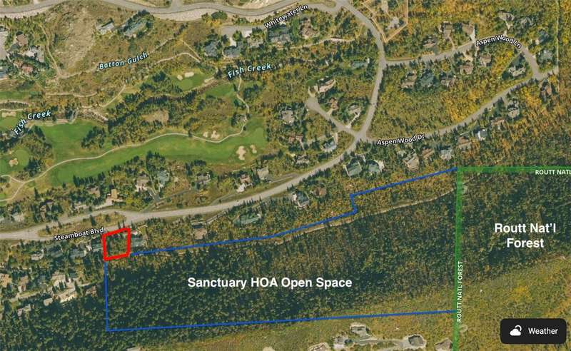 One of the few remaining homesites in the aptly named Sanctuary, this .56 acre lot is nestled below towering trees and backs to dedicated open space and a trail leading to the National Forest, while enjoying elevated views of the Rolling Stone golf course, mountains, Fish Creek Canyon and local wildlife. Daily walks or rides beckon with the Sanctuary Trail literally in your back yard leading to neighborhood trails, Fish Creek Falls and Routt National Forest. This lot is ready to build with a paved driveway to the lot, city utilities ready to be tapped and lot cleared so the land is ready for your vision. Enjoy morning sun as it crests over the hillside, afternoon sun and evening sunsets while escaping the summer heat under the natural shade of mature trees. The homesite includes a golf membership to Rolling Stone Golf Course (upon transfer fee) and is conveniently located amongst world class skiing, golf, a Nordic ski center in winter, downtown Steamboat and endless outdoor recreation. Tranquility, privacy, convenience, beauty, and surrounding luxury are just a few of the features of this premier homesite adjacent to public land and open space.
