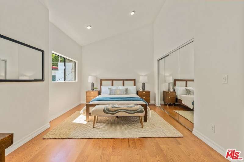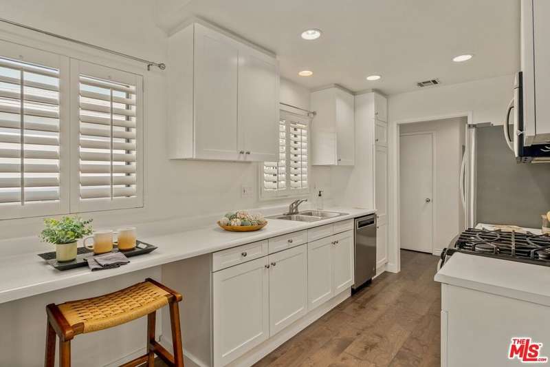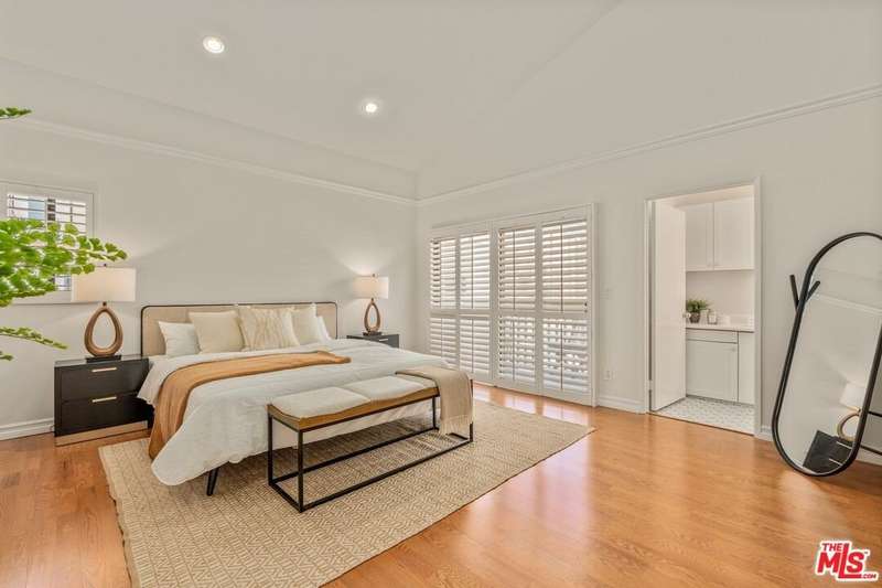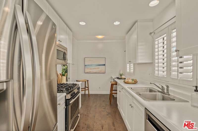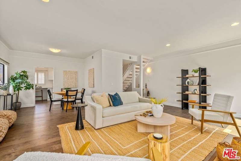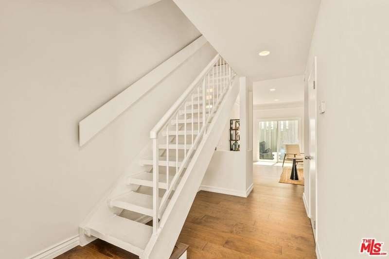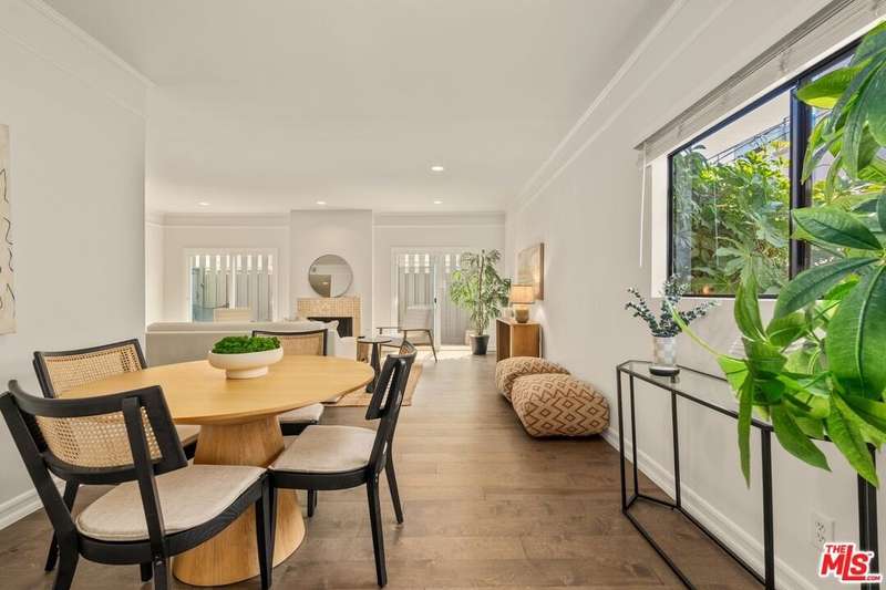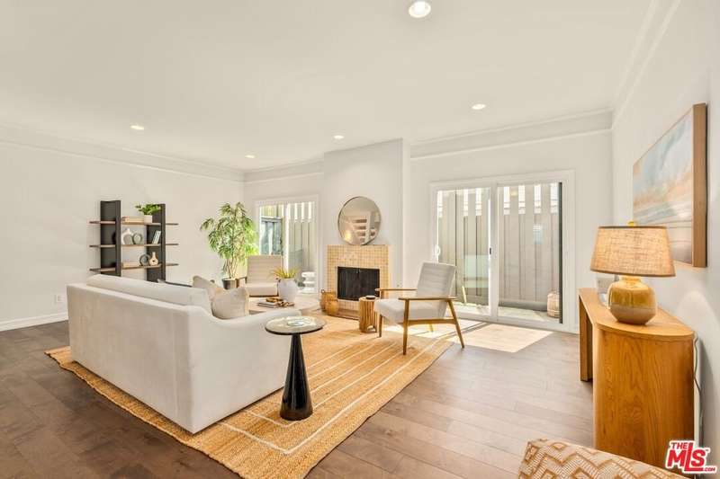 Spacious and bright 2BR+2.5BA townhouse located in the heart of Santa Monica. Newly installed wood floors on the 1st floor showcase the large living area with decorative fireplace, recessed lighting and new glass sliding doors overlooking the patio spanning the width of the unit. Eat-in kitchen has stainless steel appliances, with ample cabinet space and custom cabinets, that leads out to the spacious dining area. The powder room and coat closet complete the first-floor. The second-floor features two en-suite bedrooms including the large primary with high ceilings, walk-in closet and private balcony. Side-by-side laundry room with full-size washer and dryer. Both bedrooms have no common walls. Kinetico water filtration system. Two side-by-side parking spaces with storage unit in gated garage. Boutique 5-unit building that includes earthquake insurance. Would make a wonderful place to call home.
