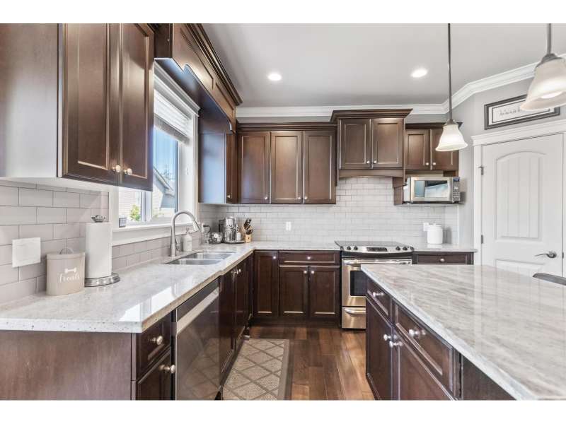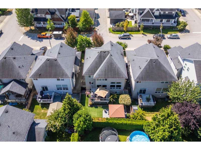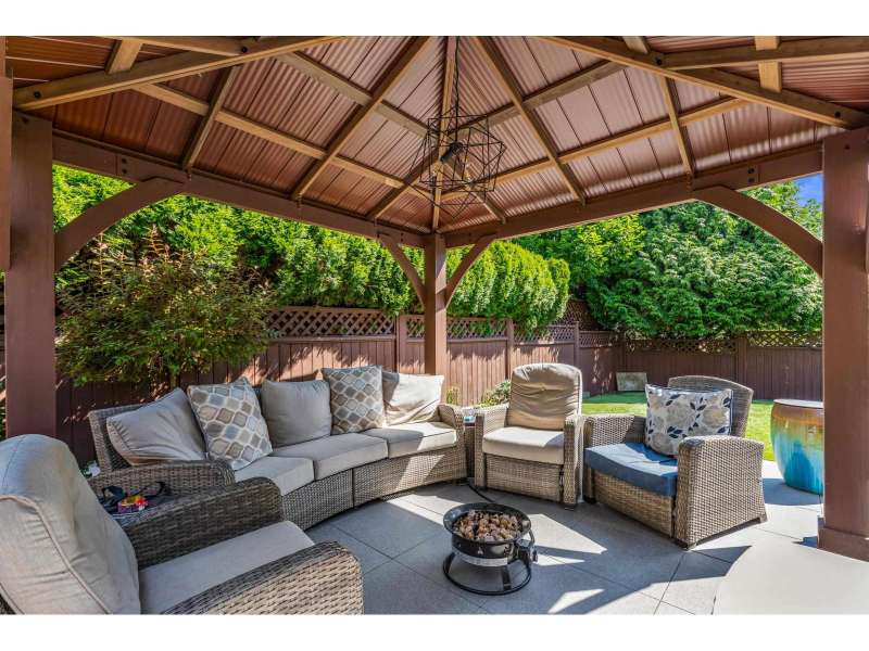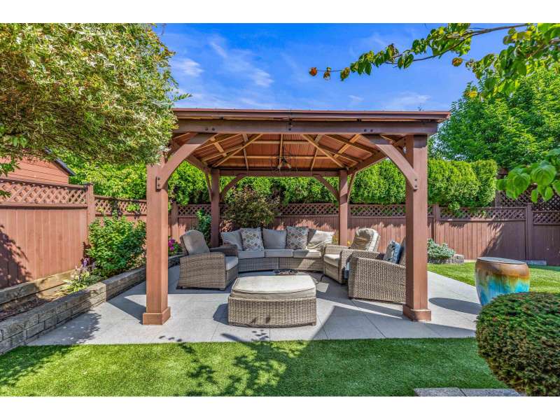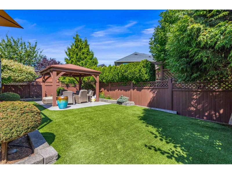 Stunning 6-bedroom detached home in sought-after Yorkson built by reputable Benchmark Homes! This spacious family home features vaulted ceilings in the bright and open living room, extra den on main floor ideal for home office, 4 bedrooms upstairs including an oversized primary with walk-in closet and ensuite, plus a 2-bedroom legal suite below-perfect for mortgage help or extended family. The updated backyard is an entertainer's dream with low-maintenance artificial turf, a gazebo-covered patio, and a huge deck for outdoor living. Bonus features include air conditioning and quality finishes throughout. Located on a quiet street, close to schools, parks, and all amenities. A perfect blend of space, comfort, and location! (id:58403)