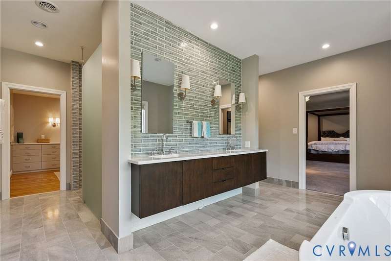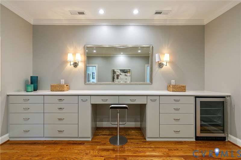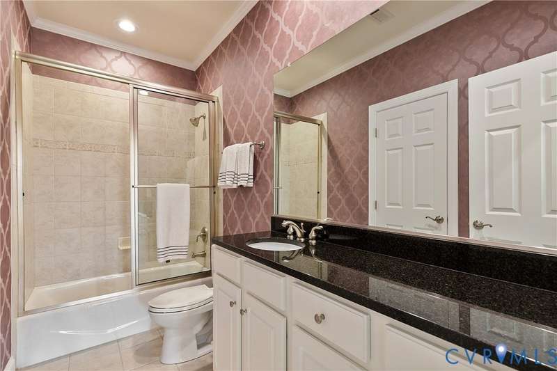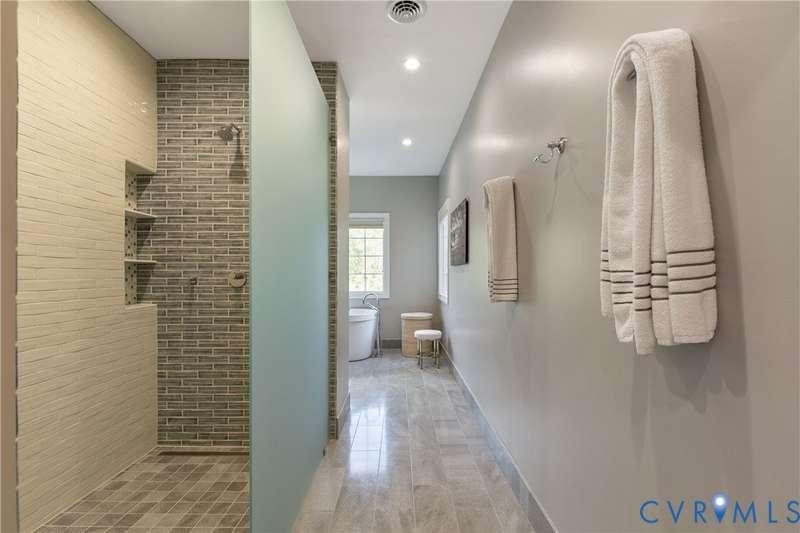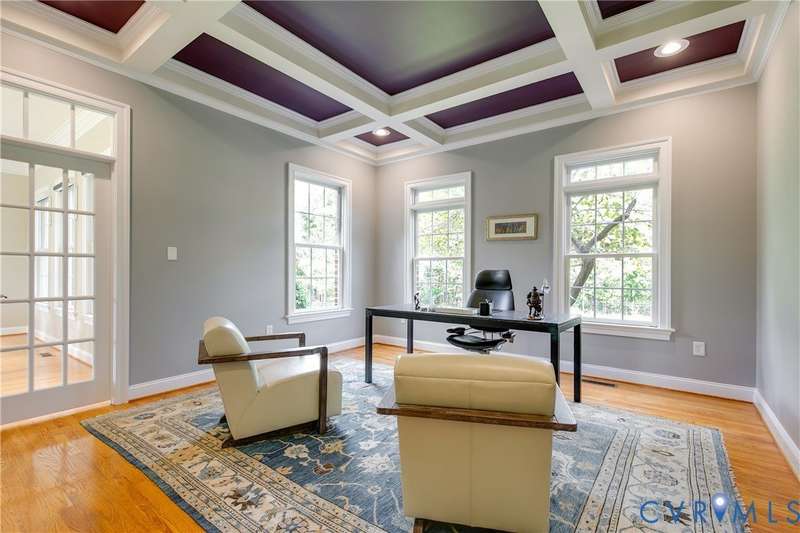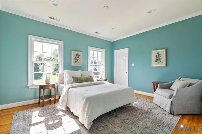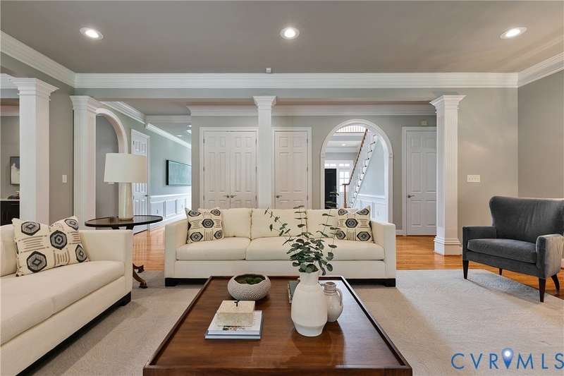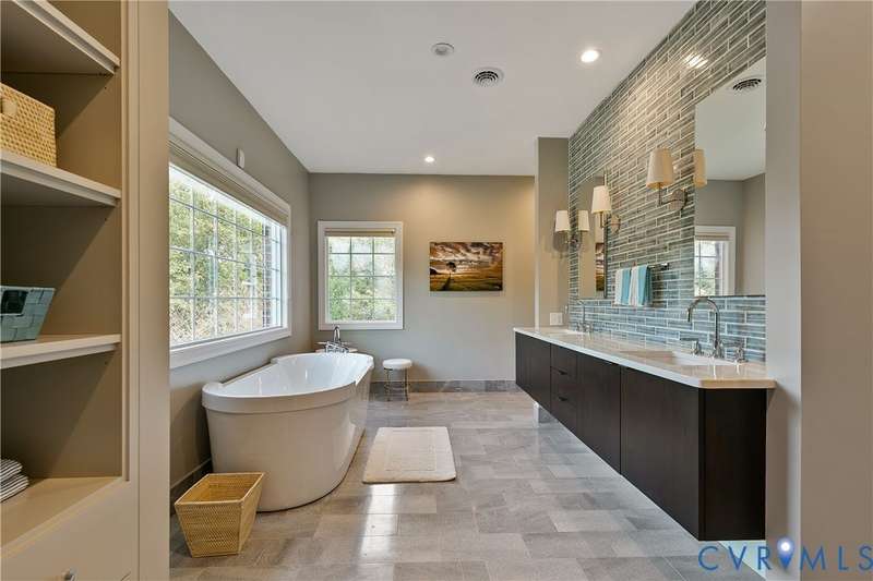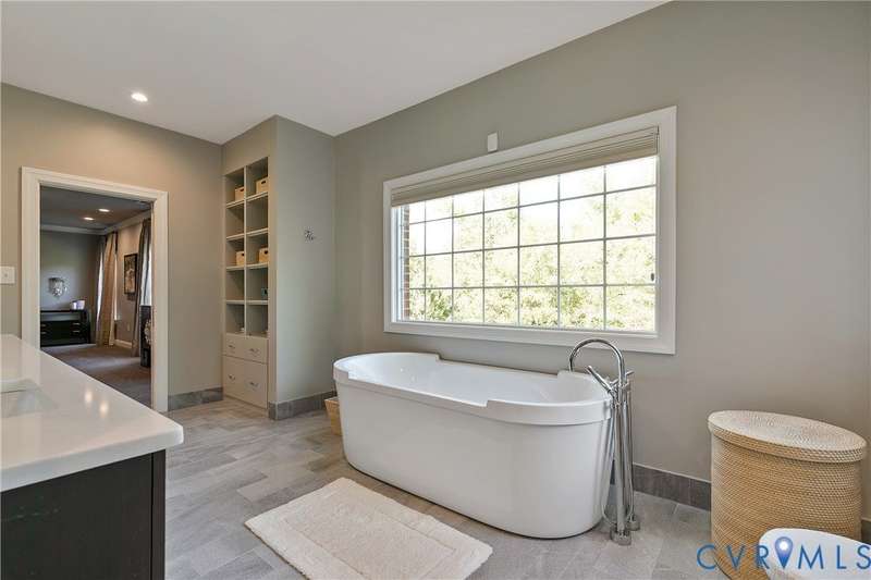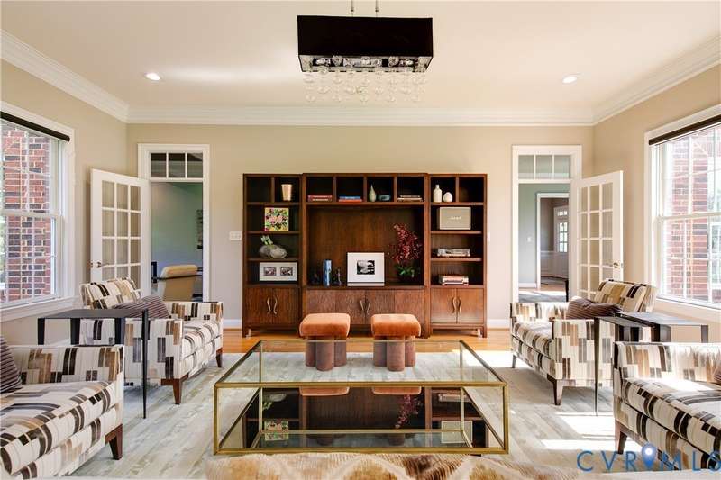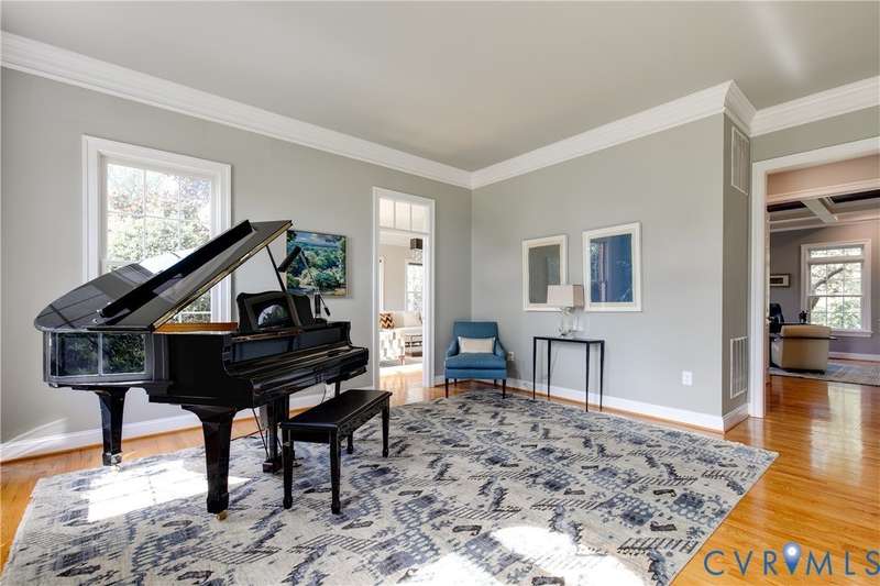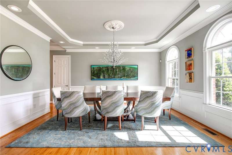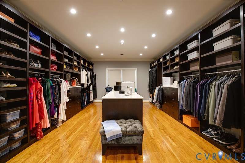 Welcome to this stately brick Colonial set on over 5 acres of professionally landscaped, private grounds in the gated community of Pembroke Farms. Enjoy exclusive neighborhood access to a wide, navigable stretch of the James River conveniently located on the River Road Corridor. Spanning three finished levels, this home offers 5 bedrooms, numerous formal and informal living spaces and multiple flex rooms that could serve a variety of purposes. The thoughtfully designed interior includes a first floor with 10 ft ceilings, a formal living and dining room, an office, a sitting room enveloped by windows, and a large family room that seamlessly opens to the renovated gourmet kitchen with quartz countertops, marble backsplash, custom cabinetry, and top-tier appliances. A butler's pantry/drop zone connects to the attached garage for everyday convenience. Upstairs, the primary suite is a private retreat with a spa-inspired en suite bath, a dressing room, and a custom walk-in closet. Three spacious bedrooms complete the second floor, each with walk-in closets, and two featuring en suite baths. The lower level has a rec room with projector, a kitchenette with bar style seating, and a wine cellar-perfect for entertaining. Additionally, there is another kitchenette, one bedroom and full bath, two flex rooms as well as ample storage closets. This exceptional home offers an 8-bay garage, 4 bays attached and 4 bays detached. The detached 4 bay garage includes car lifts and over 900 sq. ft. of unfinished space-already roughed in for a bath-ideal for a future guest suite or studio. The outdoor living space is equally impressive with a multi-tiered travertine terrace, complete with a grilling station, space heaters, and a striking stone fireplace, all overlooking serene, manicured grounds. A rare offering of craftsmanship, privacy, and luxury in one of Richmond's most sought-after riverfront enclaves.