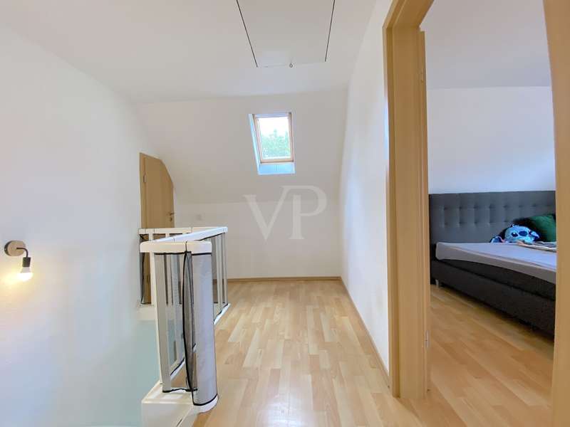 This charming semi-detached house from 1953 has been continuously modernized and partially extended over the years. The property impresses with its construction, well-kept condition and an exciting room layout on approx. 162 m² of living and usable space, spread over two floors. The plot covers approx. 431 m² and offers a carport with space for two vehicles. The first floor offers two rooms, including a spacious, open-plan living and dining room, an office or guest room, a kitchen, a bathroom with shower, a guest WC, hallway, as well as practical storage options in the utility room and storeroom. From the living room you can access the terrace, which invites you to relax and enjoy a cozy get-together. There are four rooms on the top floor, including a large master bedroom, a children's room, a bathroom with corner bath, an office or storage room, a storeroom and a hallway. The attic offers additional usable space, while the basement houses the heating system and pellet store. The garden is sunny and inviting - ideal for playing, gardening or barbecuing. This house offers you an excellent basis for comfortable living in a family-friendly environment. A property with charm, a practical layout and many advantages for the whole family. The property is available by arrangement. We would be happy to send you a detailed exposé with pictures and are of course also available for an individual viewing appointment. We look forward to your inquiry. Our qualified financial experts will be happy to help you apply for the new promotional loans and grants from the "Federal Subsidy for Efficient Buildings (BEG)" - for a new build or for refurbishment to an efficiency house as well as individual energy-related measures. You can apply for funding for construction supervision directly together with your loan or grant. We will be happy to advise you!
