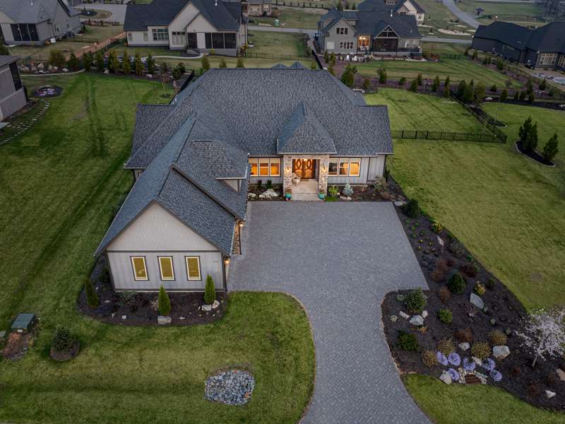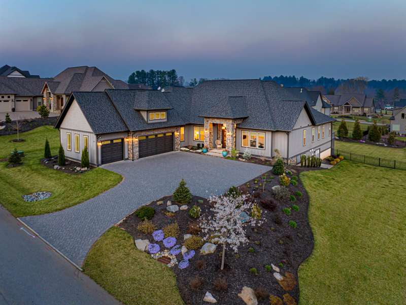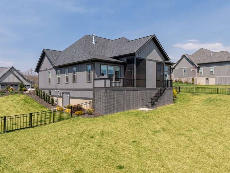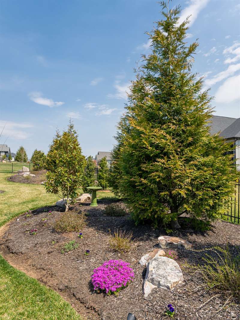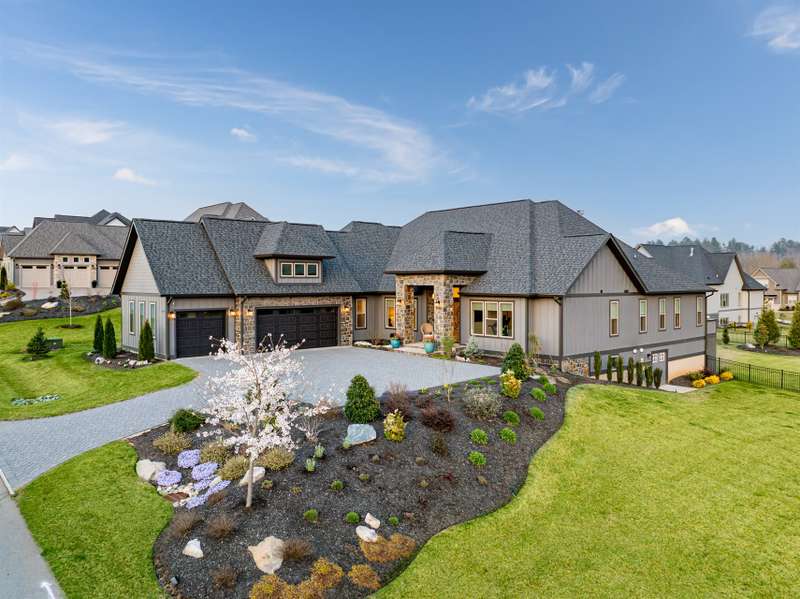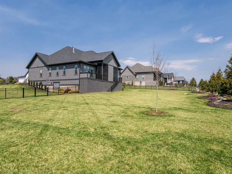 Nestled amid thoughtfully designed and fenced landscaping, this exquisite home showcasesluxury and easy one-level living. Step inside to soaring vaulted ceilings, accentuated byRestoration Hardware lighting and an open-concept floor plan that seamlessly connects the spacious greatroom to a chef's kitchen, where honed granite countertops, premium KitchenAid appliances, and anisland create the perfect space for entertaining. Retreat to the fully screened porch complete with astacked stone fireplace, the perfect backdrop for creating lasting memories. The primary suite is a serenesanctuary, boasting dual walk-in closets and a lavish bath with an indulgent double-entrance shower anddeep soaking tub. Well-appointed guest suites provide exceptional comfort and privacy. French doors open to a large office with built in cabinetry. Designed fortoday's living, there's a whole-house generator and EV chargingstation in the 3 car garage, ensuring low-maintenance & modern comfort.