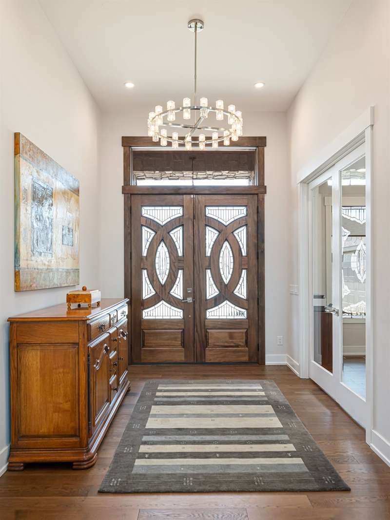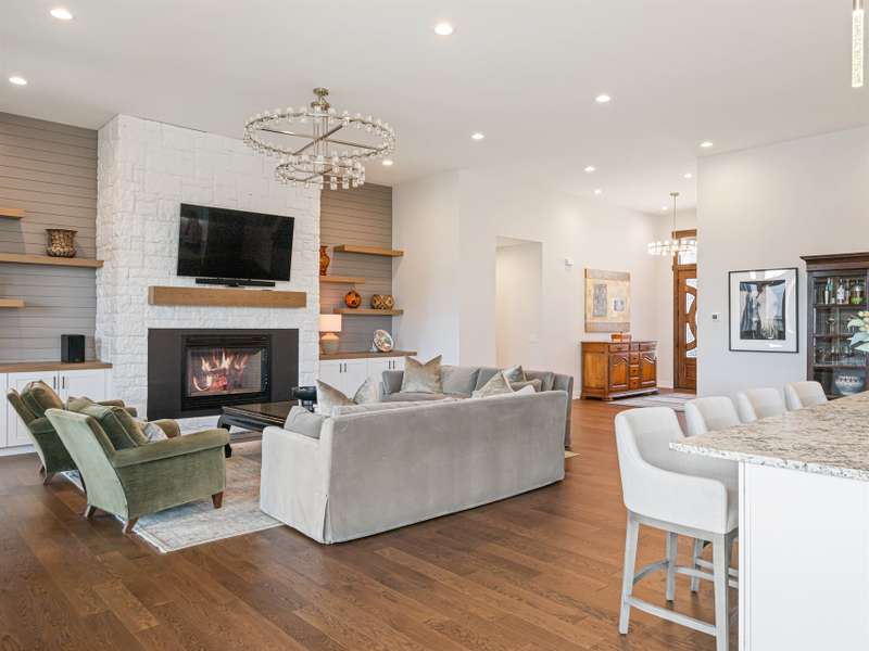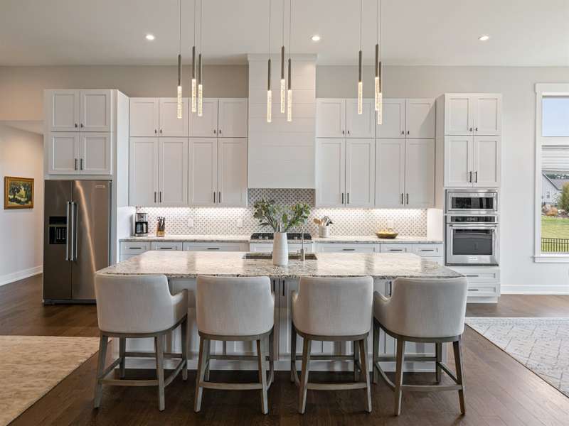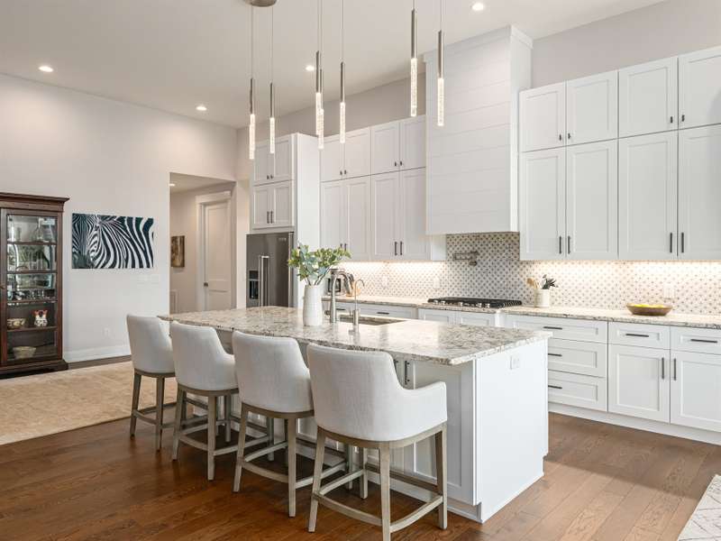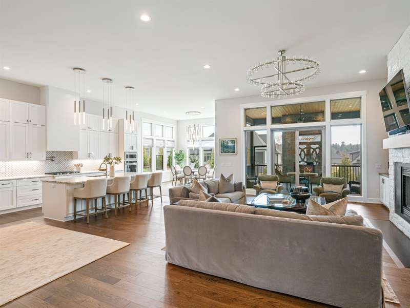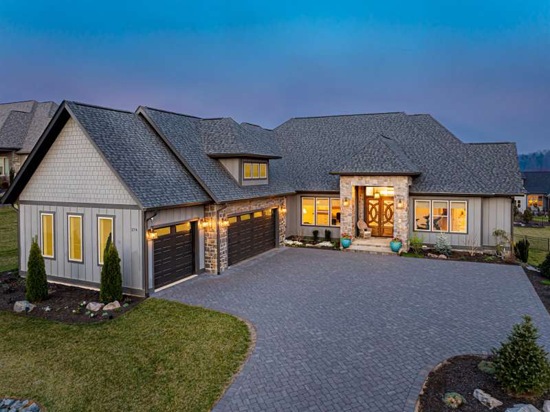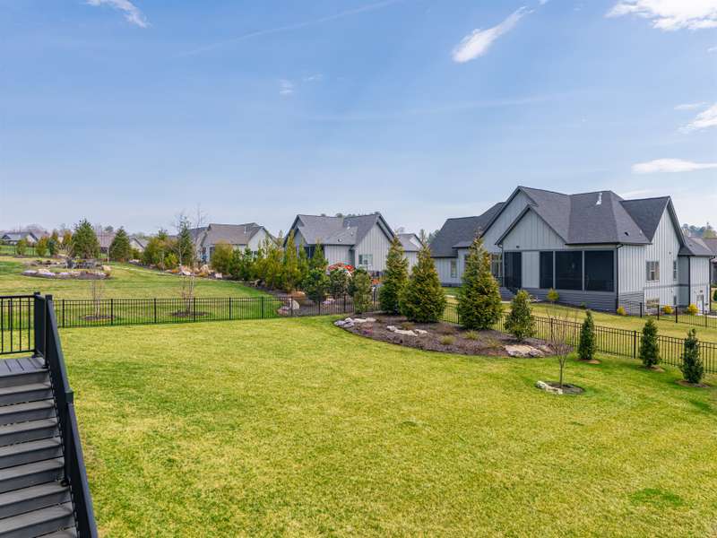Nestled amid thoughtfully designed and fenced landscaping, this exquisite home showcasesluxury and easy one-level living. Step inside to soaring vaulted ceilings, accentuated byRestoration Hardware lighting and an open-concept floor plan that seamlessly connects the spacious greatroom to a chef's kitchen, where honed granite countertops, premium KitchenAid appliances, and anisland create the perfect space for entertaining. Retreat to the fully screened porch complete with astacked stone fireplace, the perfect backdrop for creating lasting memories. The primary suite is a serenesanctuary, boasting dual walk-in closets and a lavish bath with an indulgent double-entrance shower anddeep soaking tub. Well-appointed guest suites provide exceptional comfort and privacy. French doors open to a large office with built in cabinetry. Designed fortoday's living, there's a whole-house generator and EV chargingstation in the 3 car garage, ensuring low-maintenance & modern comfort.