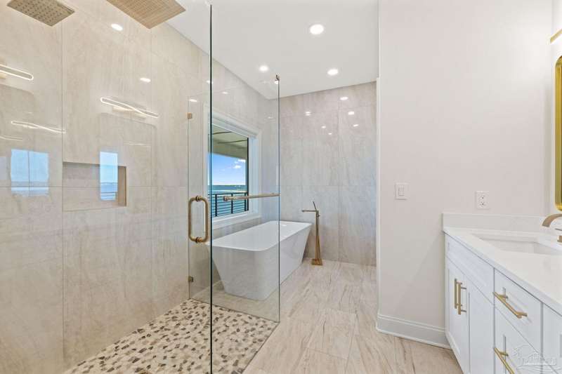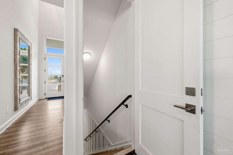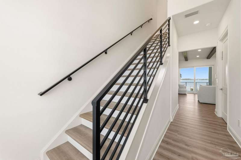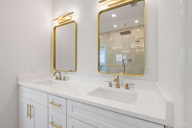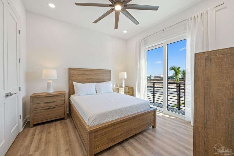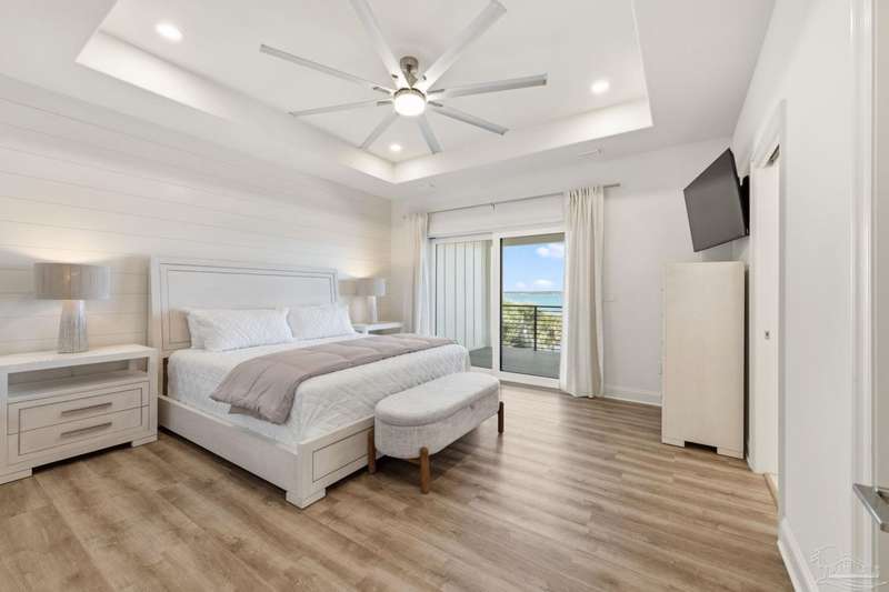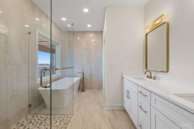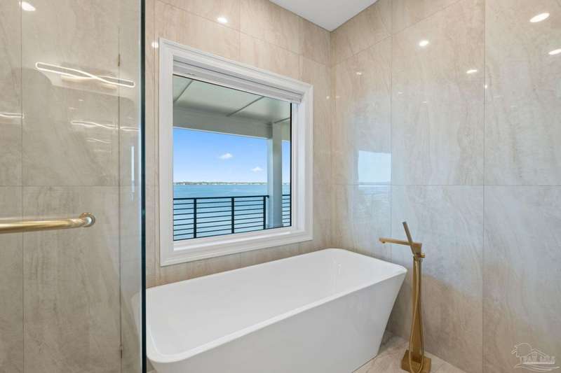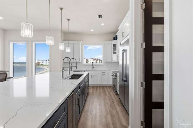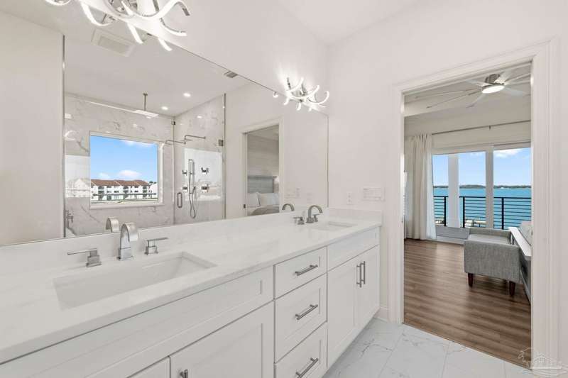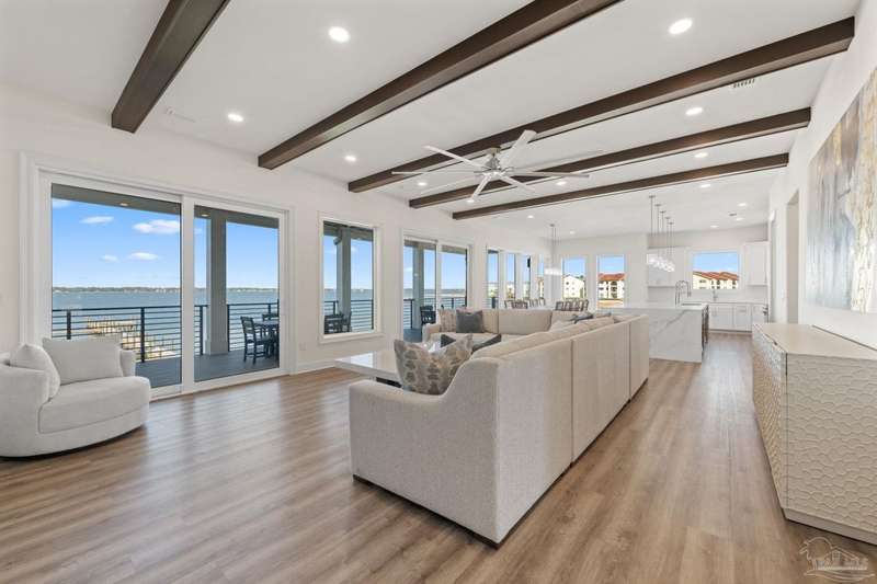 Brand new construction on a deep water lot with a dock on the Sound at beautiful Navarre Beach! This Bock Construction home was just completed and is ready for you. This home is being sold fully furnished and could be an amazing waterfront home with a place to keep your boat in your own backyard or as an amazing turnkey vacation rental. Excellent water depth at the dock. Enjoy multiple 50 feet waterfront decks to watch the birds and the dolphins while being steps away from a relaxing great room with room for everybody. Plenty of storage underneath for all your toys and beach gear along with an elevator so everyone has easy access to this beautiful home. The outside is as beautiful as the gorgeous interior and features the dock, a sodded yard, and a white sandy beach out back!