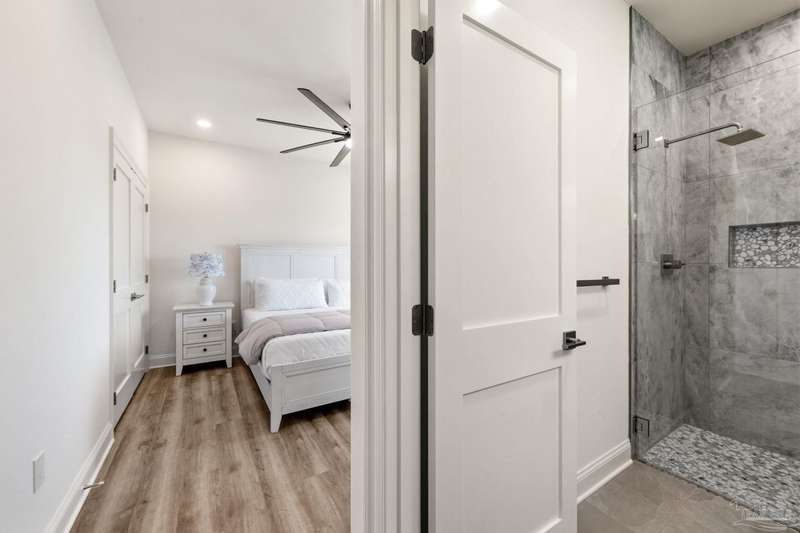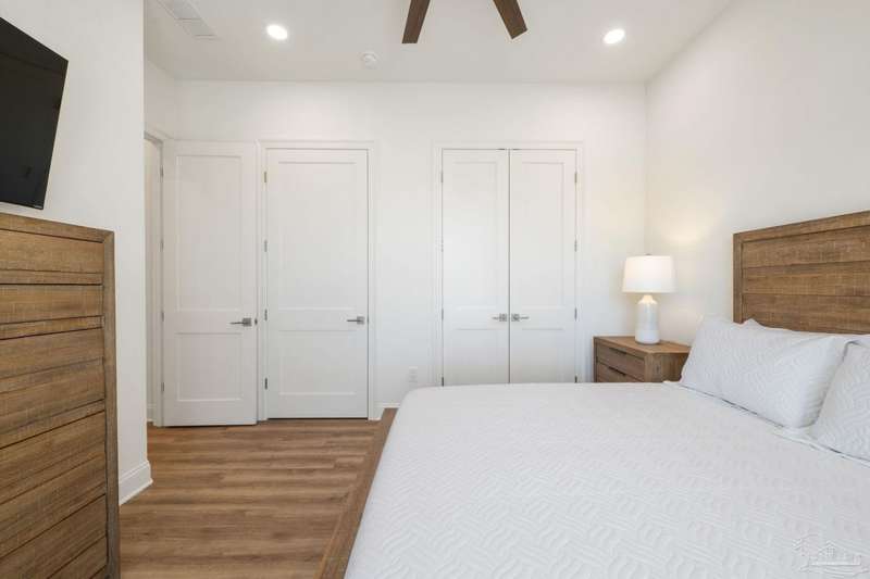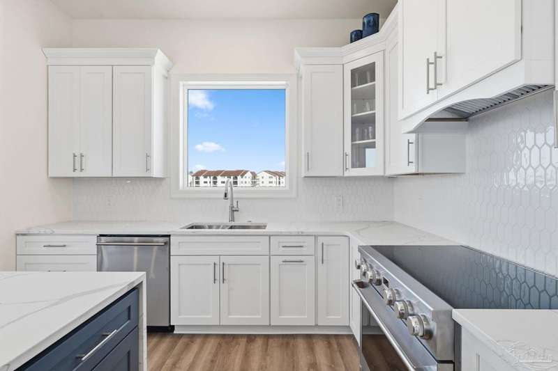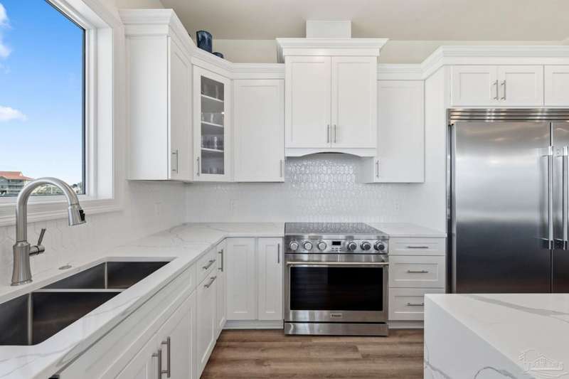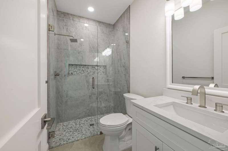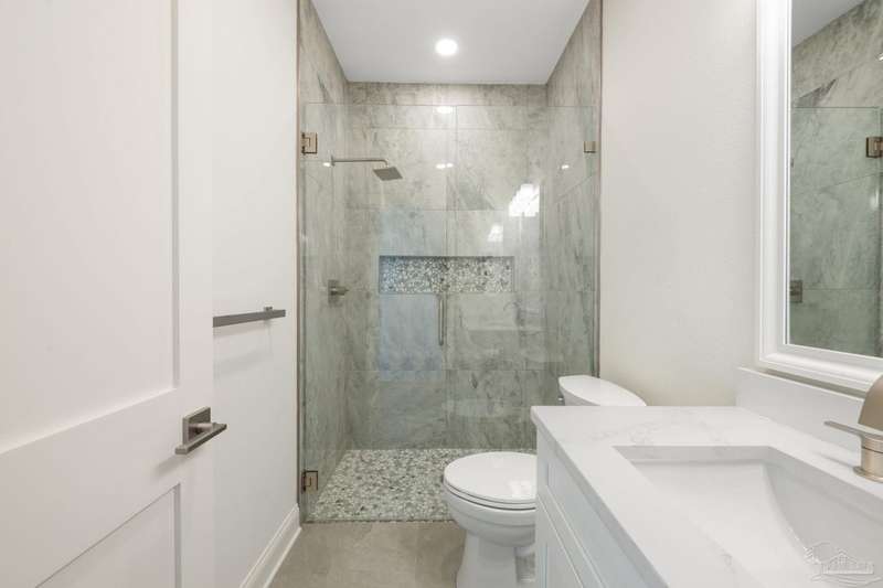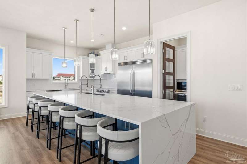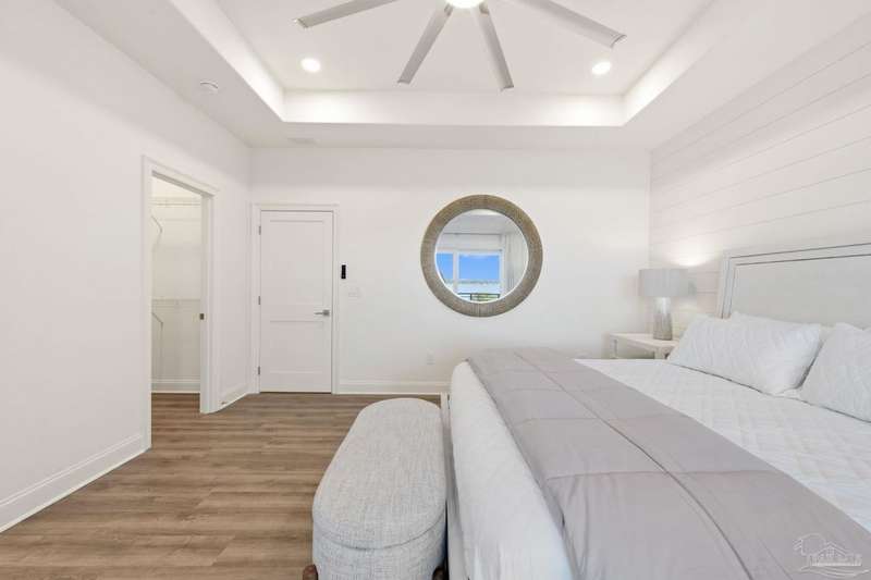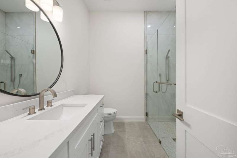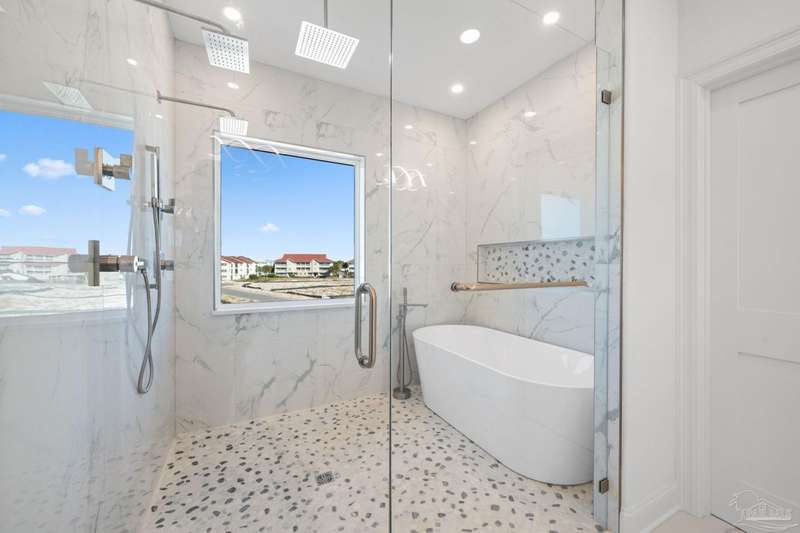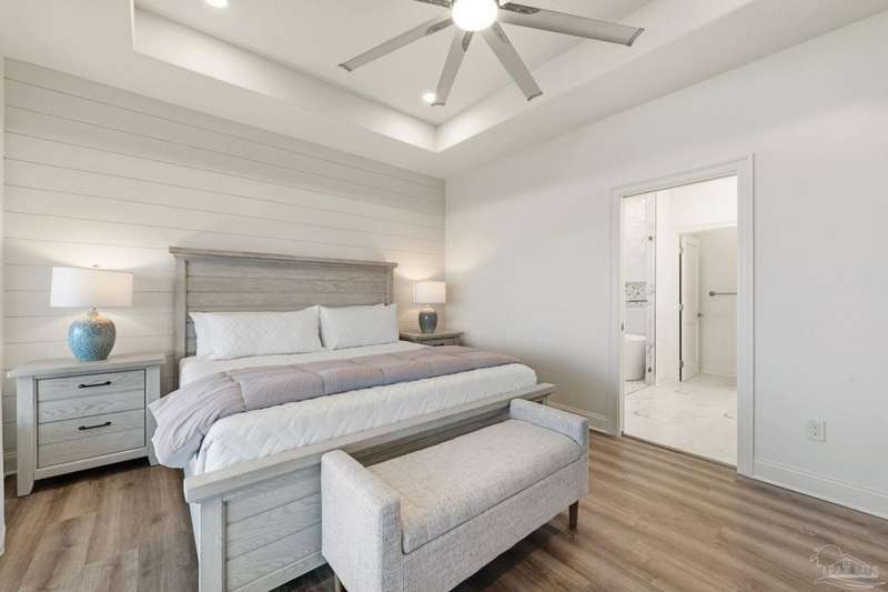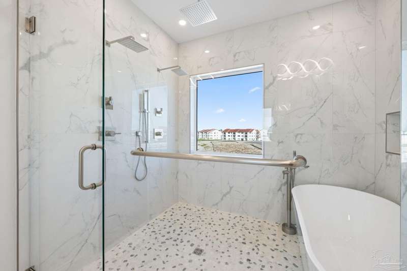 Brand new construction on a deep water lot with a dock on the Sound at beautiful Navarre Beach! This Bock Construction home was just completed and is ready for you. This home is being sold fully furnished and could be an amazing waterfront home with a place to keep your boat in your own backyard or as an amazing turnkey vacation rental. Excellent water depth at the dock. Enjoy multiple 50 feet waterfront decks to watch the birds and the dolphins while being steps away from a relaxing great room with room for everybody. Plenty of storage underneath for all your toys and beach gear along with an elevator so everyone has easy access to this beautiful home. The outside is as beautiful as the gorgeous interior and features the dock, a sodded yard, and a white sandy beach out back!