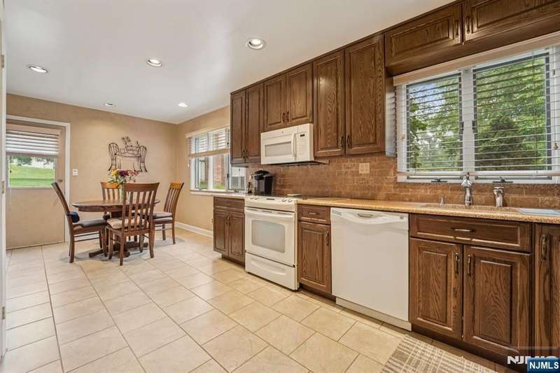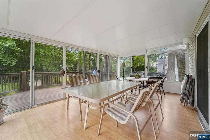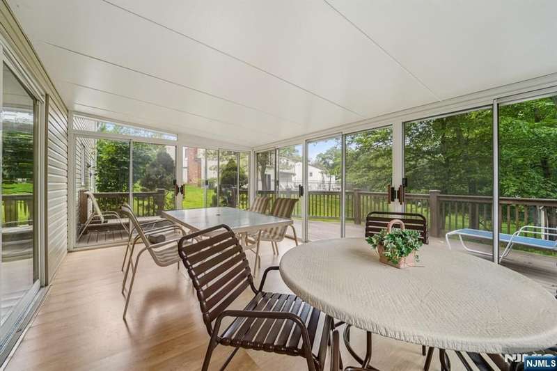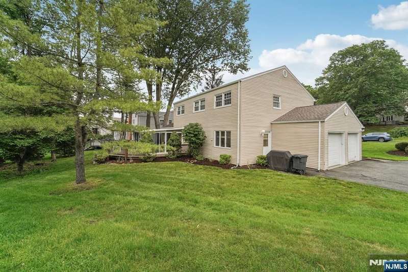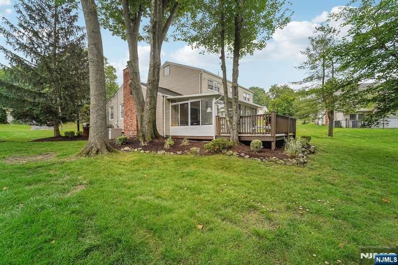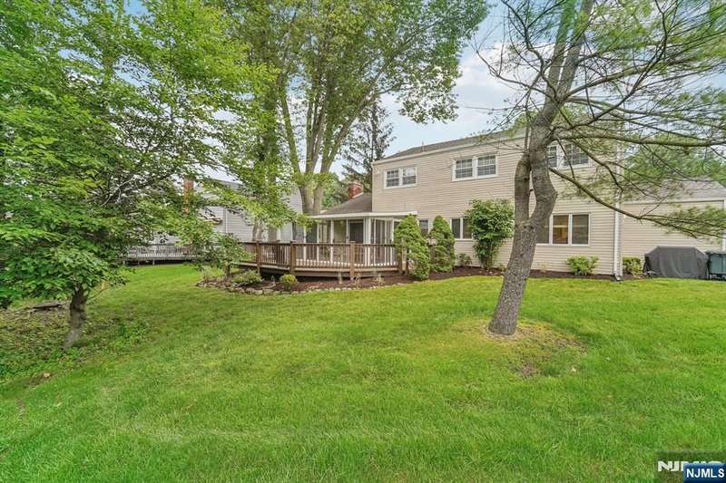 Welcome home to this well-maintained 4-bedroom, 2.5-bath Colonial nestled on a beautifully manicured, level lot in the heart of Wayne. The welcoming entry foyer leads into a bright and spacious living room, perfect for relaxation and conversation. An adjacent formal dining room offers the ideal setting for intimate meals or festive gatherings. A large cased opening flows into the eat-in kitchen featuring custom cabinetry, granite countertops, a stylish backsplash and a casual dining area. Laundry is in the kitchen. A rear door leads to the backyard for easy outdoor access. The cozy family room boasts a brick fireplace and is ideal for movie nights or entertaining. Sliding glass doors with screens open into the expansive sunroom an inviting space to enjoy your morning coffee or evening cocktail and continue out to the rear deck, perfect for outdoor dining and summer get-togethers. A powder room and garage entrance add convenience to the main level. Upstairs, the spacious primary suite offers a large closet and private bath. Three additional bedrooms, one currently used as a home office, and a full hall bath complete the second floor. The partially finished basement provides flexible space for a den, home gym, office, or hobbies. The wooded backyard offers endless opportunities for gardening, play, or simply unwinding in nature. 2-car attached garage and ample driveway parking. This warm and versatile Colonial blends everyday comfort with effortless entertaining inside and out.