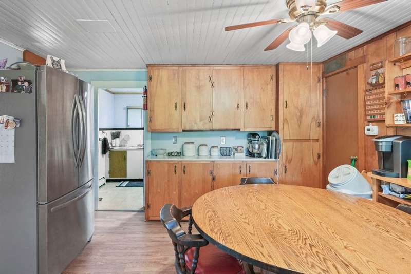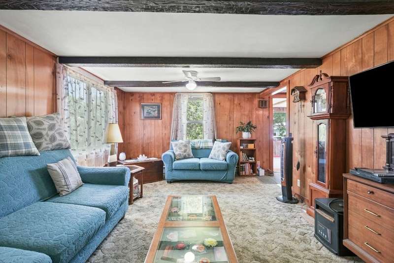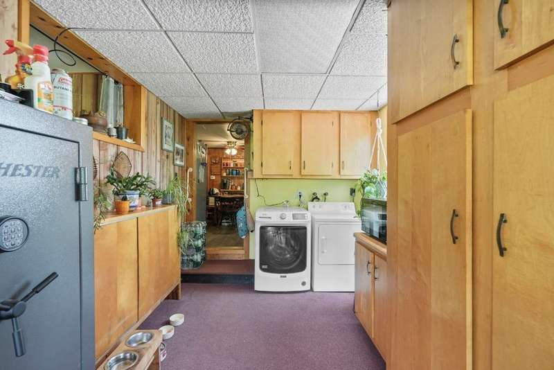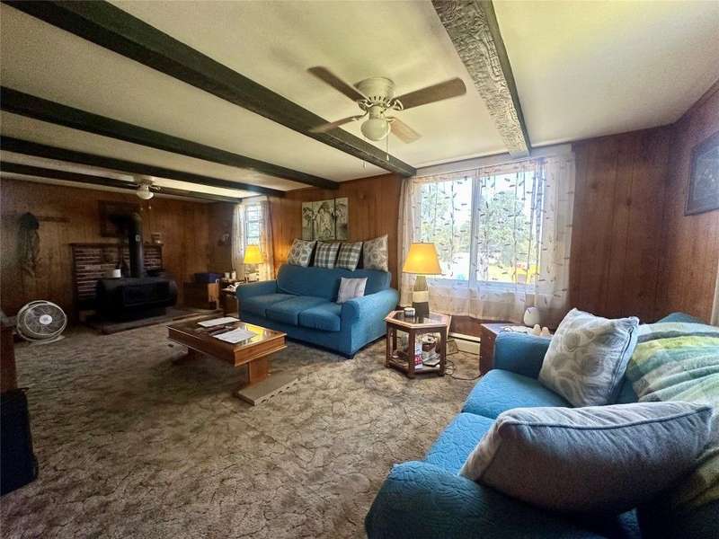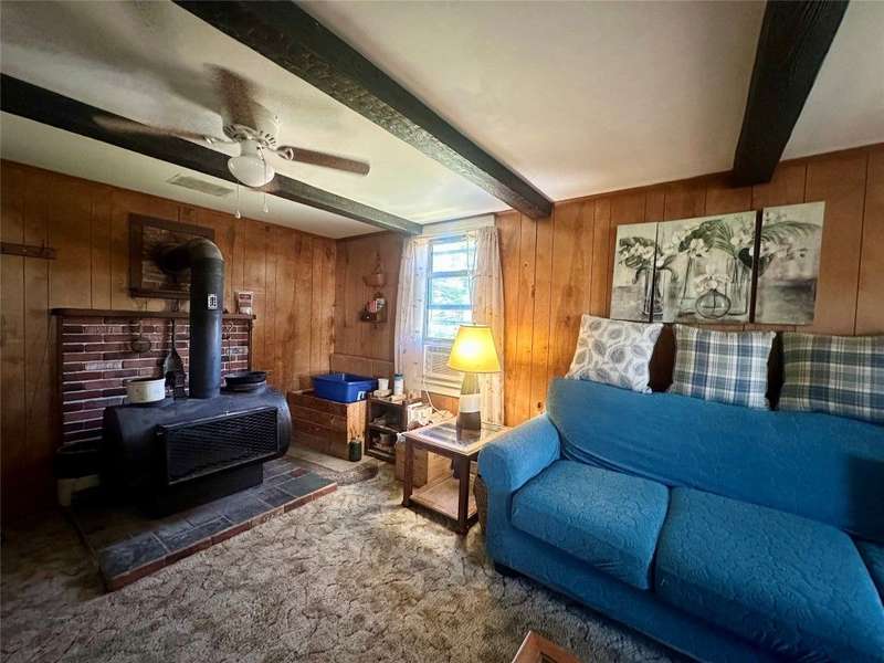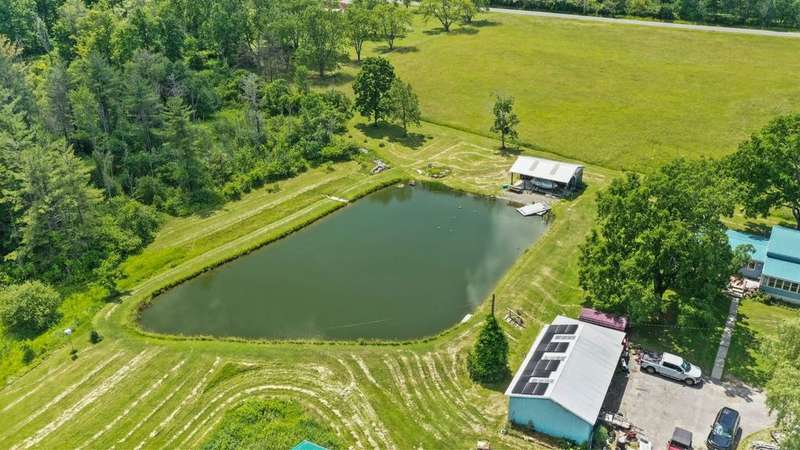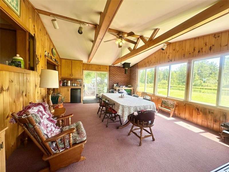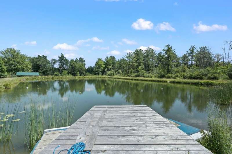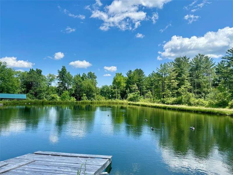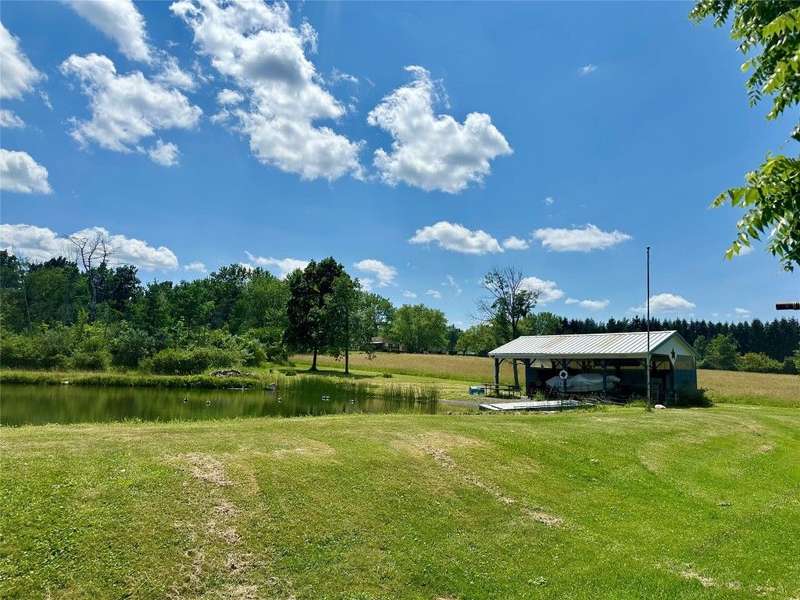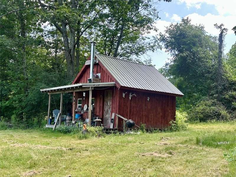 Welcome to this peaceful country retreat set on over 60 beautiful acres. This charming 4 bedroom, 1 full bath home offers first floor living with a primary bedroom and convenient laundry on the main level with built in cabinetry and appliance space. Inside, you'll find exposed beams, a cozy wood stove in the living room. A bright dining room with large windows and sliders on both sides overlooking a tranquil setting. Step outside to enjoy the natural beauty with a serene pond with a gravel bottom, a pavilion with a floating dock, and a rustic cabin tucked away, ideal for a hunting camp, or quiet weekend escape. Complete with its own stocked pond. The property also features a 3-stall garage with electric, solar panels, and plenty of room for storage or projects. Enjoy an abundance of fruit with berry bushes, plum, apple, and pear trees. A perfect mix of charm and natural beauty! Conveniently located near Ithaca, Owego, walking trails and nearby lakes, your private escape awaits!