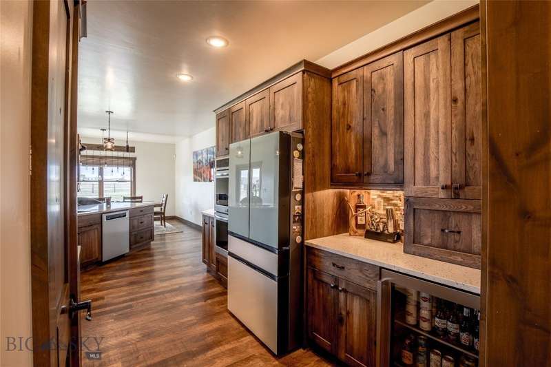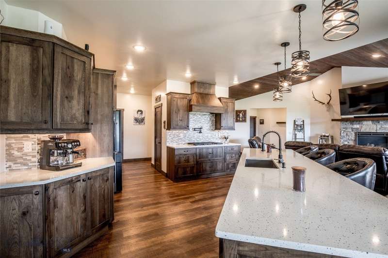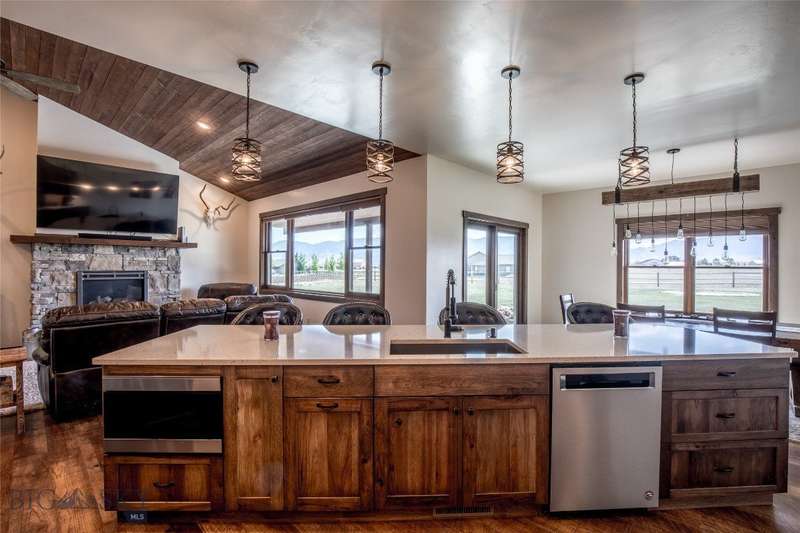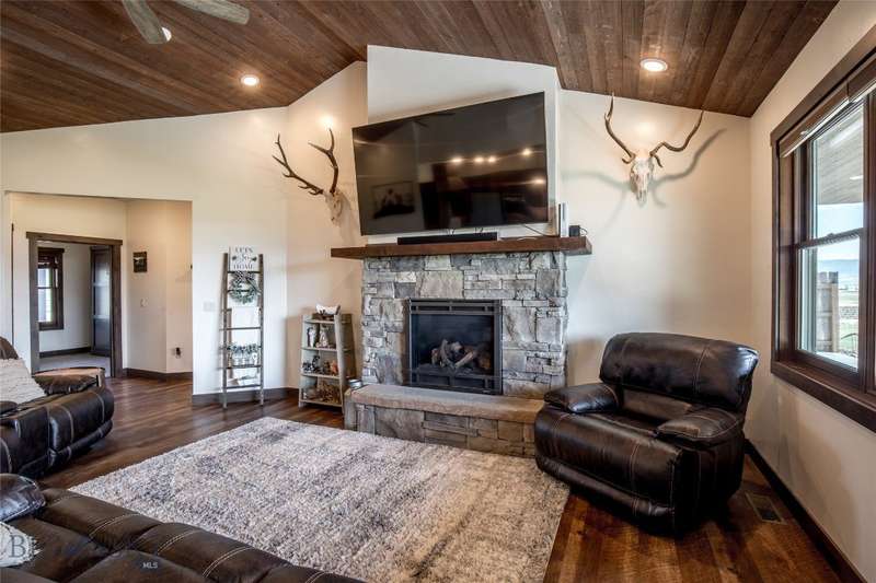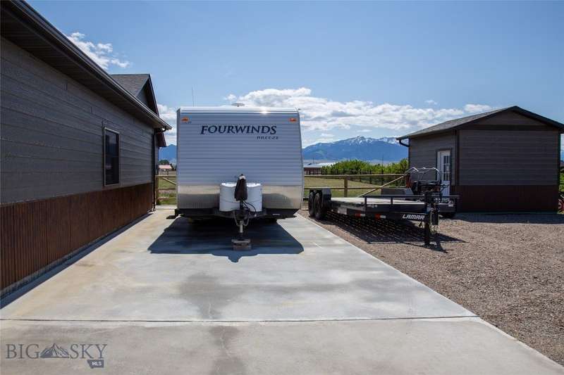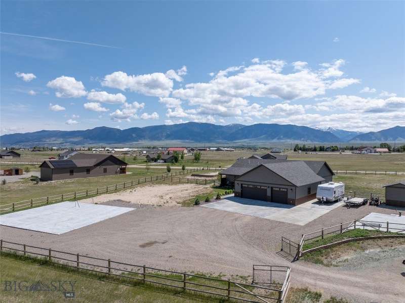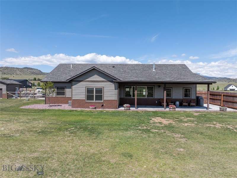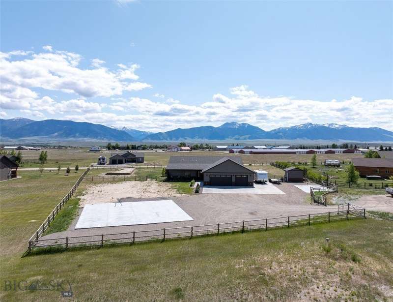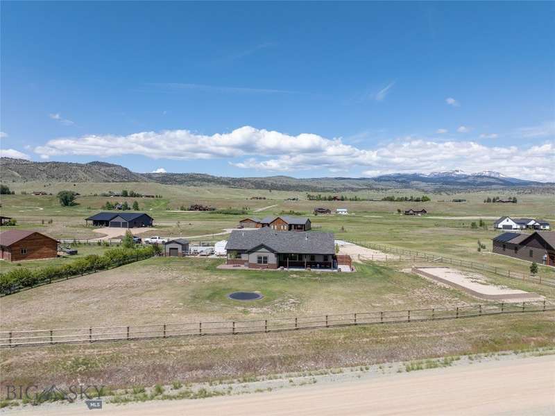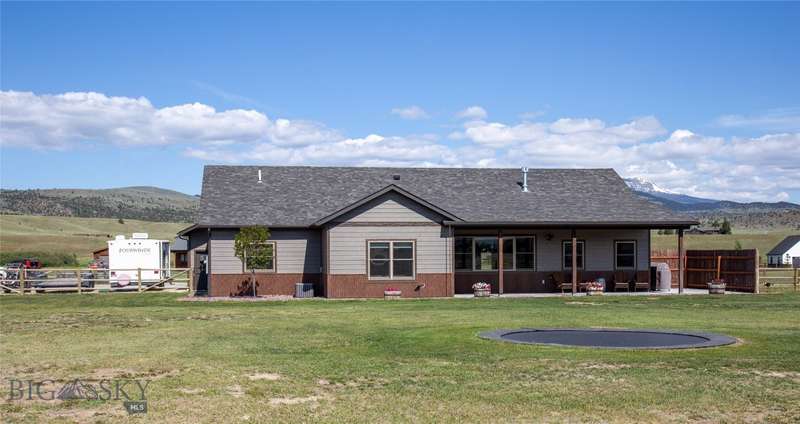 Located in the sought-after Sky View subdivision at the north end of Ennis, MT, this upgraded 4-bedroom, 3-bathroom home offers an ideal blend of modern living and small-town charm. Seller is offering up to $50,000 credit at closing, which may be applied toward a rate buy-down or completing landscaping improvements. Ennis is a welcoming community in Southwest Montana, situated just an hour from Bozeman and Yellowstone National Park, providing access to both outdoor recreation and a peaceful, rural lifestyle. Built in 2020, this home features approximately 2,596 sq ft (per owner) of well-designed living space on 1.35 acres. It combines high-quality craftsmanship with upgrades that seamlessly blend design and practicality. Inside, the residence offers custom cabinetry and quartz countertops, as well as tiled stone backsplashes. The kitchen is equipped with stainless steel appliances, including a refrigerator, wine fridge, double oven, cooktop, and drawer microwave. The home also includes on-demand hot water, Pella windows, vaulted ceilings with 9-foot walls, and propane forced air heating and air conditioning, ensuring comfort year-round. The propane fireplace adds a cozy touch to the living space, while the primary suite features a double-head tiled shower, makeup vanity, and ample closet space. Bedrooms three and four share a full-sized bathroom, which features a double sink vanity and a walk-in tiled shower, providing plenty of room and functionality for family or guests. The fourth bedroom includes a Murphy bed, making it a versatile space that can easily adapt to a variety of needs. Entering from the oversized three-car garage, you'll find a custom-built laundry room/mudroom that adds both convenience and functionality to the home. For security, the home is equipped with a system of hardwired Ring cameras and a whole-house water softener and filtration system. The exterior of the property is just as impressive, offering a large 43x43 concrete slab that is shop-ready. Outdoor amenities include hot tub hookups, an in-ground trampoline, and a half-court basketball area, providing plenty of space for recreational activities. The irrigation system installation has been started and is ready to be finished and connected, offering the opportunity to easily maintain the property's landscaping. The property also features a 12x12 storage shed and a 1,000-gallon buried propane tank.