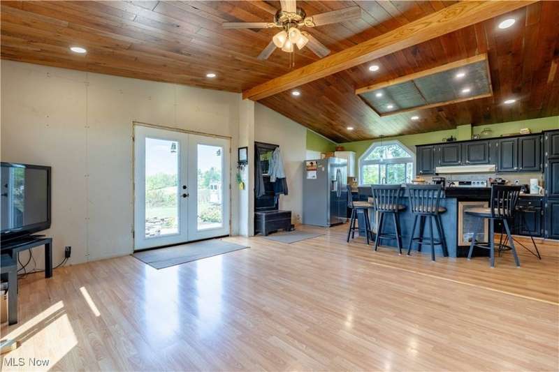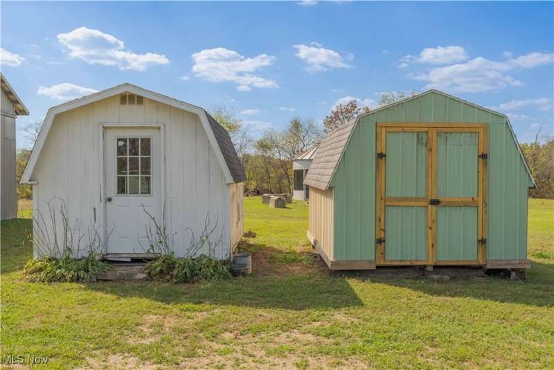 On five sprawling acres, this ranch-style manufactured home offers a unique blend of rustic charm and modern potential. Featuring three bedrooms and two bathrooms, this property is ideal for those looking to infuse their personal style into a comfortable living space. The home boasts updated operating systems from 2024, including a new HVAC system with central air, hot water heater, pressure tank, and enhanced attic insulation, ensuring efficiency and peace of mind. Outside, the expansive 40x100 barn and two additional sheds provide ample storage or workshop space. A distinctive grain bin gazebo adds character to the landscape, perfect for outdoor relaxation or entertainment. The property also includes a new metal roof, and durable metal siding, combining aesthetic appeal with low maintenance. This home presents a fantastic opportunity to add your finishing touches and create the rural retreat you've always dreamed of. With a propane furnace and a wood burner for a secondary heat source, comfort is guaranteed year-round. The kitchen comes complete with all appliances, high ceilings, and a luxurious wood-finished ceiling, enhancing the interior's appeal. Mineral rights are negotiable, adding potential value to this exceptional property.