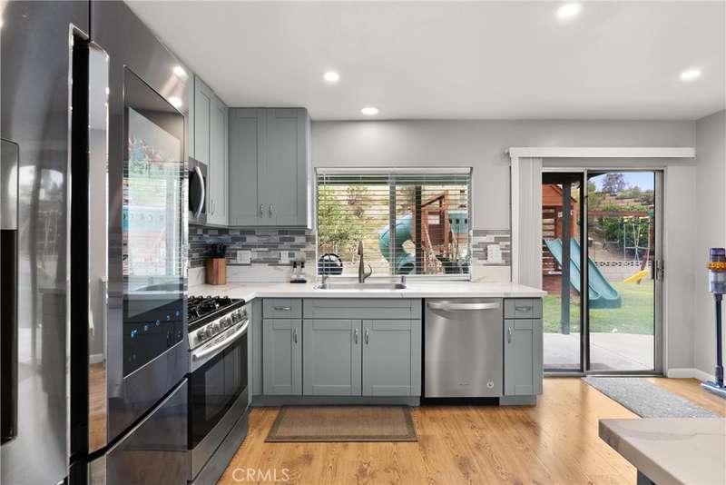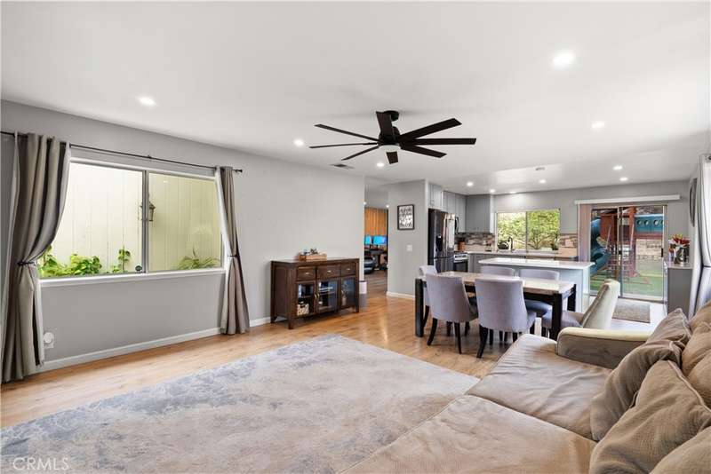 Discover this beautifully updated 3-bedroom, 2-bathroom, 1,553 sq. ft. single-story home, perfectly situated on an expansive 10,685 sq. ft. corner lot with RV parking. Designed for effortless living, this home features no steps inside - ideal for accessibility, comfort, and multigenerational living. Through the double front doors is a warm and inviting living room, anchored by a cozy fireplace perfect for cozy evenings or hosting guests. To the right, the bright family room flows seamlessly into the fully remodeled kitchen, boasting sleek quartz countertops, modern shaker cabinets, and stainless steel appliances. There are two convenient sliders opening to the backyard, blending indoor and outdoor living, in both the kitchen and living room. Down the hall, two generously sized bedrooms share a well appointed full bathroom. The private primary suite is a true retreat, featuring a spacious walk-in closet and a modern ensuite bathroom all with a touch of serenity. Outside, the massive backyard offers endless possibilities, complete with RV parking, a storage shed, and a unique aviary (birds not included). With luxury vinyl plank (LVP) flooring throughout, fresh updates, and a thoughtful single-level design, this home is move-in ready and waiting for you to make it your own.