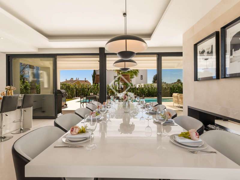 Perfectly located just a short stroll from the beach on the prestigious New Golden Mile, this south-facing masterpiece is where comfort, design, and functionality meet. Spread over three sleek levels, the villa welcomes you with a dramatic double-height entrance flooded with natural light. The open-plan layout features a large lounge, a designer kitchen with top-tier appliances, and full-length sliding doors that open onto an expansive sun-drenched terrace with a heated private pool—your year-round oasis for entertaining or winding down. This home offers 4 generously sized bedrooms, including a show-stopping master suite with a walk-in wardrobe, elegant en-suite, and a private terrace boasting tranquil views. Downstairs, the lifestyle continues with a private gym, sauna, state-of-the-art cinema room, laundry area, and a three-car indoor garage.