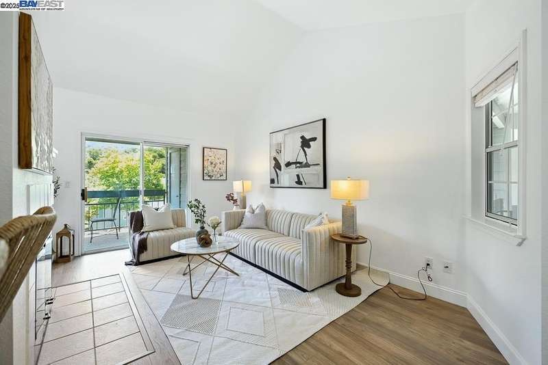 Welcome to this rarely available top-floor 3-bedroom, 2-bathroom unit in the desirable Canyon Meadows community. Ideally located at the front of the complex near the pool and tennis court, this home offers the perfect blend of comfort, convenience, and resort-style living. Inside, you'll find a spacious, light-filled layout with vaulted ceilings, a cozy wood-burning fireplace, and two private balconies. The remodeled kitchen features granite countertops and a garden window, while the updated primary bathroom adds a modern touch. Additional highlights include an in-unit laundry facility, walk-in closet, large exterior storage closet, and hardwood flooring throughout. The home includes a detached 1-car garage and an assigned parking space, with ample visitor parking nearby. Enjoy access to exceptional HOA amenities: 2 pools, hot tubs, tennis and basketball courts, a fitness center, volleyball court, clubhouse, and more. Conveniently located near BART, highways 580 & 680, top-rated schools, Stoneridge Mall, parks, and dining. Don’t miss the opportunity to own this move-in-ready home in one of Pleasanton’s most sought-after communities!
