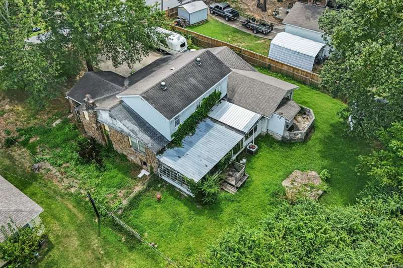 Two-story residential property includes 5 bedrooms, 2.5 bathrooms, huge bonus room and enclosed patio situated on .44 acres. Storage building in the backyard. Property requires rehab to floors, subfloors, exterior & interior walls, plumbing & new HVAC and ductwork. Potential buyers or buyer's agents encouraged to confirm with Sherwood Zoning and Planning for multi-family or commercial use. Survey done 7/29/2022.