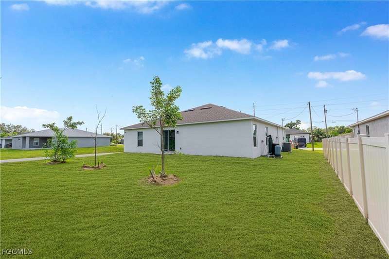 New to the market...This 2024 built 4 bedroom home is now looking for it's new owner. This 4 bedroom 2 bathroom home features 1,806 square feet of open concept living on an oversized quarter acre lot. As soon as you step inside, you'll notice the brand new laminate flooring that gives the home a warm and modern feel throughout the main living areas. The layout is bright and open, making it perfect for relaxing, entertaining, and everyday living. The perfect space for a growing family at an affordable price. The kitchen offers a clean contemporary design with plenty of counter space and a direct view of the large living and dining areas, making it easy to host and stay connected with guests or family. The home also includes central air conditioning, an attached 2 car garage, and a large backyard with enough space to design an outdoor living area, add a pool, or create a private retreat. With no HOA, you have the freedom to customize and enjoy the property your way. 1/4 acre corner lot w/ no neighbors to one side is also a plus! This location offers excellent convenience with quick access to Lee Blvd, Sunshine Blvd, and SR 82, making travel to Fort Myers, Southwest Florida International Airport, and surrounding cities simple and efficient. Daily essentials such as Walmart, Publix, Aldi, Walgreens, fitness centers, banks, and healthcare facilities are all within a short drive. Nearby you'll also find parks, playgrounds, walking trails, and several golf courses, giving you plenty of options for recreation and outdoor activity. Schools in the area include Sunshine Elementary, Lehigh Acres Middle School, and Lehigh Senior High School, making this a great choice for families. The continued growth and development in this part of Lehigh Acres makes this home not only a comfortable place to live but also a strong long term real estate opportunity.