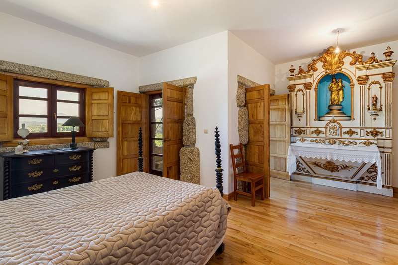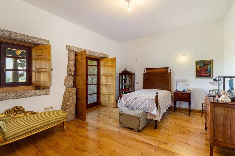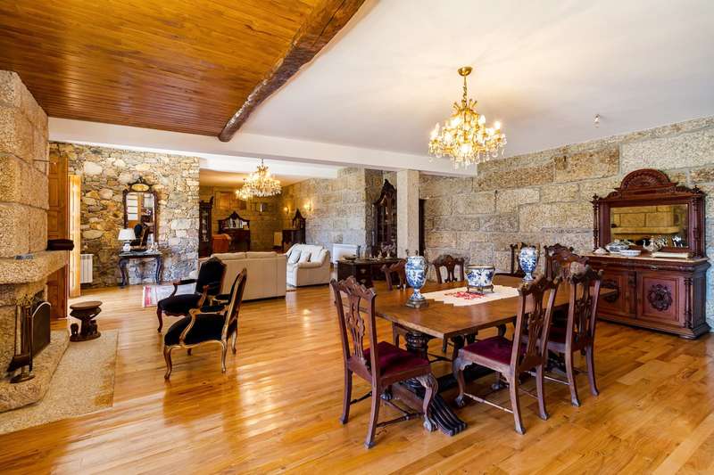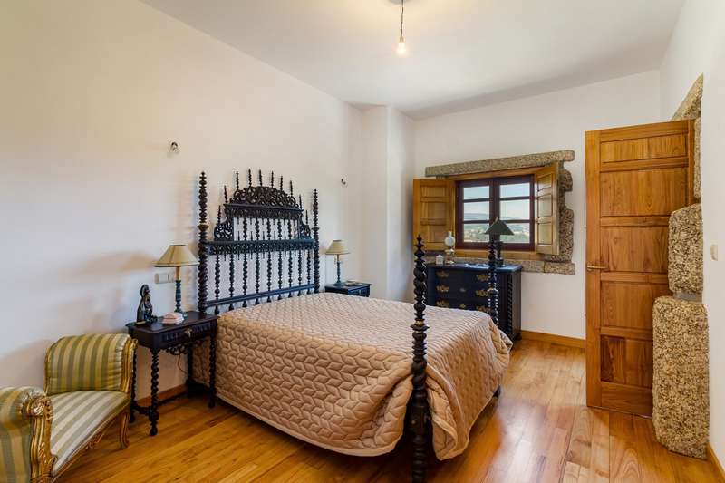 Magnificent farmhouse with 17th century house, for sale, in Cabeceiras de Basto, with about 5 hectares of land. Framed for rural tourism, farm events or for those looking for a historic residence to live. All the interior with restoration conditions preserving the finishes and architectural features of the time. The house is composed of two beautiful living rooms with fireplace overlooking the landscape, kitchen with wood oven, library, four bedrooms ensuite, one bathroom and two stone balconies with mountain views. Outside a charming environment completed by a vast plantation of olive groves, chestnut trees, vines, a variety of fruit trees and a water spring. Easy access to the A7, A11 and A3 freeways. 40 km from Gerês and the Alvão Park and 90 km from Francisco Sá Carneiro Airport. CHARACTERISTICS: Plot Area: 49 783 m2 | 535 860 sq ft Deployment Area: 453 m2 | 4 876 sq ft Building Area: 686 m2 | 7 384 sq ft Bedrooms: 4 Bathrooms: 5 Energy efficiency: E FEATURES: Farm Olive Grove Castanhal Orchard Vineyard Water Spring 5Ha