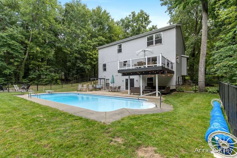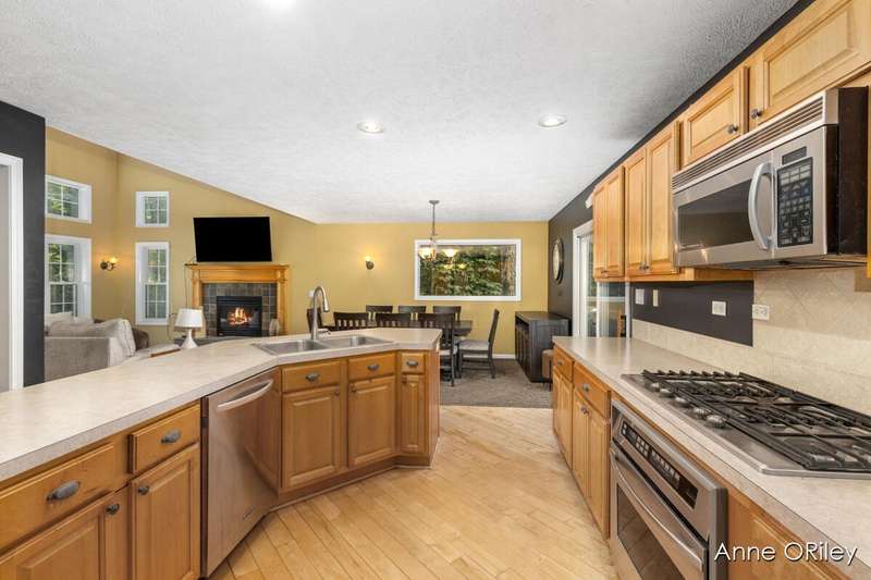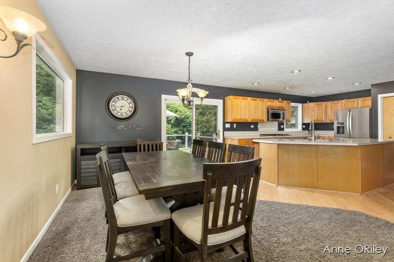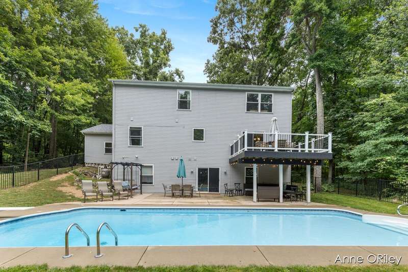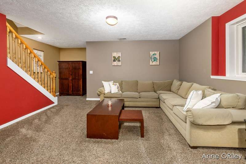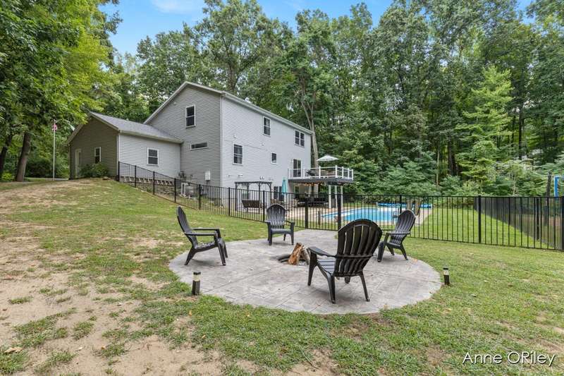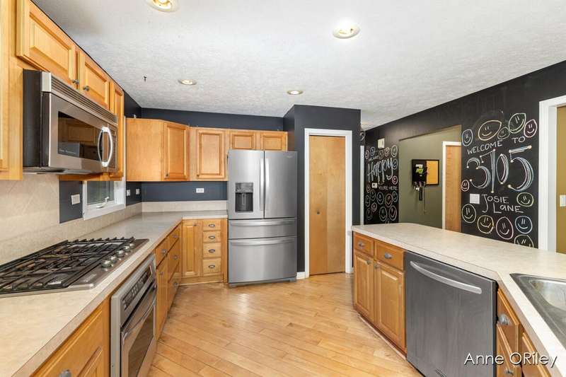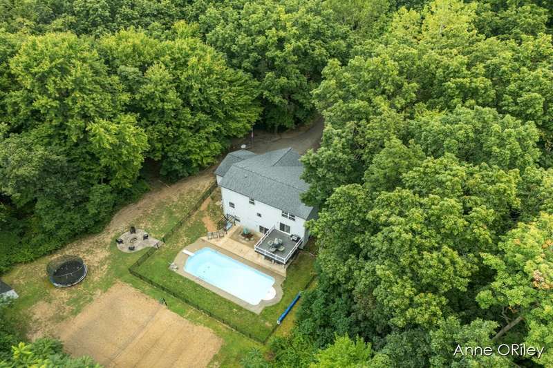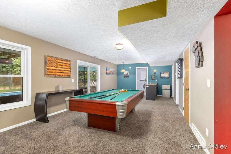 Welcome to your private retreat at 3705 Josie Ln, a home designed for both comfort and recreation. The main level features a convenient layout with a primary bedroom, 1.5 baths, and laundry room. The open concept living space includes a spacious kitchen with a center island, dining room, and a living room with a gas fireplace. Upstairs, a loft and two additional bedrooms, and full bath provide ample space, while the finished walk-out, lower level offers a family room, wet bar, full bathroom and a fourth bedroom. Step outside to an entertainer's paradise with a large patio, inground saltwater pool, concrete firepit, and a sand volleyball court. A 3-stall garage and storage shed provide plenty of storage.