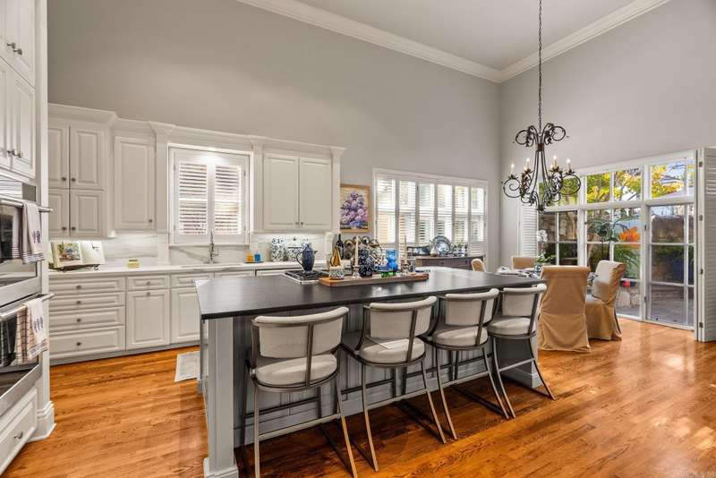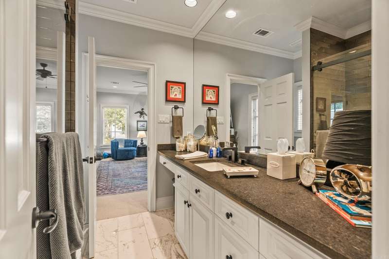Gorgeous New Heights listing! Outstanding home built in 1999 by Jack Hartsell with beautiful finishes. The open kitchen/den (with fireplace) area has french doors leading out to a darling patio & the two car garage. Golf cart pad behind the garage. The kitchen has high end appliances, cream custom cabinetry, drink fridge plus a subzero refrigerator and newer double ovens. There is a gorgeous oversized island (with storage & seating) that overlooks the den and a butler's pantry & food storage area right off of the kitchen. Formal dining room and living rooms. The nice sized primary bedroom is on the main level has double custom closets as you enter the bath. The bath has both a walk in shower & soaking tub with double vanities and water closet. Laundry room is on the main level. Upstairs is one bedroom that is ensuite while the other two bedrooms share a jack & jill bathroom. There is an office (or exercise room) upstairs with huge storage closet. The bedrooms are generous in size with very nice closets. The house has wonderful storage. This a easy living type house for those who like to travel. Beautiful hardwoods and light filled this is wonderful, move in ready Heights home!