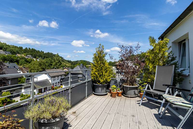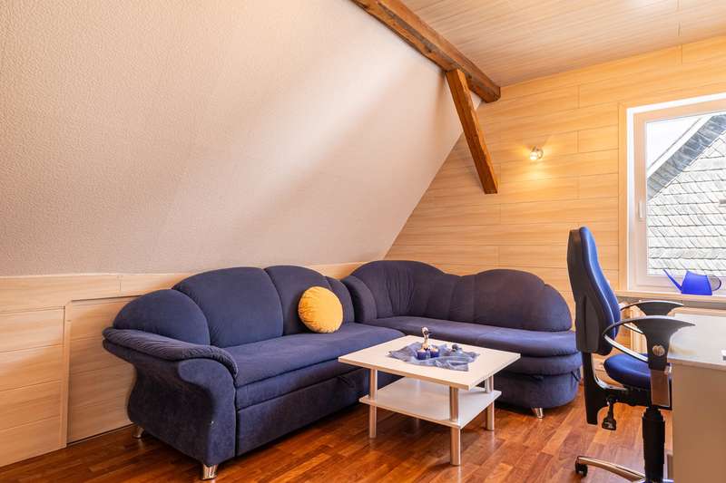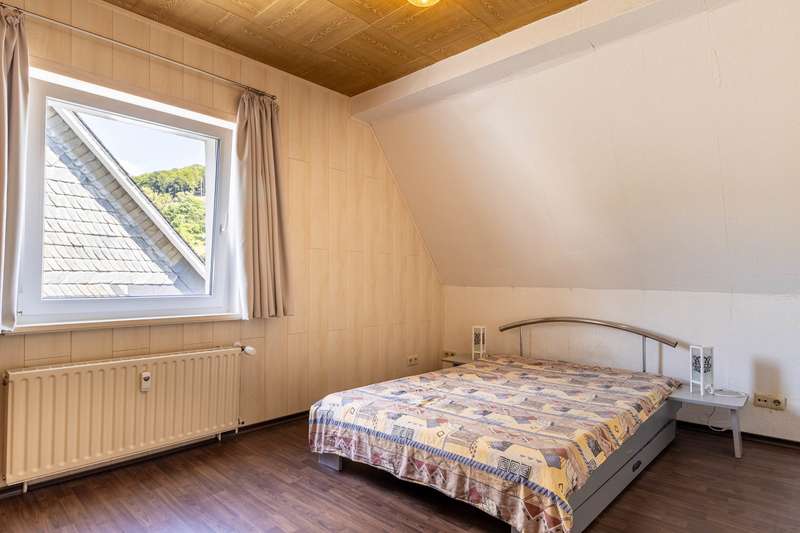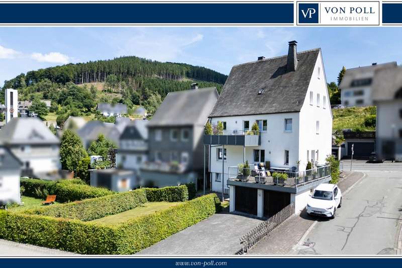 This well-kept two-family house is located on a spacious plot of around 573 m² in the idyllic district of Silbach. With a living space of approx. 169 m², the property offers enough space for families, multi-generational living or a combination of home ownership and rental. As part of a comprehensive modernization in 2011, the house was brought up to the standard of a KfW Efficiency House 100. Particularly noteworthy are the triple-glazed windows and the high-quality insulation of the exterior walls, which, together with the central heating system also installed in 2011, ensure outstanding energy efficiency. The pellet heating system not only provides sustainable and climate-friendly heat, but also scores points for its low operating costs and high efficiency. The house has two separate residential units: On the first floor there is a rented granny apartment with 3.5 rooms, which impresses with its practical layout. The associated terrace offers tenants additional space and privacy. The second, particularly spacious residential unit is located on the upper floor. The central living area with a wood-burning stove invites you to spend cozy hours and offers access to a balcony with a beautiful view. The sleeping area is cleverly separated by a custom-made wall unit with integrated dressing area. The large kitchen with dining area offers plenty of space for shared meals and social gatherings. The comfortable bathroom on this floor is equipped with both a bathtub and a separate shower, ensuring modern living comfort. The converted attic, which is considered usable space, offers two further bedrooms, a kitchen, a hobby room and a shower/WC. Additional storage space is available in the attic, which is currently used as a workroom. The house has a full basement, which, in addition to the double garage in the basement, offers further generous storage options and practical usable space. This attractive property in Winterberg-Silbach is ideal for families who value spacious living, energy efficiency and flexible usage concepts. See the benefits and special charm of this house for yourself - we look forward to receiving your inquiry and arranging a personal viewing appointment!