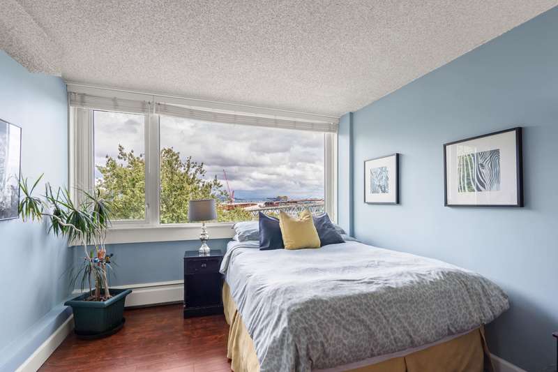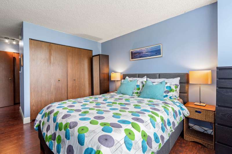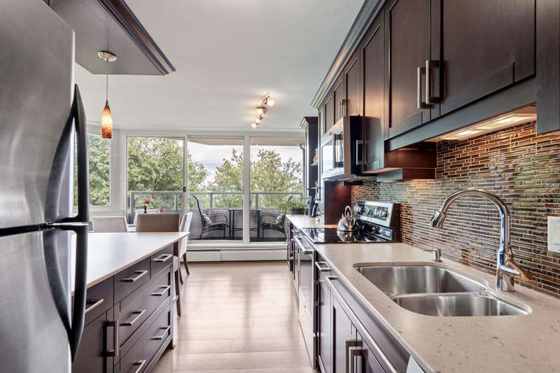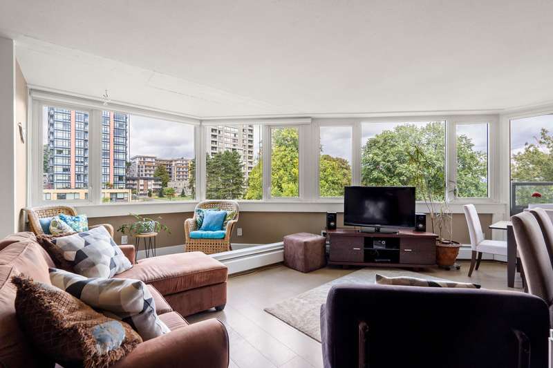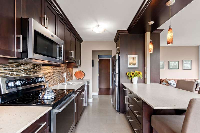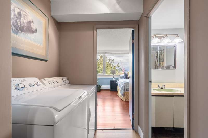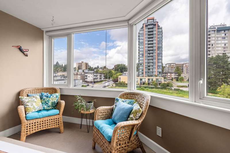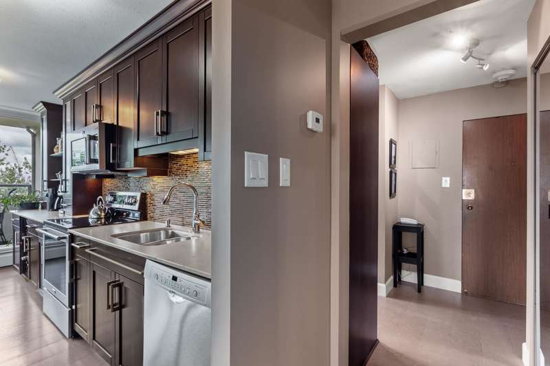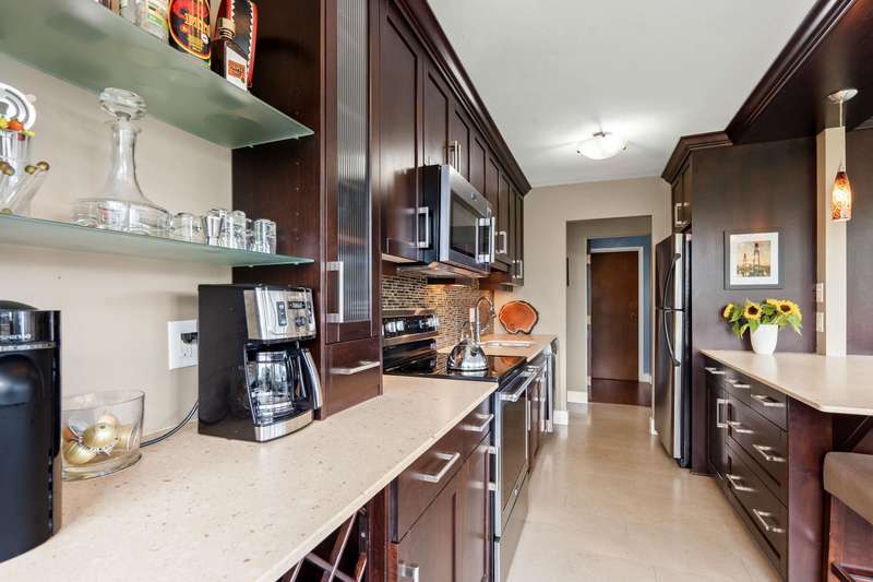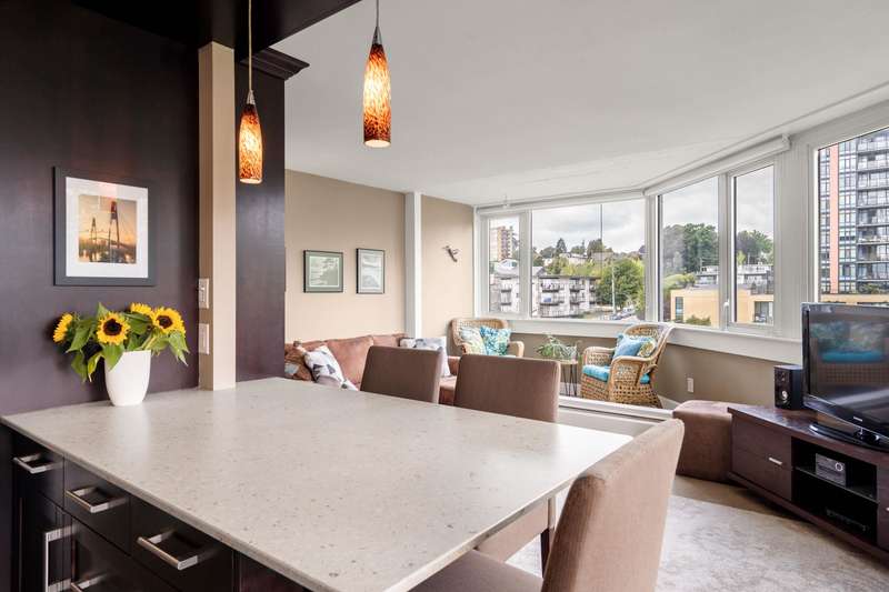 First comes the spell binding views from this top quality home. Many custom upgrades -wood cupboards, built-in china and other cabinets-top of the line products used-Sile Stone Yellow Nile Counter Tops - Torely Cork Flooring - the list goes on - Plus this 8th floor home is move in ready! The concrete construction throughout the building and conscientious Strata care all add up to a well maintained quiet Building. So close to transportation - schooling-shopping - skytrain - easy access to new bridge connecting Surrey and points East. This home will last a lifetime and provide the home you will enjoy in comfort. Additionally, there are the 2 secured parking places. Call today to view it all before it is "All Gone"!