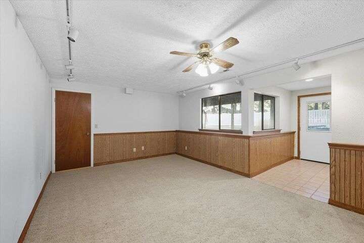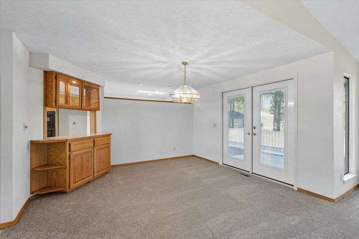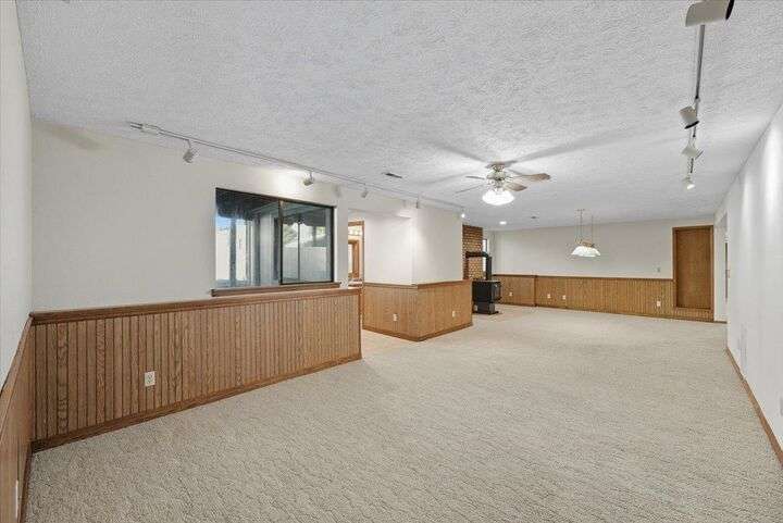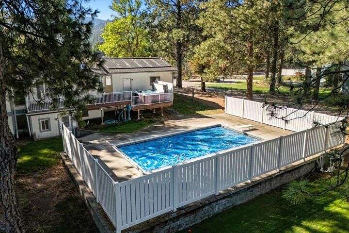 Daylight Walkout Rancher on .90 Acre Lot in Ponderosa! This well-maintained 3,104 sq. ft. home offers 4 bedrooms, 4 bathrooms, and flexible living space. The main floor features vaulted ceilings, skylights, and a cozy fireplace, while the daylight basement includes an EPA-certified pellet stove, spacious rec room, outside entrance to pool. Updates include new paint and carpet on the main floor (2025), newer furnace w/ Halo purification (2023), and newer water heater. The kitchen offers a newer microwave and oven, a butcher block island, and pull-out drawers. Main floor utilities, whole-home water filtration w/ softener, central vac w/ car detail pkg, and oversized insulated 2-car garage w/ man door and workbench add convenience. Outside, enjoy a newer hot tub, energy-efficient pool w/ solar heating, fenced yard w/ partial sprinklers, south-facing views and privacy, and room to build a huge shop or adu. Gravel drive access to the back of property. Prime location near schools, parks, and amenities.