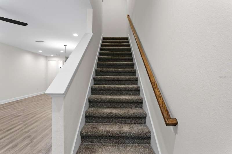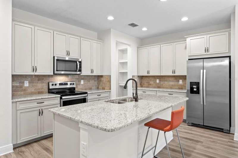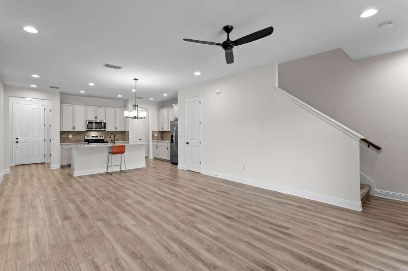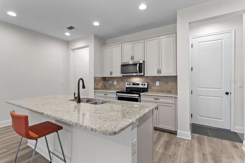 Beautiful move-in ready townhome for sale in Tampa’s desirable Citrus Park area! Located in the gated Lakeview at Citrus Park community, this 2019-built Ormond floor plan offers nearly 2,000 square feet of modern, low-maintenance living. This 3-bedroom, 2.5-bath townhome features an open-concept layout with a bright eat-in kitchen, stainless steel appliances, walk-in pantry, and a screened lanai overlooking a private backyard. The first floor also includes a convenient powder room and a 1-car garage. Upstairs, the spacious owner’s suite includes a custom walk-in closet, dual-sink vanity, walk-in shower, and linen closet. Two additional bedrooms—each with walk-in closets—share a versatile loft space and laundry area (washer and dryer included). Custom California shutters throughout add a stylish finishing touch. Enjoy the Florida lifestyle with community amenities including a boardwalk, lake access with dock, kayak storage, picnic area, and playground. Lakeview’s prime Tampa Bay location offers easy access to Westchase, Tampa International Airport, Raymond James Stadium, Downtown Tampa, shopping, dining, golf, and the beautiful Gulf Coast beaches. Experience gated community living with modern design and unbeatable convenience in this Tampa townhome for sale near the Florida Gulf Coast!