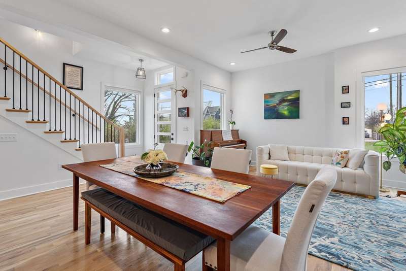 This impeccably maintained East Nashville home offers modern living just steps from the city's best dining, shops, and amenities. The open-concept main floor features a designer kitchen with quartz countertops, gas range, walk-in pantry, and generous storage, plus a drop zone, powder room, and attached two-car garage.Upstairs, the primary suite includes a spa-like bath and walk-in closet. Two additional bedrooms share a Jack-and-Jill bath, and a laundry room is conveniently nearby. The third floor offers a versatile flex space (4th bed/office/playroom) and large storage area. Enjoy skyline views from the back deck.Smart home features include Blink doorbells, smart thermostats, dual-zone HVAC, tankless water heater, EV charger, and Amazon wiring. Walkable to Fox Bar, Nicoletto's, Grimey's, Hola Yoga, and more-plus essentials within a mile.