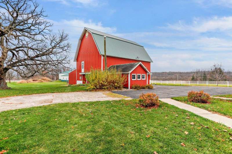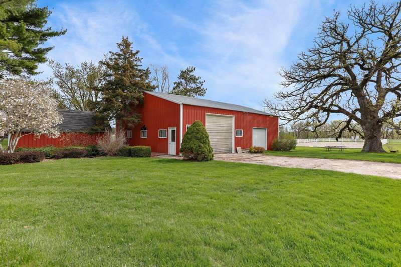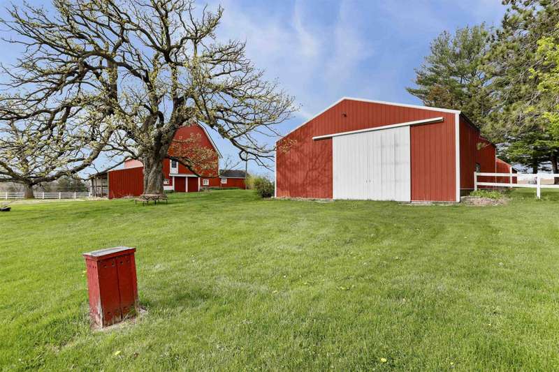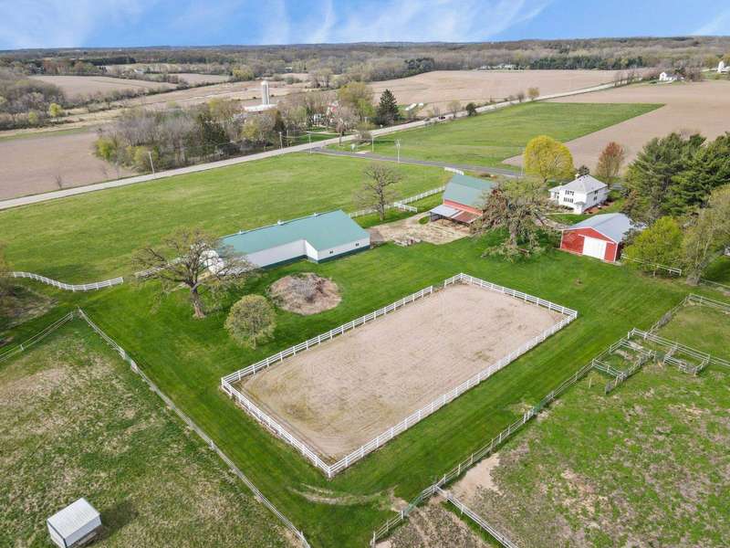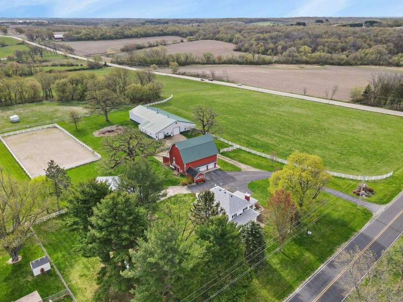 Step into the countryside & discover this exceptional 41+ acre horse farm nestled between Oregon & McFarland! This property offers a unique opportunity for equestrian enthusiasts and outdoor lovers alike with the centerpiece being a 5-bdrm home bursting with character & comfort. Inside you'll find multiple living areas, an updated kitchen, gas stove, & timeless wood accents. Beyond the home live multiple outbuildings including a barn w/ a milk house & garage, pole barn with well-equipped horse stables & tack rm, heated workshop, add?l storage shed, & more. The land itself is a picturesque blend of pastures, open fields, & wooded areas - including 7 gorgeous heritage Oak trees! With ample space for equestrian & hobby needs, this expansive property is a rare find! New septic system in 2025!