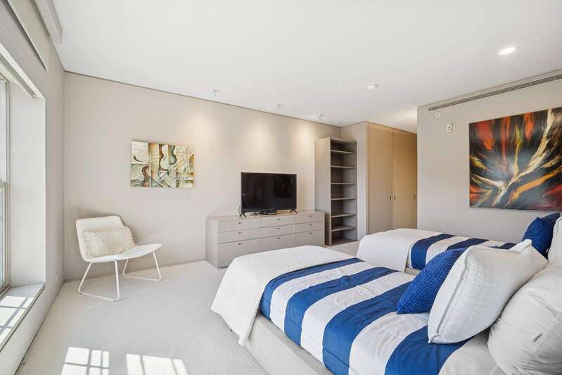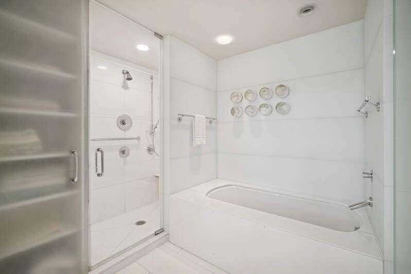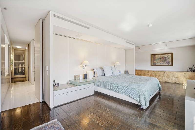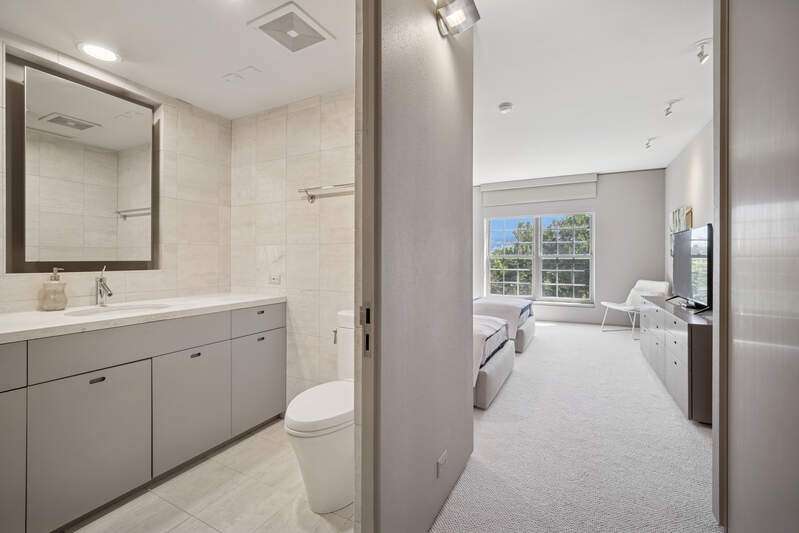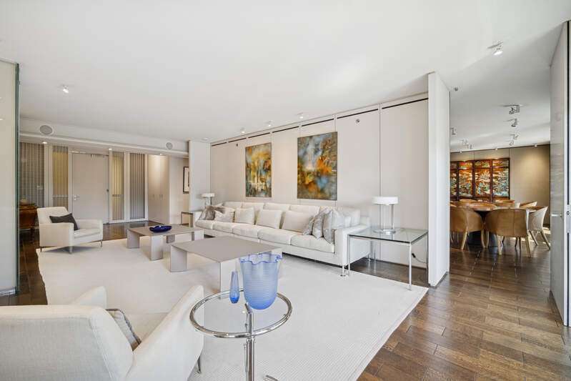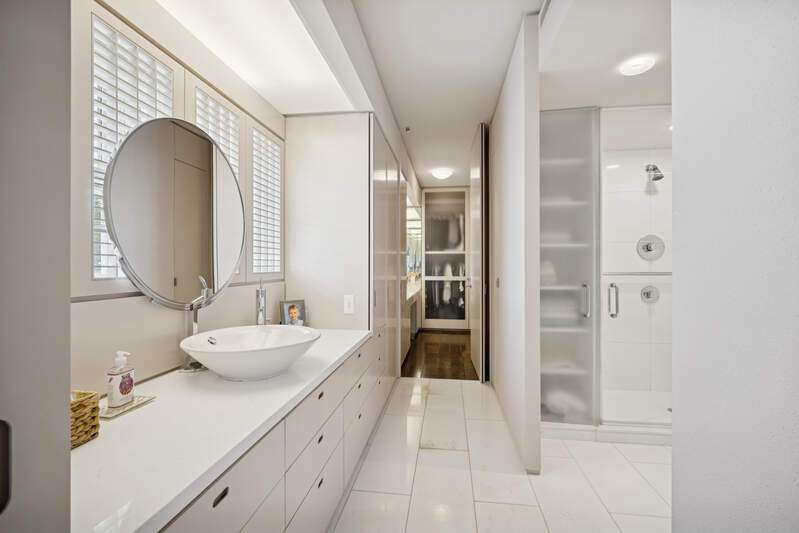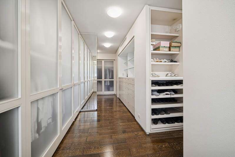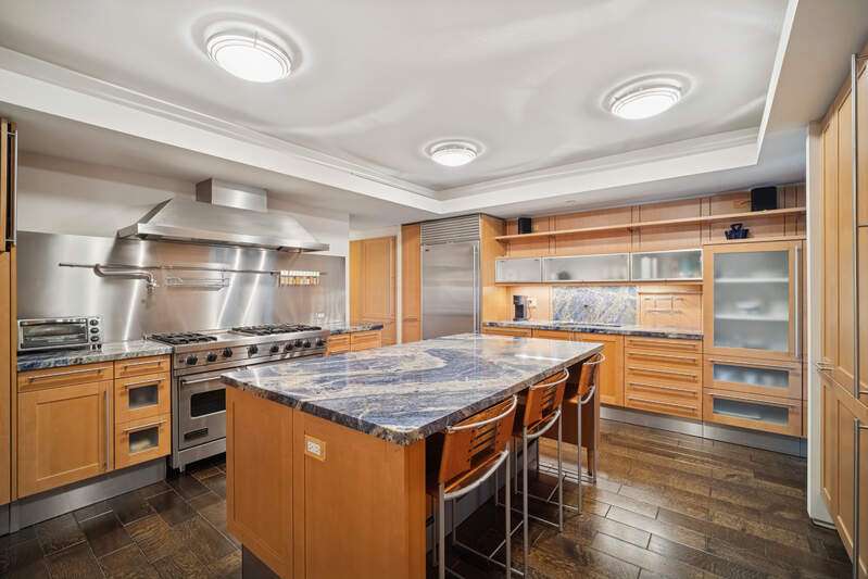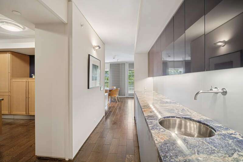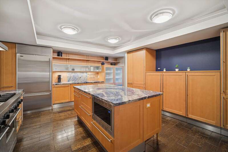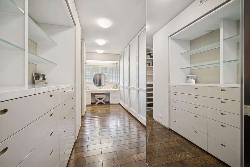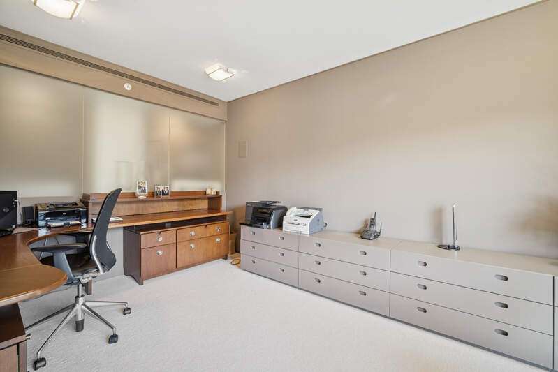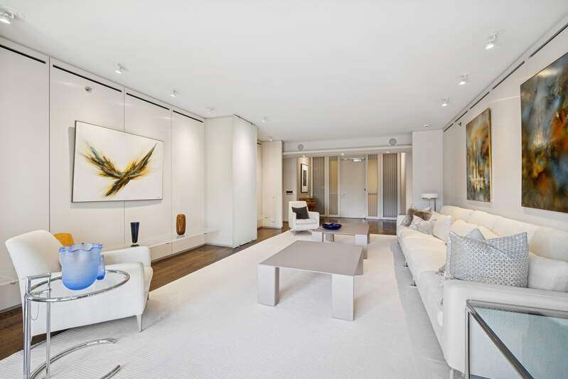 Simply striking & palatial condo ripped right from the pages of Architectural Digest located in-town just blocks from Lake Michigan in one of Highland Park's most prestigious concierge buildings. Designed by renowned architects Powel/Kleinschmidt this unique and timeless unit is like living inside of a masterpiece. A grand foyer leads into the sunny & sleek living room featuring floating frosted glass shelving, strategic track lighting designed to highlight beautiful works of art and a sliding glass door to one of two stone balconies. The Chef's De Giulio designed eat-in kitchen is a work of art featuring a 48" Viking SS range & double oven w/ professional grade hood & convenient pot filler, enormous granite work island with overhang for stool seating, two side-by-side Sub Zero fridge/freezers (one SS, one cabinet integrated), Miele dishwasher, pull out shelving, under cabinet & cove lighting, and display shelves. The 12' long granite butler's pantry between the kitchen & formal dining room operates as a wet bar with its own Fisher Paykel dishwasher, Sub Zero mini fridge, wine fridge and ice maker for easy entertaining. The dining room features sophisticated floating buffet cabinetry w/ natural stone tops for storage, serving, displaying. A dramatic & symmetrical gallery style hallway leads to the primary bedroom suite and is quintessential luxury. Designed to accommodate "Him & Her" in every way, the large bedroom has built-in burlwood cabinetry, an MTV Cribs worth dressing room for "Her" (just under 200 sqft) w/ built-in dressers, shoe shelving, translucent glass door hanging wardrobes, frosted display shelving, and a lovely make-up vanity with natural lighting. "Her" bath has a white marble glass enclosed shower, soaking tub & private lav room with bidet, plus "His" separate WIC and handsome marble full bath. The two secondary bedrooms each have their own beautiful natural stone private baths & exceptional closet space & built-in dressers. Casual entertainment takes place in the stylish family room with gorgeous wood paneled walls, built-in media center and slider to the 2nd stone balcony. Working is a breeze in the big & bright office with serene treetop views, and playtime is easy in the adorable playroom featuring playful & colorful built-ins. The laundry/mud room is home to the extra Sub-Zero fridge/freezer for storage/overflow, full sized Neptune front load W/D with tremendous counterspace for folding, prepping, etc. Multiple in-unit storage rooms means no need to downsize here, plus additional storage space in the garage near the unit's 3 indoor garage parking spots. Additional features include beautiful hardwood flooring, custom paneled walls T/O, zoned HVAC (3 units), on-site concierge from 7am-10pm 7 days a week including holidays, access to the building exercise room, conveniently close to shopping, recreation, transportation, Ravinia and so much more. Lovingly maintained and upgraded, you will not find an equal to this unique & stunning unit. Seller would prefer to sell furnished as much of the furniture was custom designed.