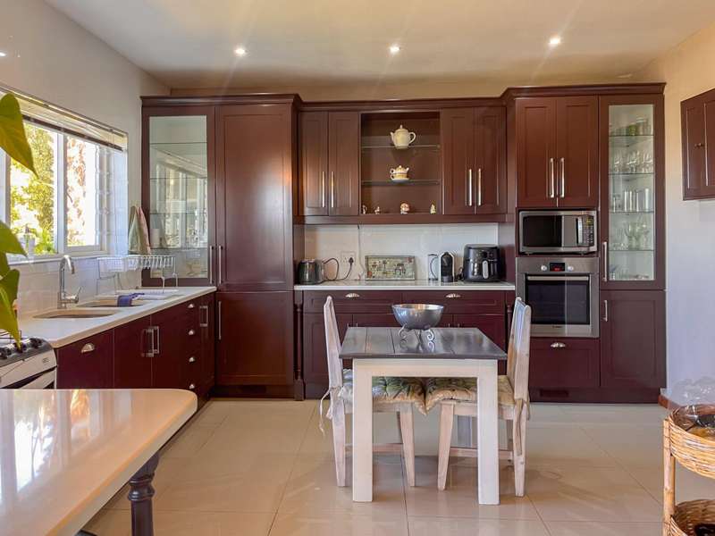 This beautifully maintained family home is designed for comfort, style, and easy entertaining. The open-plan living and dining area welcomes you with stunning lagoon views and flows seamlessly into a modern kitchen and separate scullery, which leads out to a covered entertainment stoep complete with a built-in braai ?Çö perfect for gatherings with family and friends. All the bedrooms are conveniently situated down a short passage from the main living area. Two well-sized bedrooms with built-in cupboards share a spacious family bathroom, while the main bedroom offers a luxurious retreat with a full en-suite bathroom and an additional versatile room that can be used as a study, nursery, or dressing area. This home truly combines functionality, space, and family-friendly living.