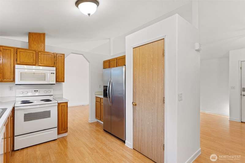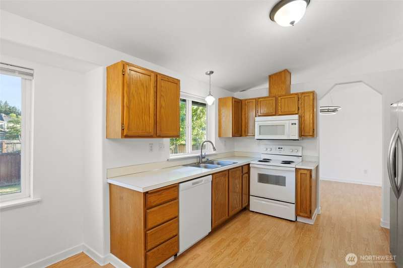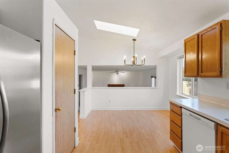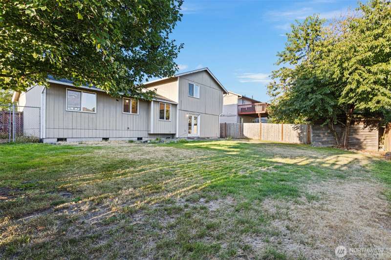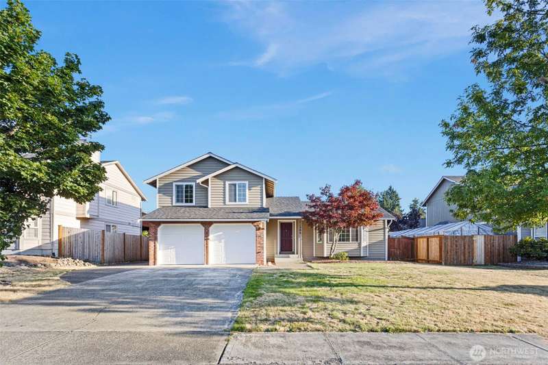 Welcome to a home that feels just right from the moment you walk inside- in Kempton Woods. This move in ready tri-level offers plenty of room for all with 3 beds, 2.5 baths, and two spacious living areas with formal dining. Soaring ceilings, abundance of natural light and thoughtful layout strike the perfect balance between togetherness and privacy. Family Room w/ Fireplace has French Doors that open to the Large Fully Fenced Back Yard w/ Patio, Dog Run, Small Sports Court Area & Shed. New interior paint, New carpet, New roof, new furnace. 2 Car Attached Garage plus RV Parking. Within a mile of Walking Trails and the Fred Meyer Shopping Center. This home has space and warmth to make every day special.