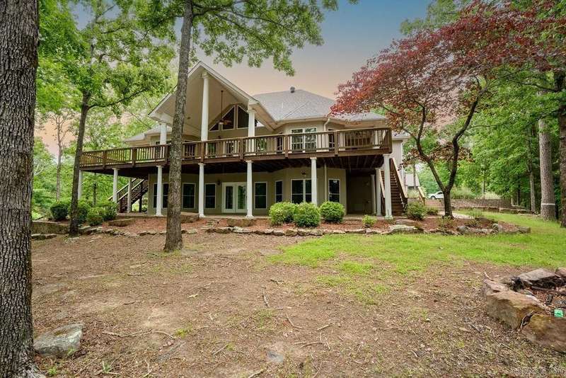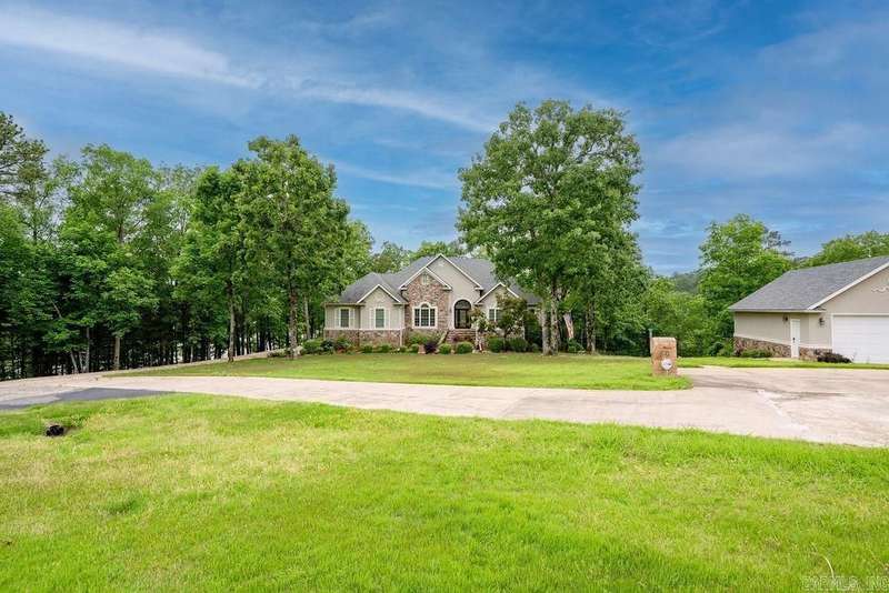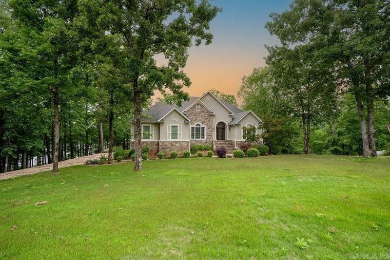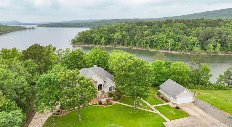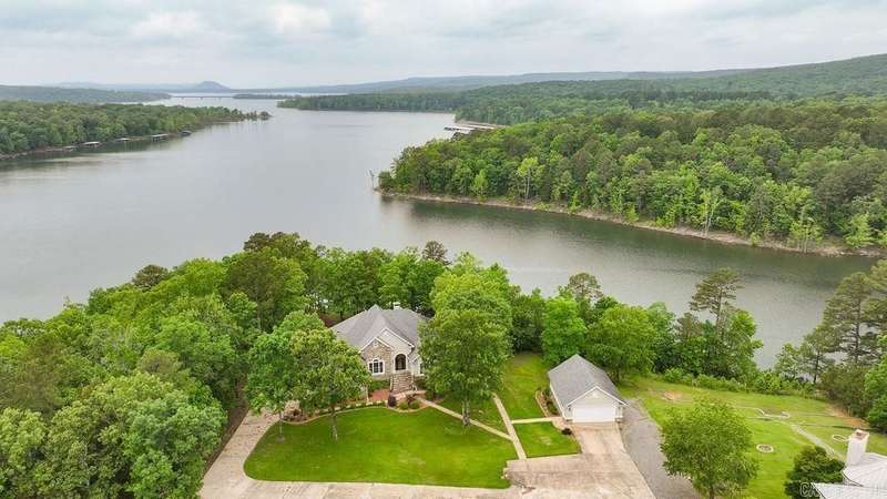 Stunning Lakefront Home in Hawks Pointe! This beautiful lakefront home sits at the point of Hawks Pointe Subdivision, offering a 180-degree water view. Enjoy a low-maintenance exterior, covered deck, and a manicured lawn with an extra lot. The main level features a Master Suite & second bedroom, while the lower level includes a third bedroom, safe room, bonus/game room, and wet bar. A rock path leads to the lake, perfect for enjoying the outdoors. Additional perks include a circle drive, attached two-car garage, and detached garage. Resealed decks (2016). Don???t miss this rare lakefront retreat!