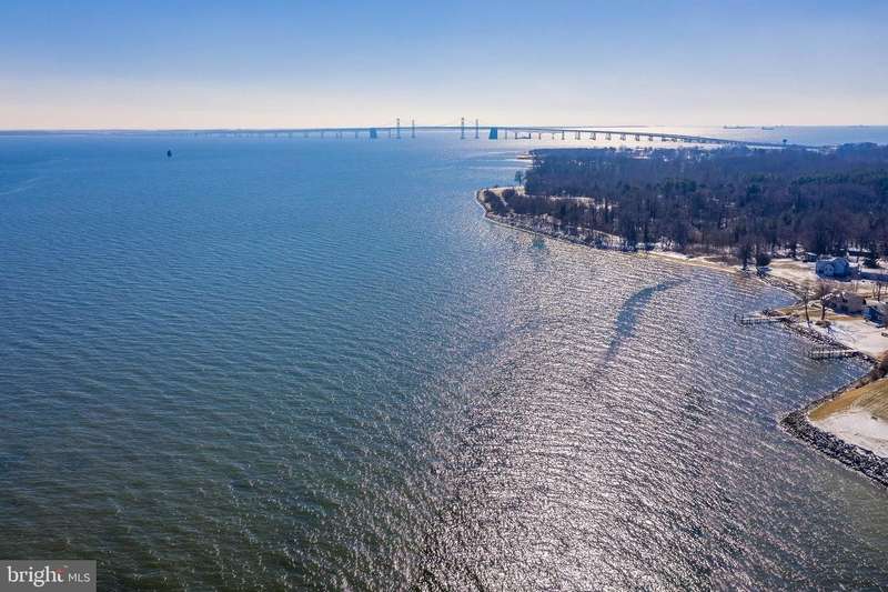 This rarely offered Chesapeake Bay waterfront site is 3.87 acres , and is one of 5 that were available, with two being waterfront. The original site dates to the early part of the last century when there was no Bay Bridge to visit the Eastern Shore, so vacationers bathed on the bay. These lots were the site of the original Log Inn, where people came to vacation. The original stone chimneys still remain. This is an interesting site with many possibilities. Do not walk the property without an agent. It is heavily treed without any clearing or paths. You are responsible for any mishaps. The lot is currently being surveyed , the 200 feet is not correct, but I had to complete the field. The lot is under contract with an extension while the sellers handle a legal issue