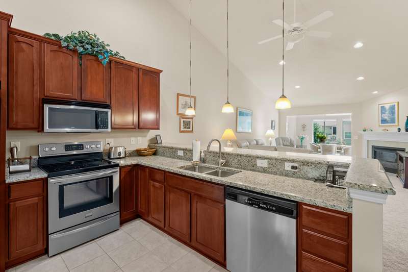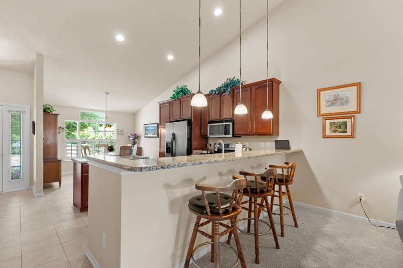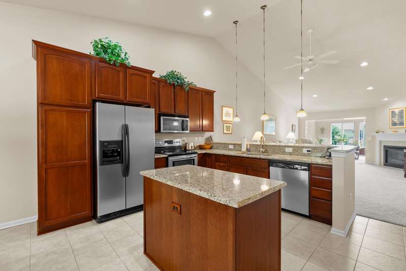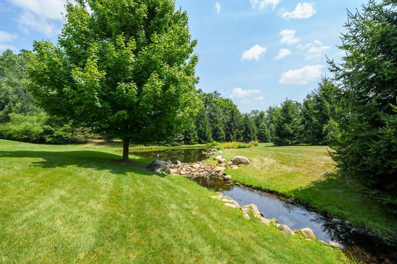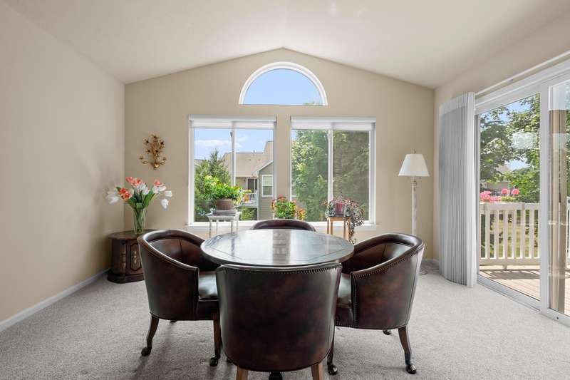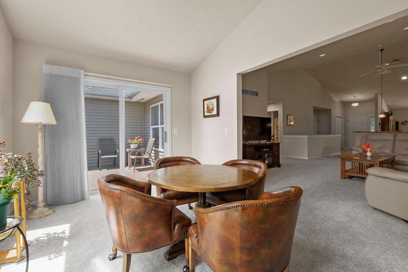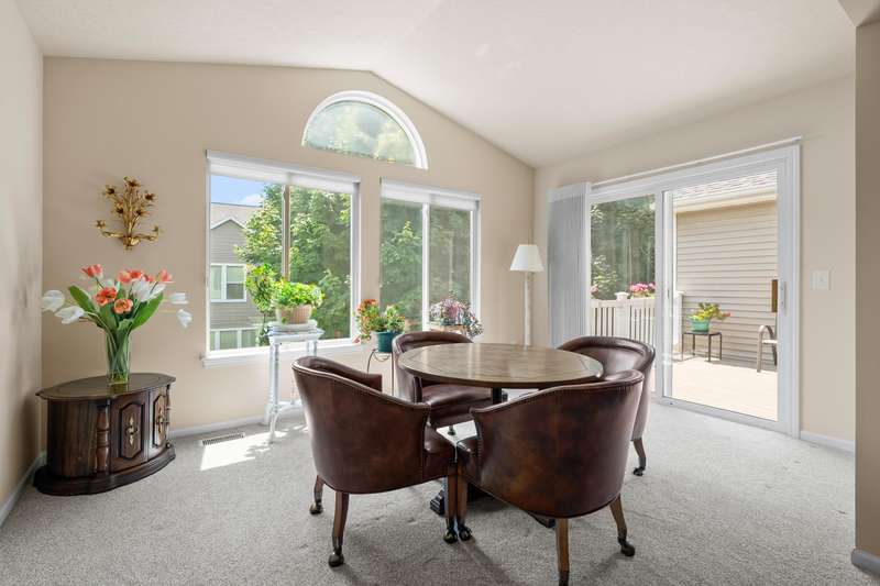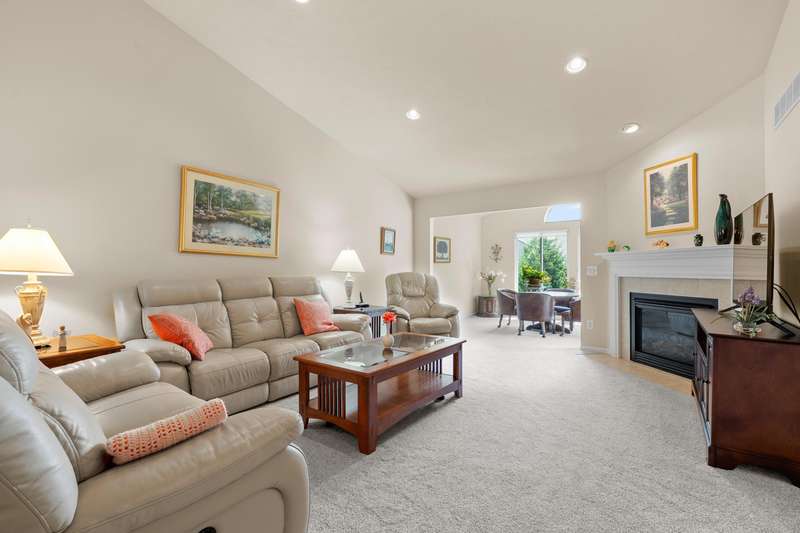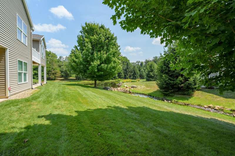 A lovely AVB built Oakland Hills condo with a hard-to-find beautiful open kitchen! Enjoy the convenience of condo living with no yard work or snow removal in this lovely home. Granite countertops, SS appliances, Center island and pendant lighting. Gather friends and family in the large dining area with many windows creating a light and bright space to enjoy. The kitchen flows gracefully into the living room with vaulted ceilings and a fireplace. French doors lead to the spacious office. A beautiful back yard with stream flowing through it can be enjoyed in the sunroom or on the composite deck off of the sunroom. The primary bedroom is spacious with a tray ceiling, full bath and walk in closet. A second full bath and main floor laundry complete this level. The lower level walk out The lower level walk out has a large family room with slider to the patio, a second bedroom and full bath and large storage area. New Carpet throughout the main level. New water heater. The pool and the clubhouse are fabulous amenities for you to appreciate and within walking distance. Schedule to see this home today!