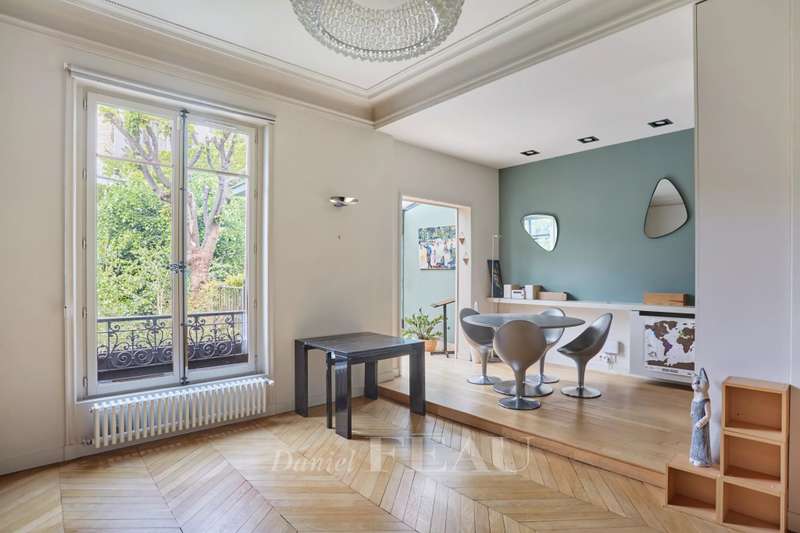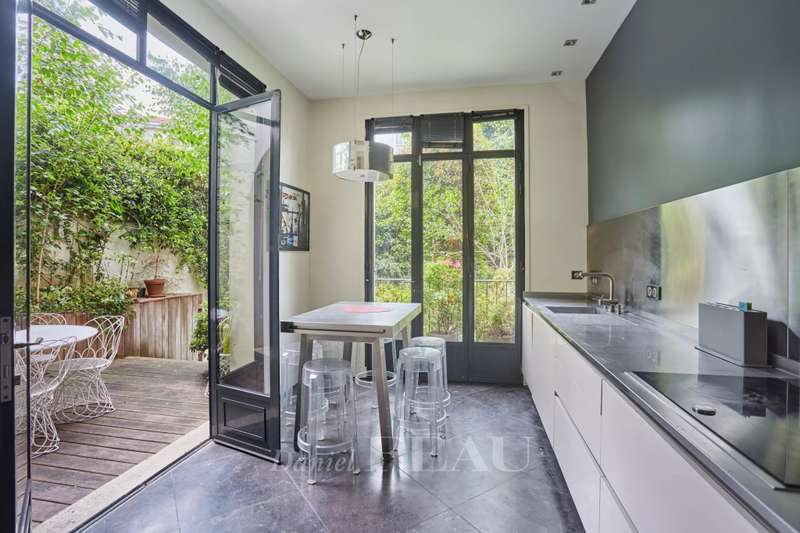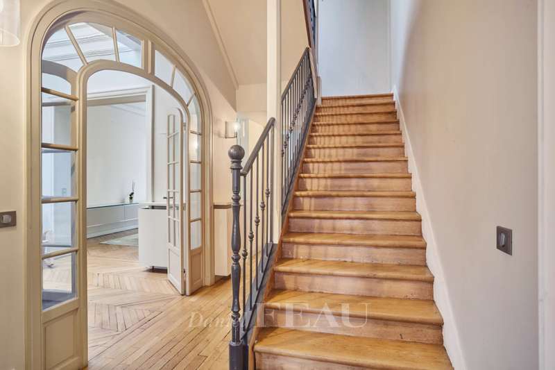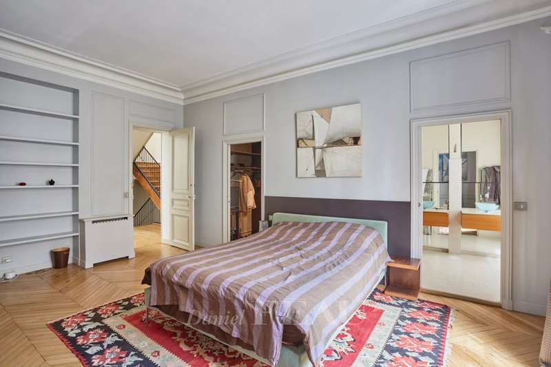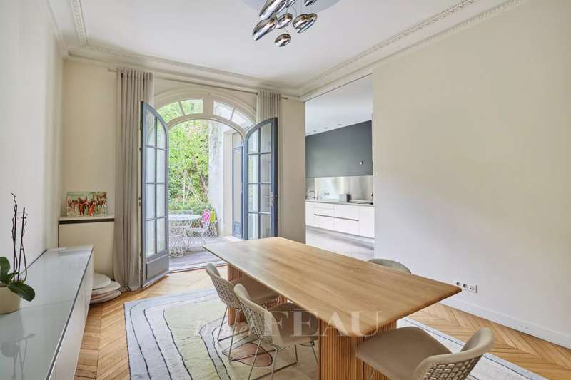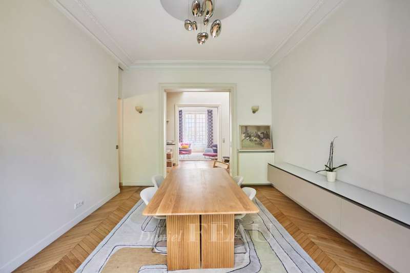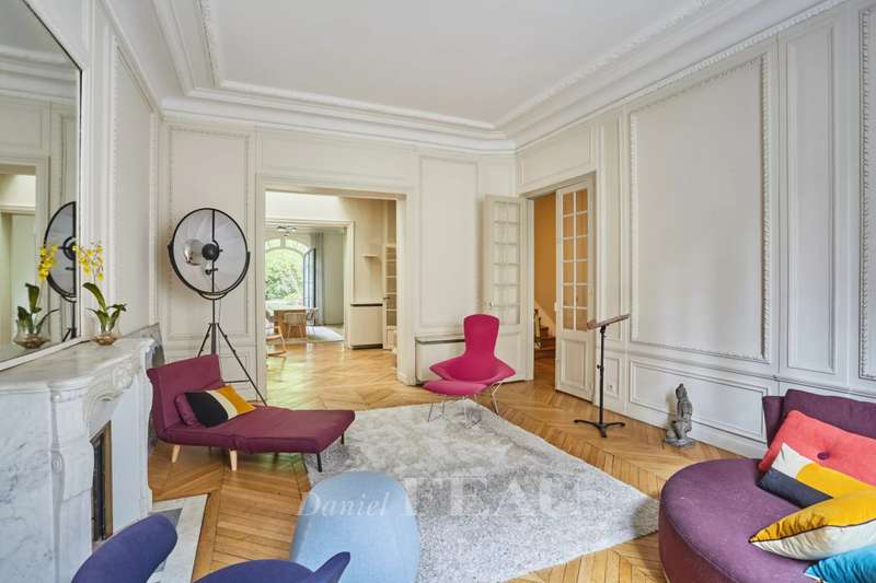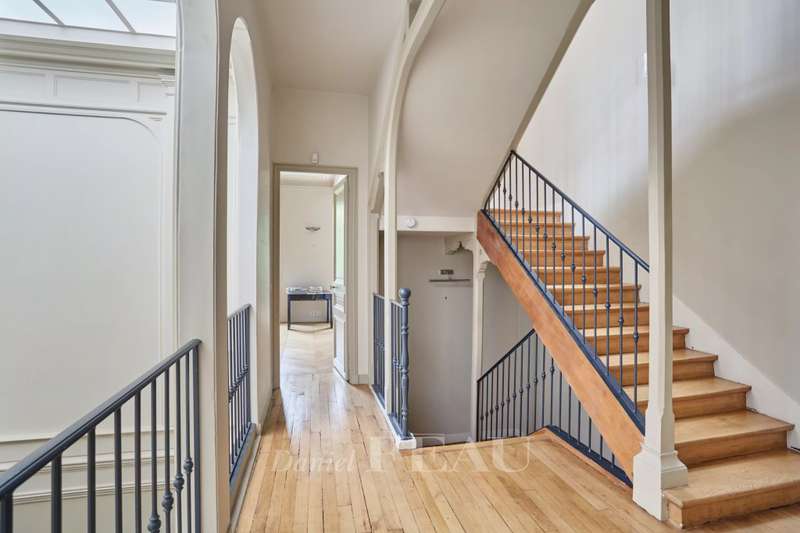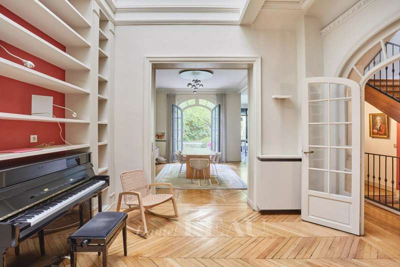 Pereire neighbourhood. This private mansion dating from the 1880s is in a convenient location near the shops and the schools. The raised ground floor includes a living/reception room, a drawing room, a dining room opening onto a terrace and garden, a fitted semi open-plan kitchen, and a wc. Upstairs are a master suite with a shower room and dressing room, and a bedroom accessing a terrace. The second floor comprises a bedroom, a bath/shower room, and a further bedroom with a bathroom. A fifth and sixth bedroom and a shower room are on the top floor. The basement comprises a recreation room, a home cinema, a fitness room with a sauna, a shower room and a utility room. All floors have a wc.