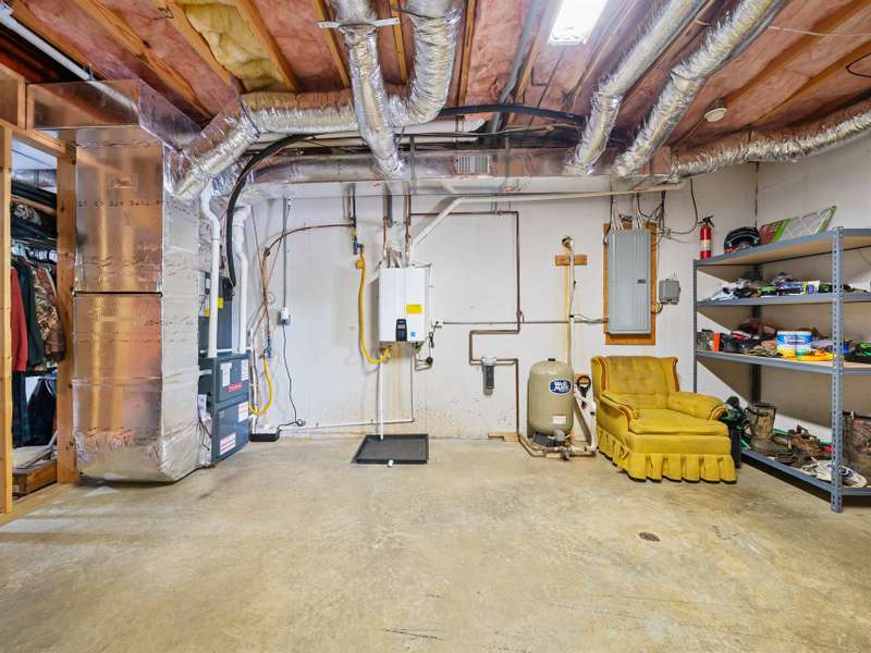 Recently Renovated brick one level has everything needed with its spacious 2480 sf: Split BR layout (with sound barrier walls), lg bonus/office room off open concept kitchen & great room with gas fireplace & laundry room. Enter from spacious 2 car garage with less than a foot to step up into the home. Additional 1 car garage space in basement to store additional vehicle, ATV/ boat with the 11' ceiling height within the basement level which has numerous electrical outlets, plumbed lines for a kitchen and a completed full bath. Basement could be easily finished out with sheetrock, ceiling and floor covering to create a 2nd living quarters for multi-generation cohabitation (already has a separate access through the lower paved driveway which comes right up to the lower one car garage.) Note: Recent renovations include: new roof, new HVAC, added Tankless Water Heater and newly refinished hardwood floors and new carpet.