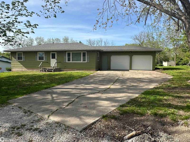 Welcome to this delightful 3-bedroom, 1-bath (half bath in basement) ranch-style home nestled in a quiet, established neighborhood. Boasting classic curb appeal with its sage green exterior and mature trees, this home offers both comfort and functionality for first-time buyers, downsizers, or investors alike. Step inside to a bright and inviting living space with large front-facing windows that flood the room with natural light. The functional kitchen and adjoining dining area offer ample space for family meals and gatherings. Three bedrooms provide flexibility for guest rooms, office space, or hobbies. Outside, enjoy a spacious front yard and an expansive driveway leading to a two-car attached garage perfect for parking, storage, or a workshop. The level backyard offers plenty of potential for gardening, entertaining, or future improvements. Located close to Graceland University this home combines small-town charm with everyday convenience. With a bit of TLC, this solid home is ready for your personal touch!
