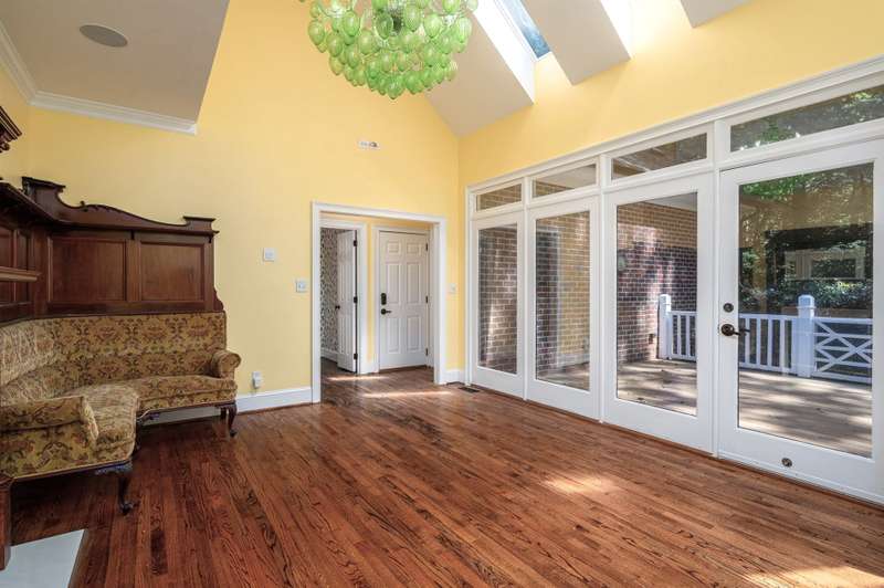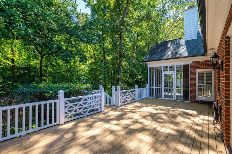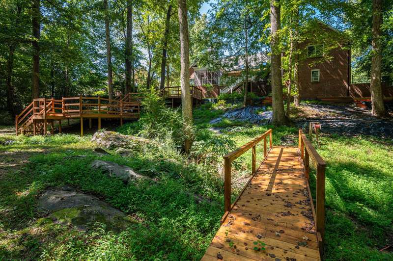 Spacious home with AMAZING backyard located in the desirable Gaston Country Club area! The outdoor living space is one of a kind with a huge .95 acre private yard that has a creek, bridges and plenty of room for play and entertaining. Relax on the multi-tier decks and enjoy the beautiful peaceful views. Inside you will find over 4000 sq ft of spacious rooms and abundant storage. The main level features a formal living room with fireplace that would make the perfect home office, large formal dining room with fireplace and the primary suite also has a fireplace, private screened porch, large walk in closet and en suite with a stunning walk in shower and space for a stand alone tub or additional vanity storage. The kitchen has an island, walk in pantry, double ovens and a large breakfast area or keeping room with fireplace. Just off the kitchen there is an extra large bonus room perfect for a play or media room. The laundry room has a sink and a laundry shoot from upstairs. There are also 2 half baths on the main level for guest when entertaining. The upper level offers 3 generous bedrooms with new hardwood flooring, lots of closet & attic space and 2 spacious bathrooms. The garage is set as a man cave with split unit heating & cooling and a private office or workshop. With the large private lot and adventurous back yard its incredible that you are also in a wonderful neighborhood that is just minutes to everything - Harris Teeter, Gaston Country Club and Southampton Racquet & Swim Club are all just down the street. Easy access to shopping, restaurants and I85. You must see this one!