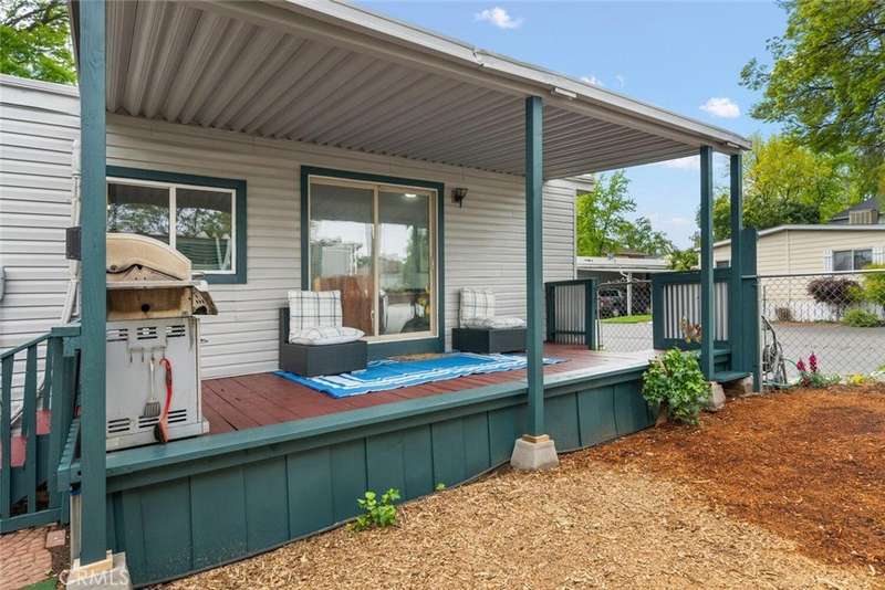 Welcome to this beautifully updated 4-bedroom, 2-bathroom mobile home located in a peaceful and dog-friendly park in Chico, CA. This home has been thoughtfully designed with modern features that make it both comfortable and energy-efficient. As you step inside, you'll immediately notice the gorgeous new waterproof vinyl flooring, offering both durability and easy maintenance. The home is equipped with dual-panel windows, while the kitchen has updated plumbing and a new gas shut-off. The New Gree mini-split cooling and heating system ensures low electricity bills while keeping you cool in the summer and warm in the winter. The custom kitchen and primary bathroom countertops, crafted from sleek epoxy, add a touch of elegance to the space. While the hall bathroom boasts a new, beautiful vanity and gorgeous mirror. The spacious kitchen is complete with high-quality appliances. You'll find two bathrooms, a dedicated laundry room, and a new gas hot water heater. The home has been updated with a 10-year warranty polyurethane foam roof, installed in September of 2023, for added durability and peace of mind. The master bedroom features a generous walk-in closet, and there's also a cozy office nook—ideal for remote work, study, or a quiet space to unwind. Freshly painted inside and out, this home offers a clean, modern look that’s both inviting and stylish. The new lighting fixtures add to the home’s ambiance, creating a warm and welcoming atmosphere throughout. Outside, you’ll find a carport, a convenient storage shed, and a fully fenced yard, perfect for your pets and added privacy. The large covered patio is ideal for relaxing or entertaining, providing a great outdoor space. Additional features include electrical updates for safety and efficiency, as well as an irrigation system to keep the landscaping low-maintenance and water-efficient. Just around the corner from the community clubhouse and pool, this home truly offers a perfect blend of comfort, convenience, and style, making it an ideal place to call home. Don’t miss the opportunity to experience all that this wonderful mobile home has to offer – schedule a showing today!