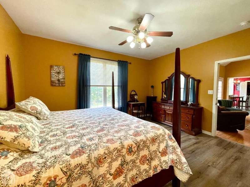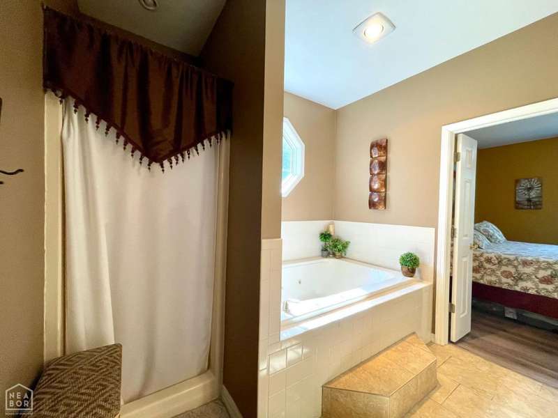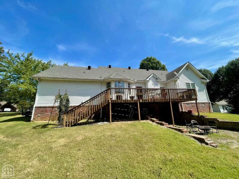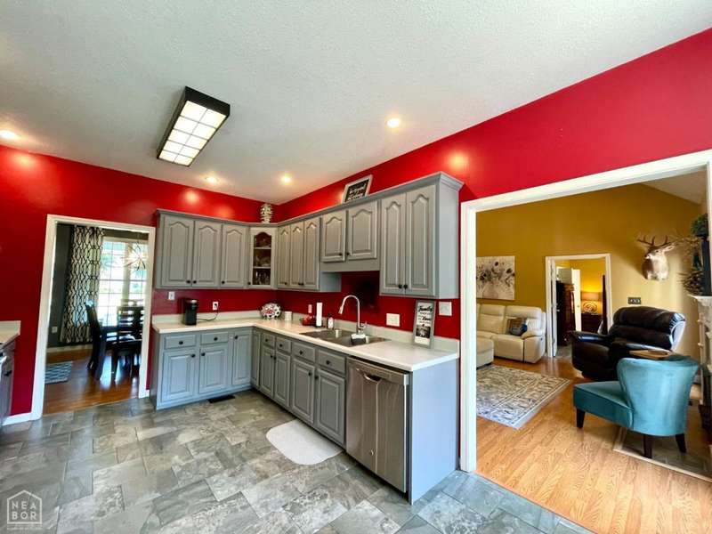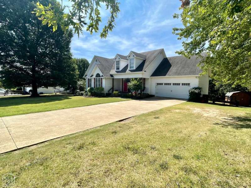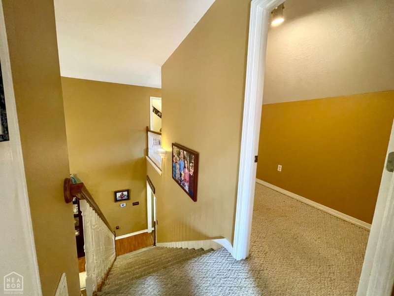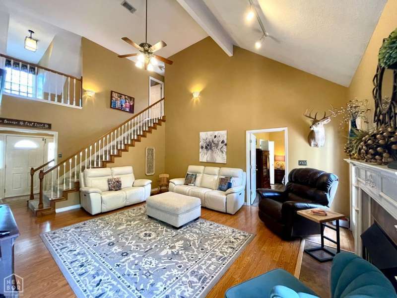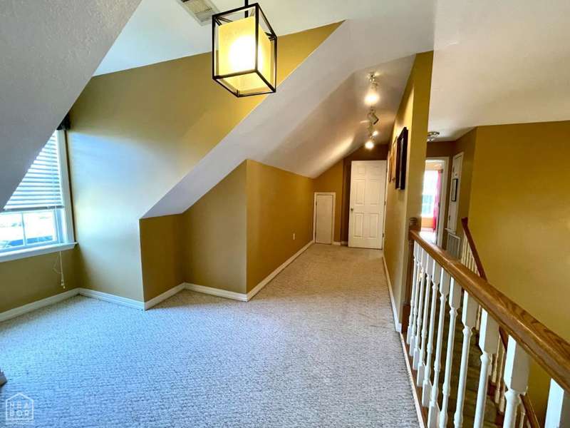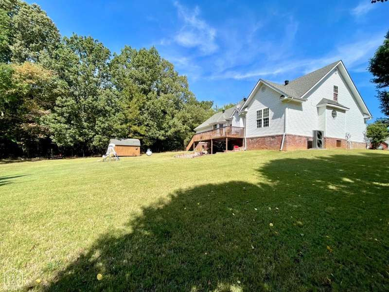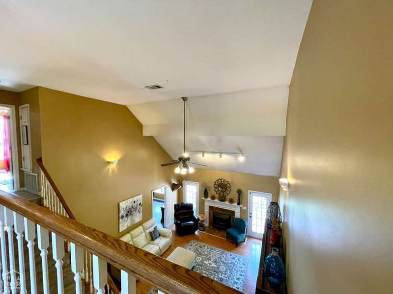 Cul-de-sac Location in Country Lake Estates! This 4 bedroom, 2 bathroom country charmer is located on .95 of an acre, and enjoys a nice level of privacy. Roof only 6 years old. New Central Heat/Air 2 months ago. New micro-hood and dishwasher this summer. A 30' cathedral ceiling, gas log fireplace and balcony make the living space so enjoyable. The Primary Suite overlooks the backyard and has a step in shower, large jet tub and extra storage in the double vanity. The bedrooms are split front to back and the 2 extra rooms on the main level share a private hallway and bathroom. The spacious 4th bedroom is upstairs along with an additional room perfect for office or play area. The landing area offers useful space for reading/games. The unfinished basement area has been used as a tornado shelter and as workshop space. Enjoy extra storage with the 10x16 lofted storage building. Imagine coming home from work to your piece of quiet living in Country Lake Estates. The subdivision has recently been repaved, and is located within Valley View School District.