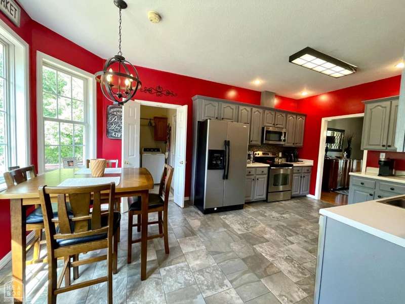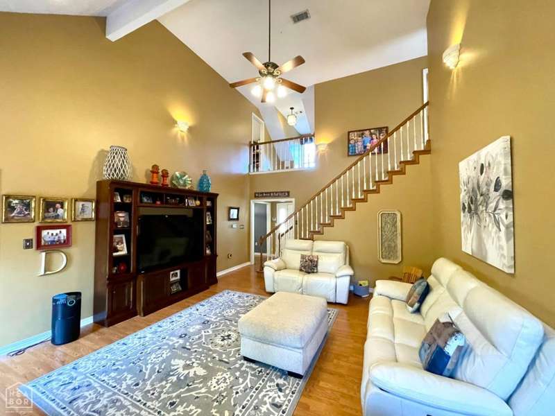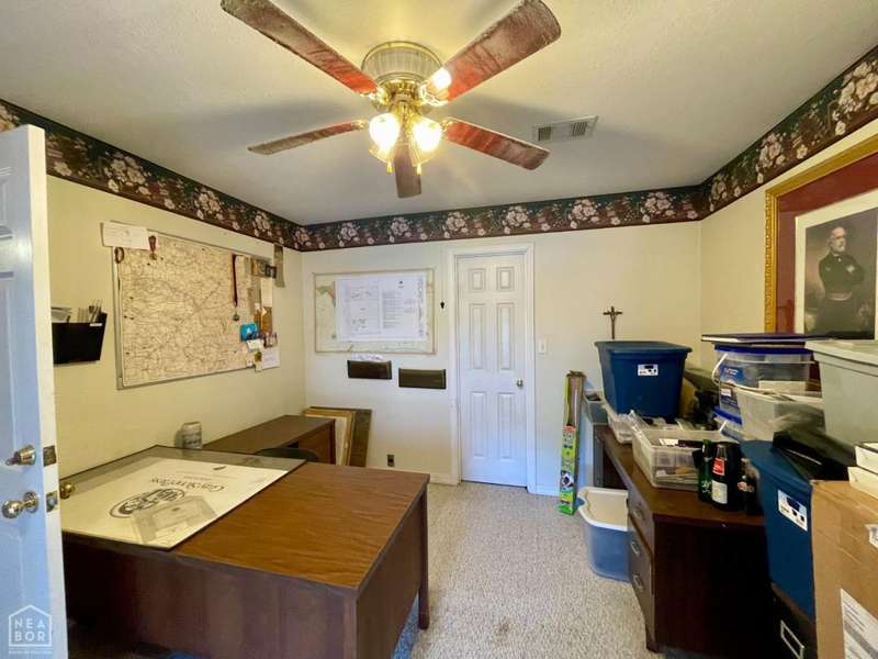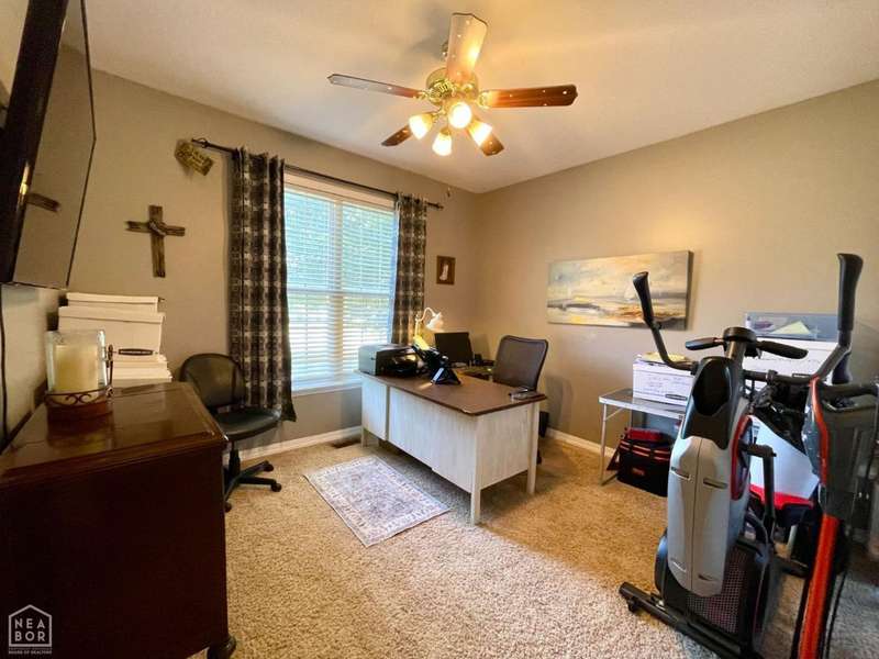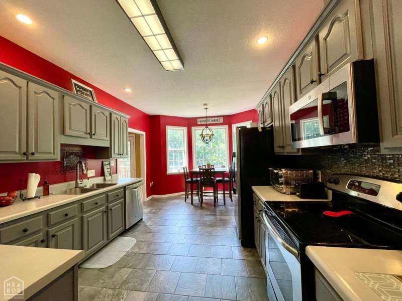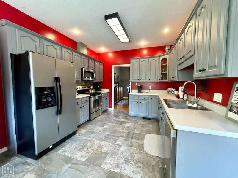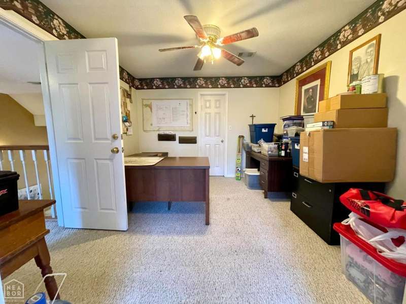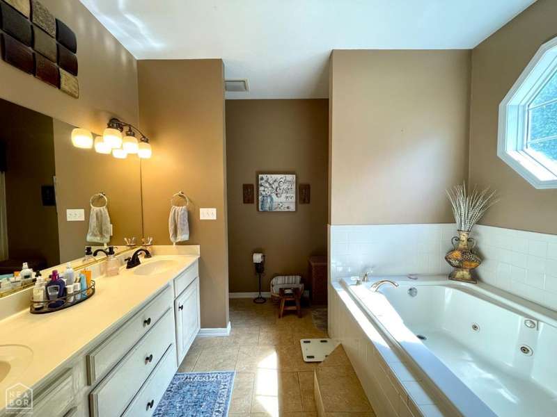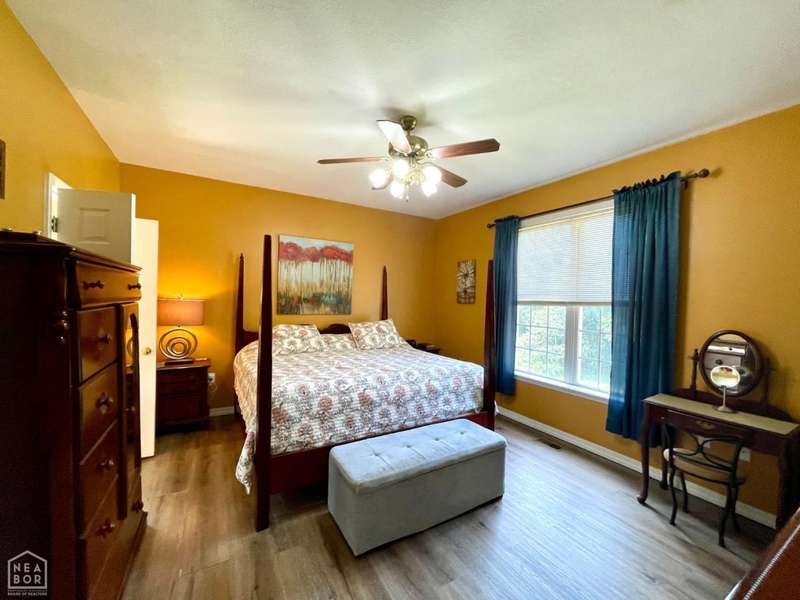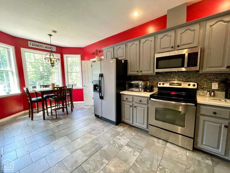 Cul-de-sac Location in Country Lake Estates! This 4 bedroom, 2 bathroom country charmer is located on .95 of an acre, and enjoys a nice level of privacy. Roof only 6 years old. New Central Heat/Air 2 months ago. New micro-hood and dishwasher this summer. A 30' cathedral ceiling, gas log fireplace and balcony make the living space so enjoyable. The Primary Suite overlooks the backyard and has a step in shower, large jet tub and extra storage in the double vanity. The bedrooms are split front to back and the 2 extra rooms on the main level share a private hallway and bathroom. The spacious 4th bedroom is upstairs along with an additional room perfect for office or play area. The landing area offers useful space for reading/games. The unfinished basement area has been used as a tornado shelter and as workshop space. Enjoy extra storage with the 10x16 lofted storage building. Imagine coming home from work to your piece of quiet living in Country Lake Estates. The subdivision has recently been repaved, and is located within Valley View School District.