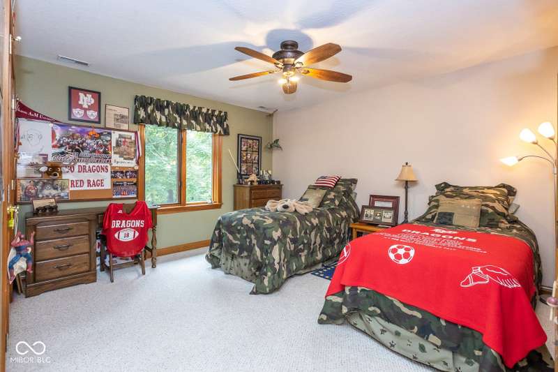 Custom-built, all-brick home offers over 4900 square feet of meticulously maintained living space on a premium wooded lot, bordered by a nature preserve both beside and in front of the home in desirable FOX COVE. The home features an impressive, two-story living room, a kitchen equipped with granite countertops, lots of cabinets a spacious breakfast area and finished basement. The main floor hosts a primary ensuite, while an additional ensuite bedroom is located upstairs. Automotive enthusiasts will appreciate the 3-car attached garage as well as the 2-car detached brick garage. The backyard would be your own personal park. So much to see; this property is a must see!