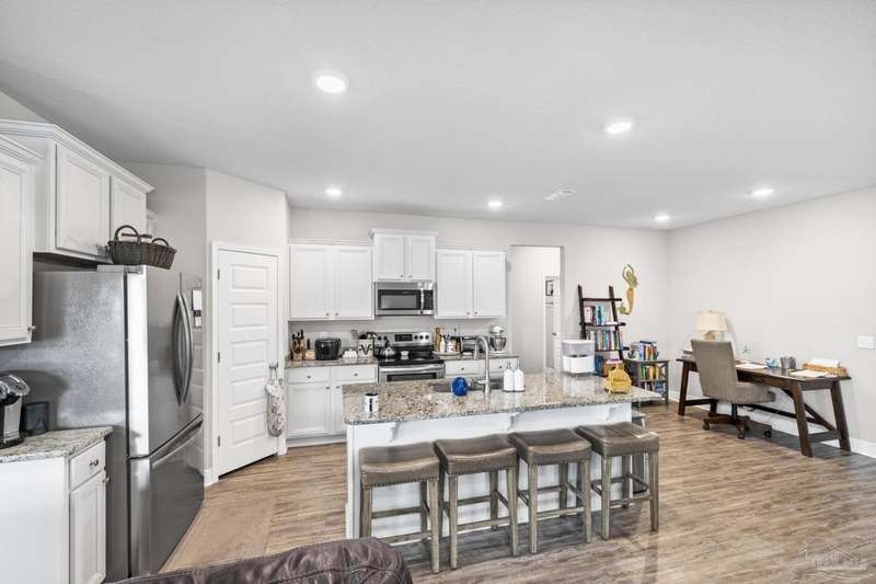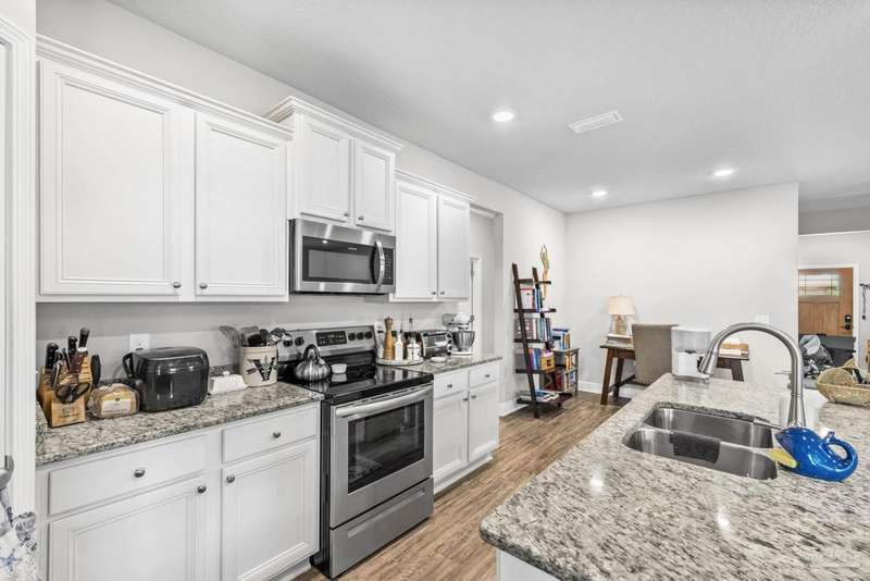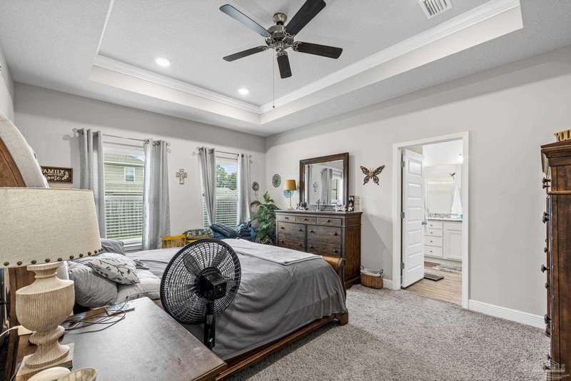 ASSUMABLE VA LOAN LOW INTEREST RATE! SELLER SAYS MAKE AN OFFER! Located on a spacious corner lot in the heart of Pace, this delightful 4-bedroom, 2-bathroom home offers comfortable living and a fantastic location. Boasting excellent curb appeal, this property welcomes you with a well-maintained exterior and mature landscaping. Step inside to discover a thoughtfully designed floor plan that provides ample space for relaxation and entertaining. The bright and airy living areas flow seamlessly, creating an inviting atmosphere. The well-appointed kitchen features stainless steel appliances, granite countertops, a large pantry and provides access to a the dining area and breakfast nook - which is currently being used as an office. The generously sized main suite offers a private retreat, complete with a boxed ceiling, large closet, dual vanities, a soaking tub and separate shower. Three additional bedrooms provide comfortable accommodations for family and guests, or can be utilized as a home office or hobby room. There are closets GALORE! One of the standout features of this property is its corner lot, offering a larger backyard than most and is perfect for outdoor activities, gardening, or creating your dream oasis. There is a covered patio, a privacy fence, double gate and even room for a pool. Conveniently located in a sought-after Pace neighborhood, this home offers easy access to top-rated schools, shopping, dining, parks, Military Bases and local amenities. Enjoy the tranquility of suburban living with the convenience of being just a short drive from Pensacola and the beautiful beaches of Northwest Florida. Don't miss the opportunity to make this wonderful corner lot home your own! Schedule your showing today.