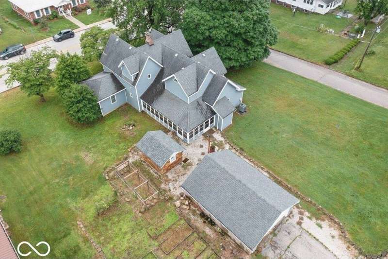 This early 1900's home offers a blend of Victorian and farmhouse charm with it's unique rooflines, covered porch, hardwood floors and wood trimwork, and lots of cozy nooks throughout. The floorplan offers 4 bedrooms and 4 full bathrooms. On the main level you'll find a large kitchen with walk in pantry alongside. There is a breakfast nook and an adjacent space that could be used as a formal dining room or siting area. The living room offers a fireplace mantel surround, and an adjacent cozy space perfect for an office, keeping plants over winter and more. There are 2 bedrooms on the main level alongside a full bath. Main level laundry. Upstairs you'll find a generous primary bedroom with tons of storage and closet space and a full bath. The other bedroom offers a full bath alongside. The home has a main level sun porch with access to the partial basement for more storage, and easy access to the hvac, recently replaced, tankless hot water heater. Upstairs the owners put in mini split systems to keep the house properly heated and cooled throughout. The lot size is 1.54 acres and features multiple garage space, plenty of parking. A must see for those seeking a spacious floorplan with lots of storage. High speed internet available.