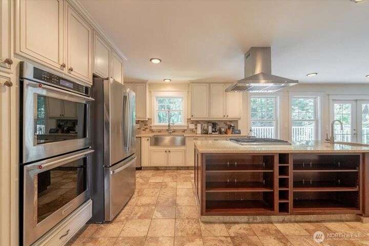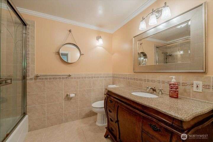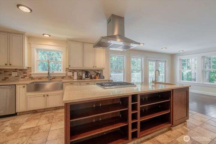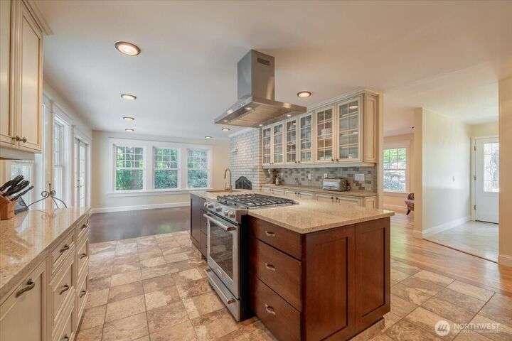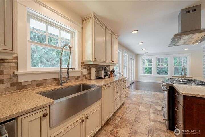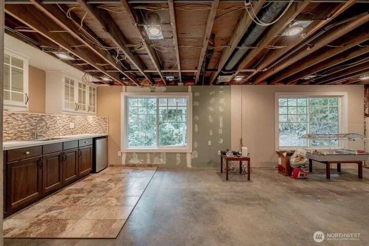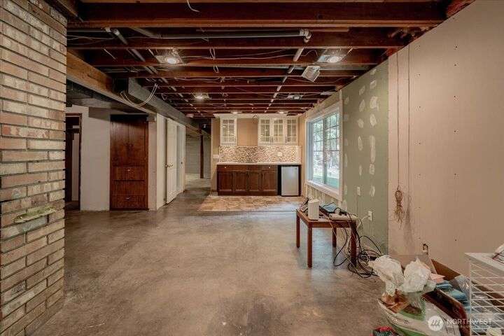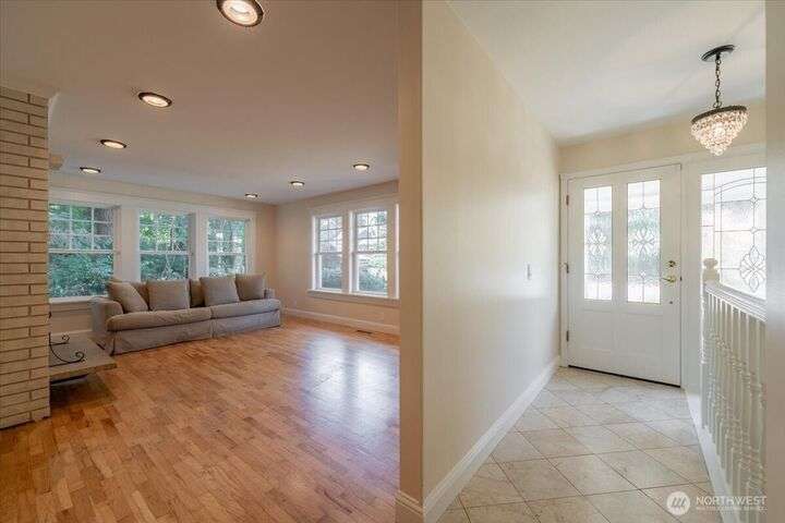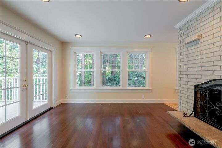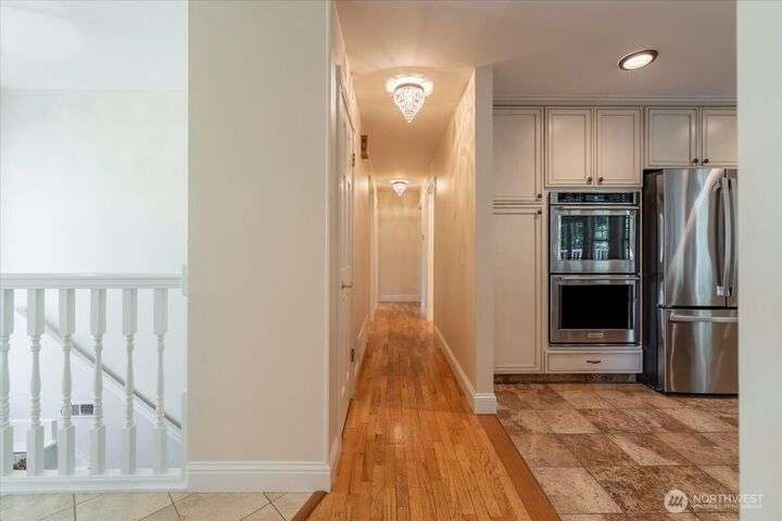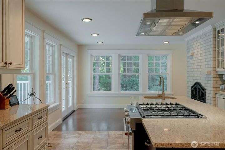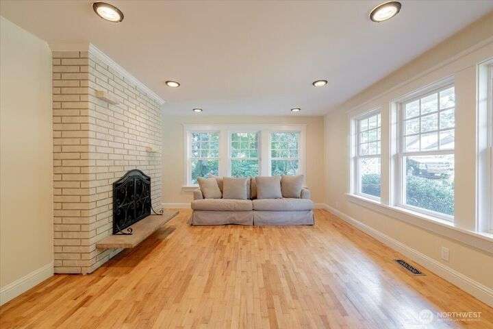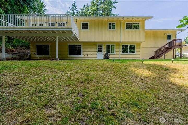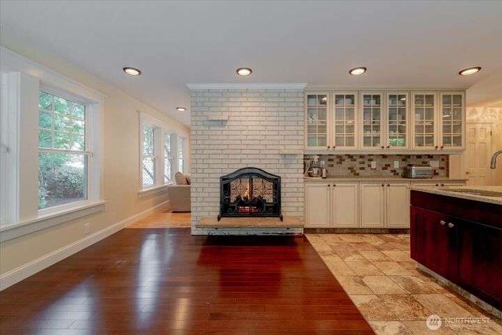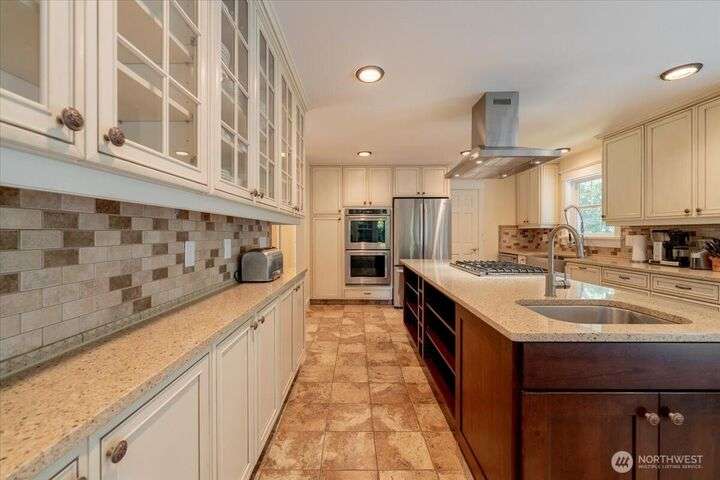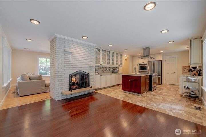 Welcome to this charming 3-bedroom, 3-bath daylight rambler nestled in the highly sought-after Moorland Heights neighborhood. This inviting home features a spacious 2-car garage and a beautifully updated gourmet kitchen equipped with high-end appliances perfect for culinary enthusiasts. The main floor boasts an updated full bath, newer Milgard Dbl hung windows, fresh interior paint, and a cozy double-sided gas fireplace that adds warmth and ambiance. Step out onto the expansive deck overlooking a serene, private wooded greenbelt ideal for relaxing or entertaining. The unfinished basement offers a kitchenette, utility room, and plenty of potential to customize and create additional living space to suit your needs.